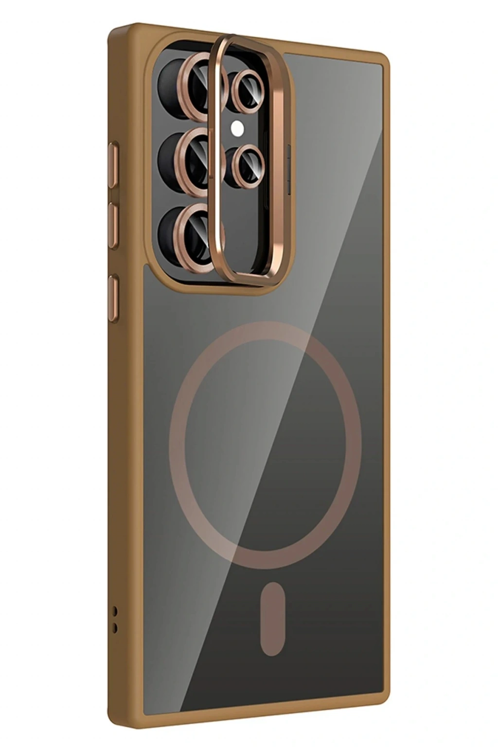 CPT05 Samsung Galaxy S24 Ultra Remim Lensli Magsafe Standlı Kapak - Kahverengi
