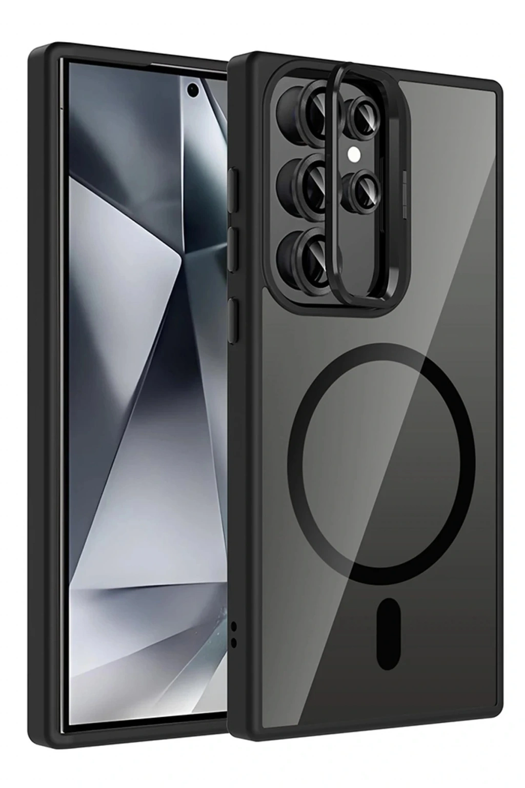 CPT05 Samsung Galaxy S24 Ultra Remim Lensli Magsafe Standlı Kapak - Siyah
