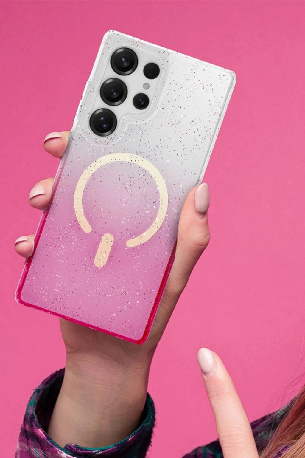 Modern ve göz alıcı renkli benekli tasarımıyla fark yaratır; sadece koruma değil aynı zamanda tarz sunar.