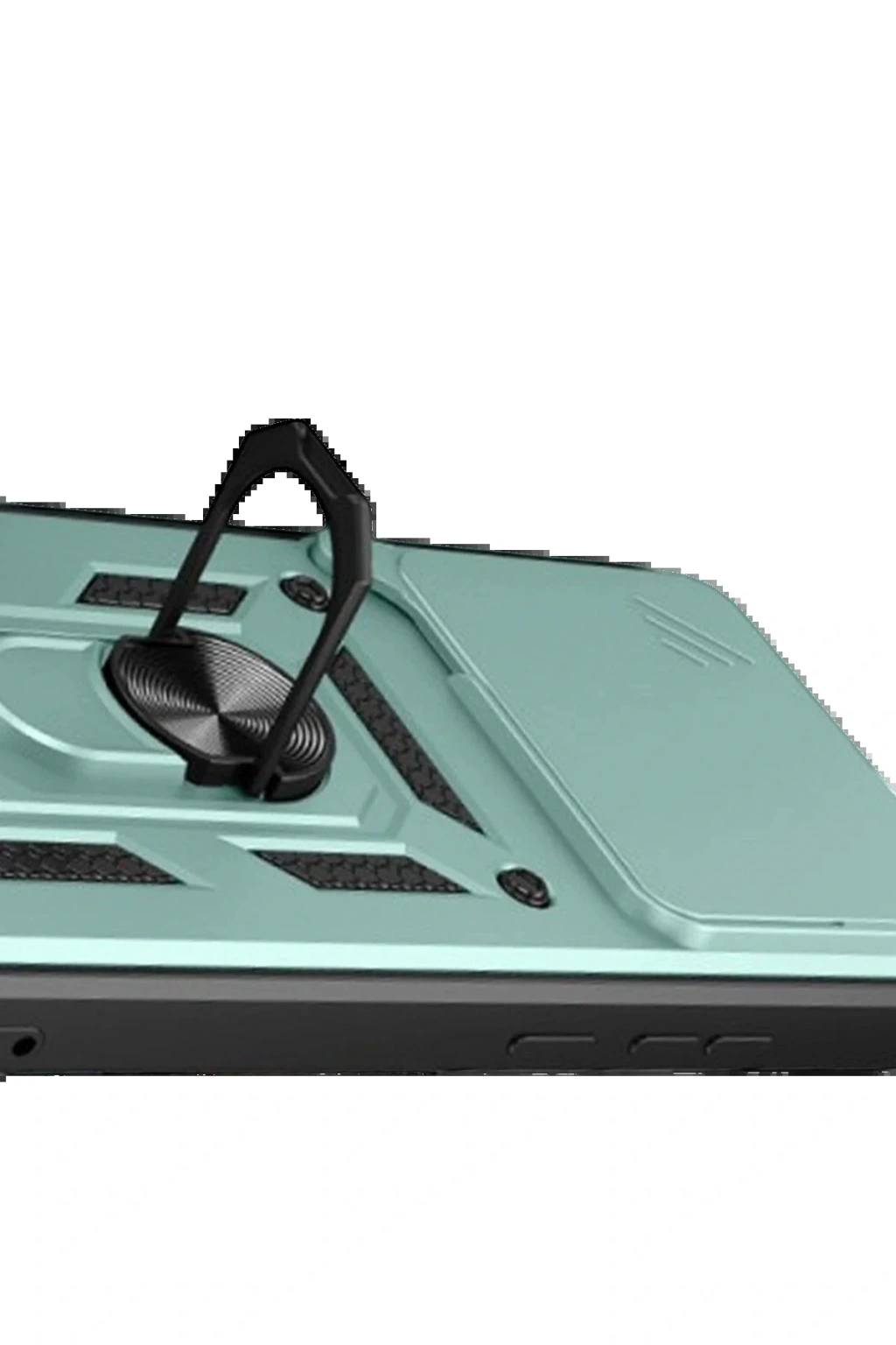 Kılıfın arka kısmında yer alan entegre metal halka hem tutucu hem de stand olarak işlev görür. Eller serbest video izleme, içerik görüntüleme ya da masaüstü kullanımı için idealdir.