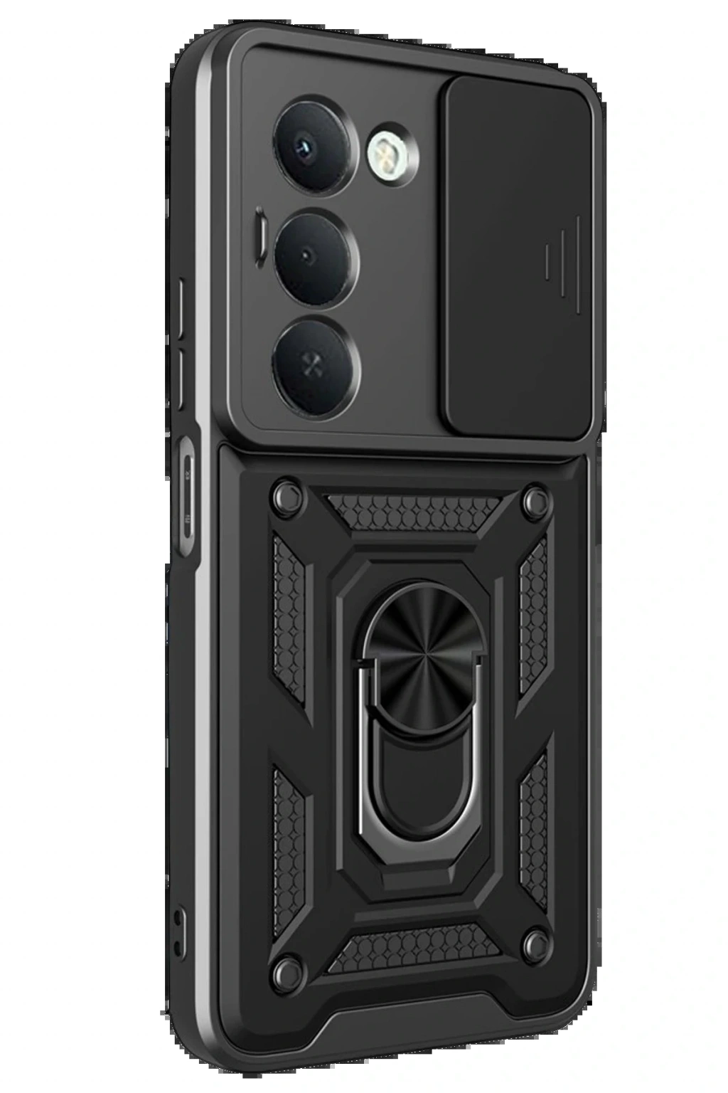 Kılıfın arka kısmında yer alan entegre metal halka hem tutucu hem de stand olarak işlev görür. Eller serbest video izleme, içerik görüntüleme ya da masaüstü kullanımı için idealdir.