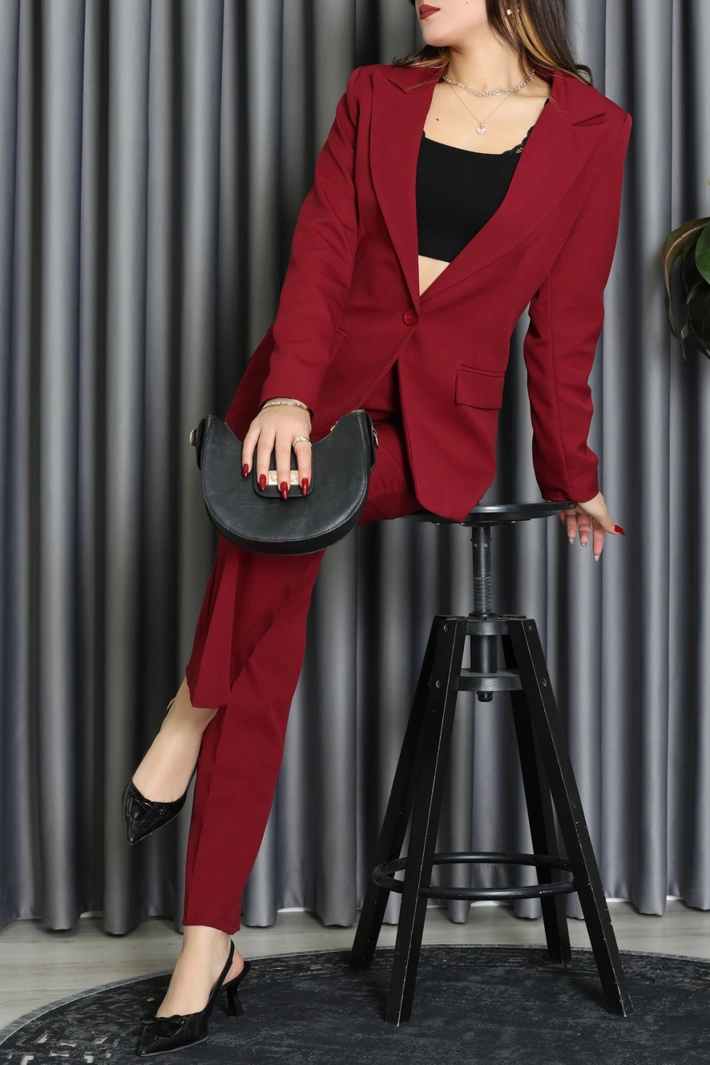 Dabıl Kumaş Astarlı İkili Blazer Takım Bordo - 55041.1397.