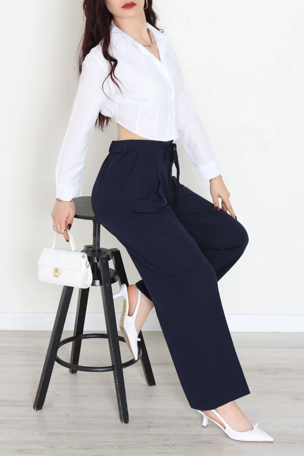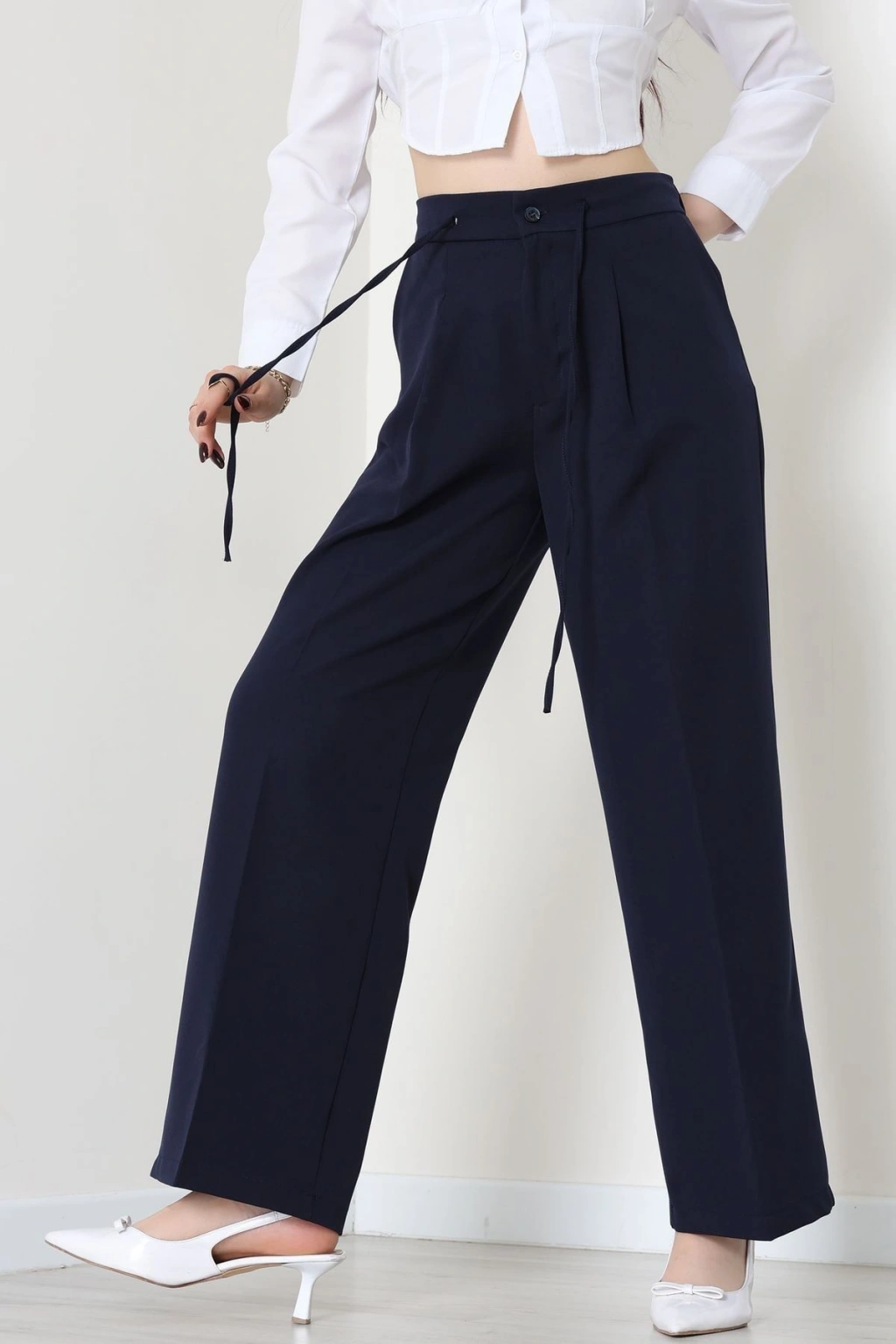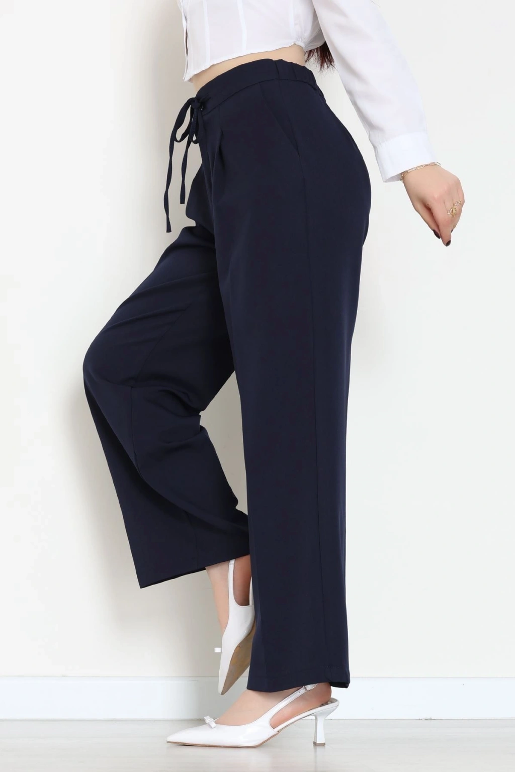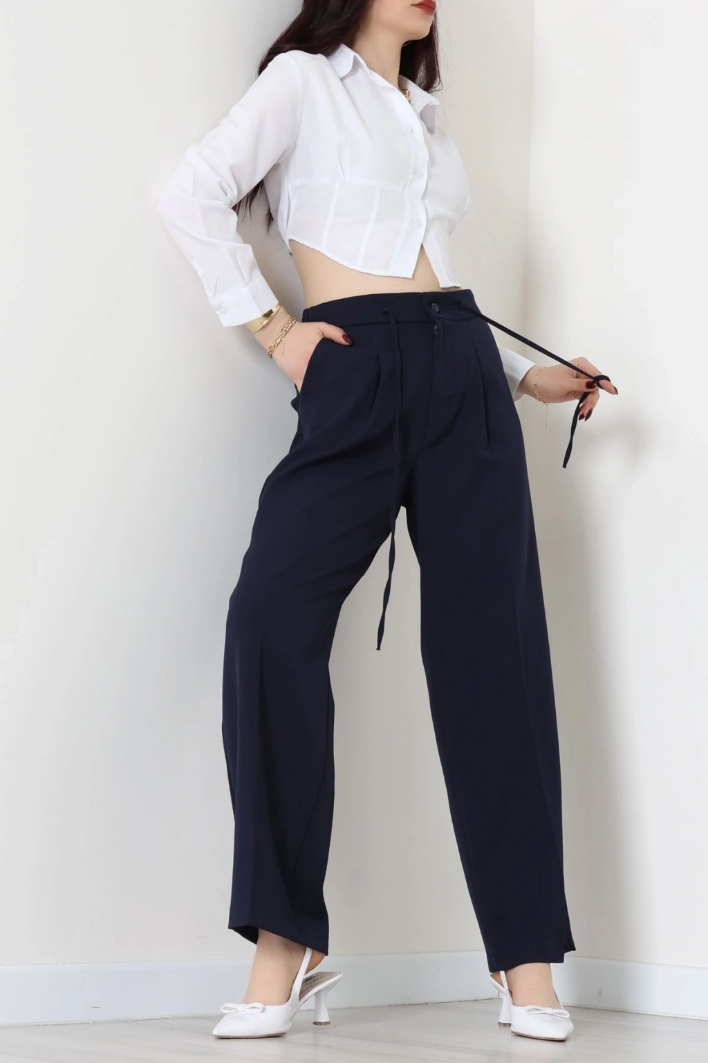Dabıl Kumaş Beli Bağcıklı Pantolon Lacivert - 51615.683.