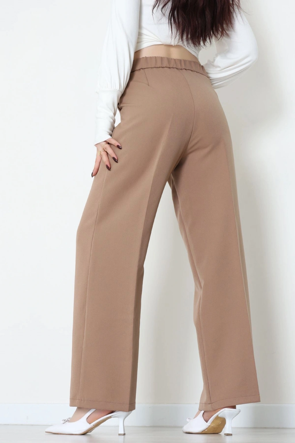 Zra Krep Lastikli Çımalı Pantolon Acıkahve - 51251.1837.