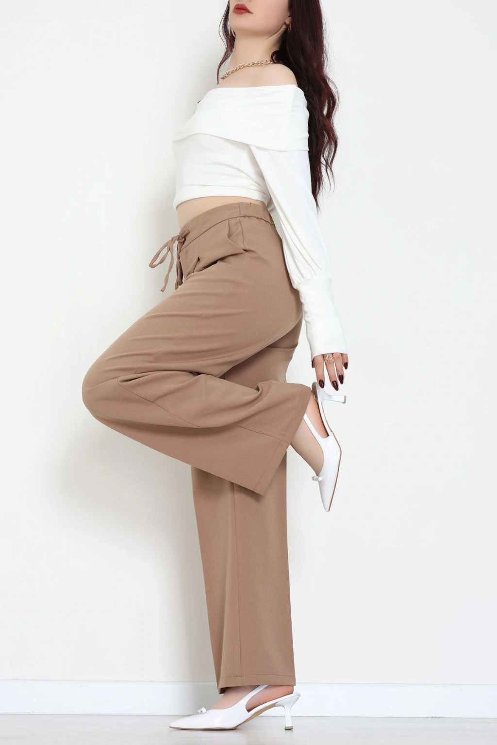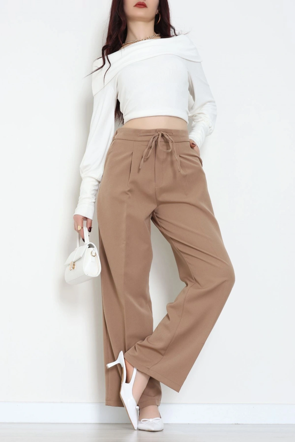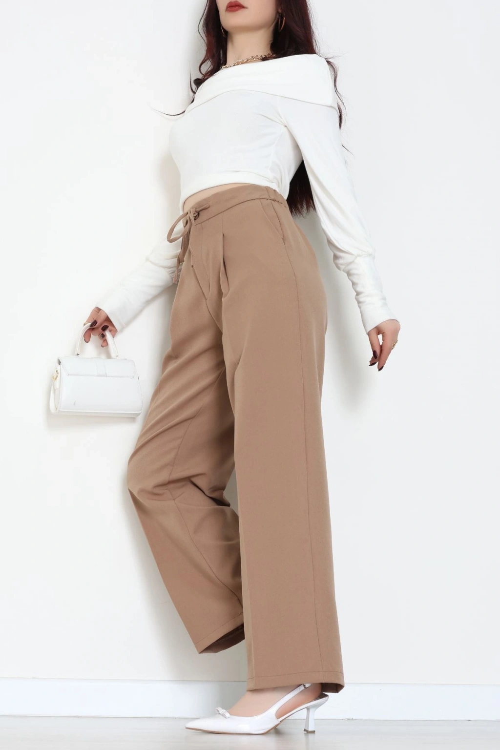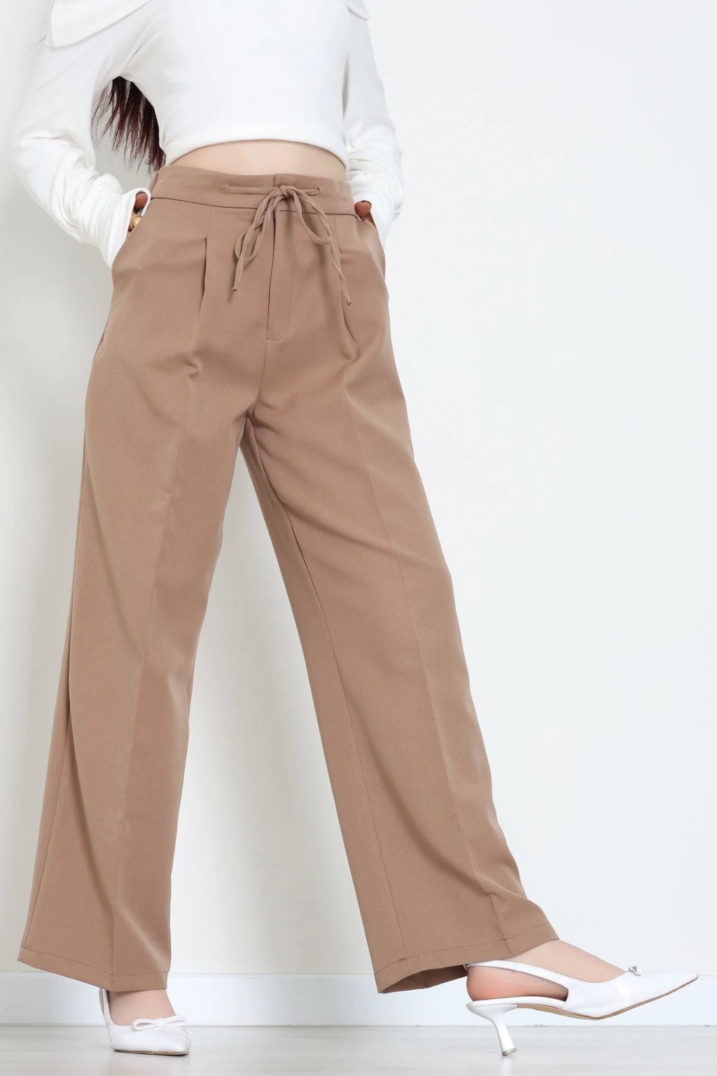Dabıl Kumaş Beli Bağcıklı Pantolon Latte - 51615.683.