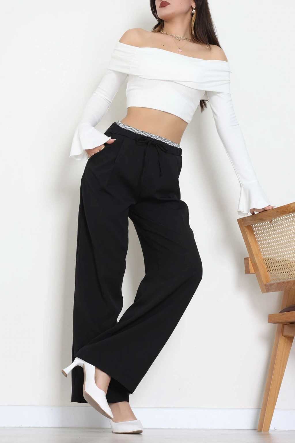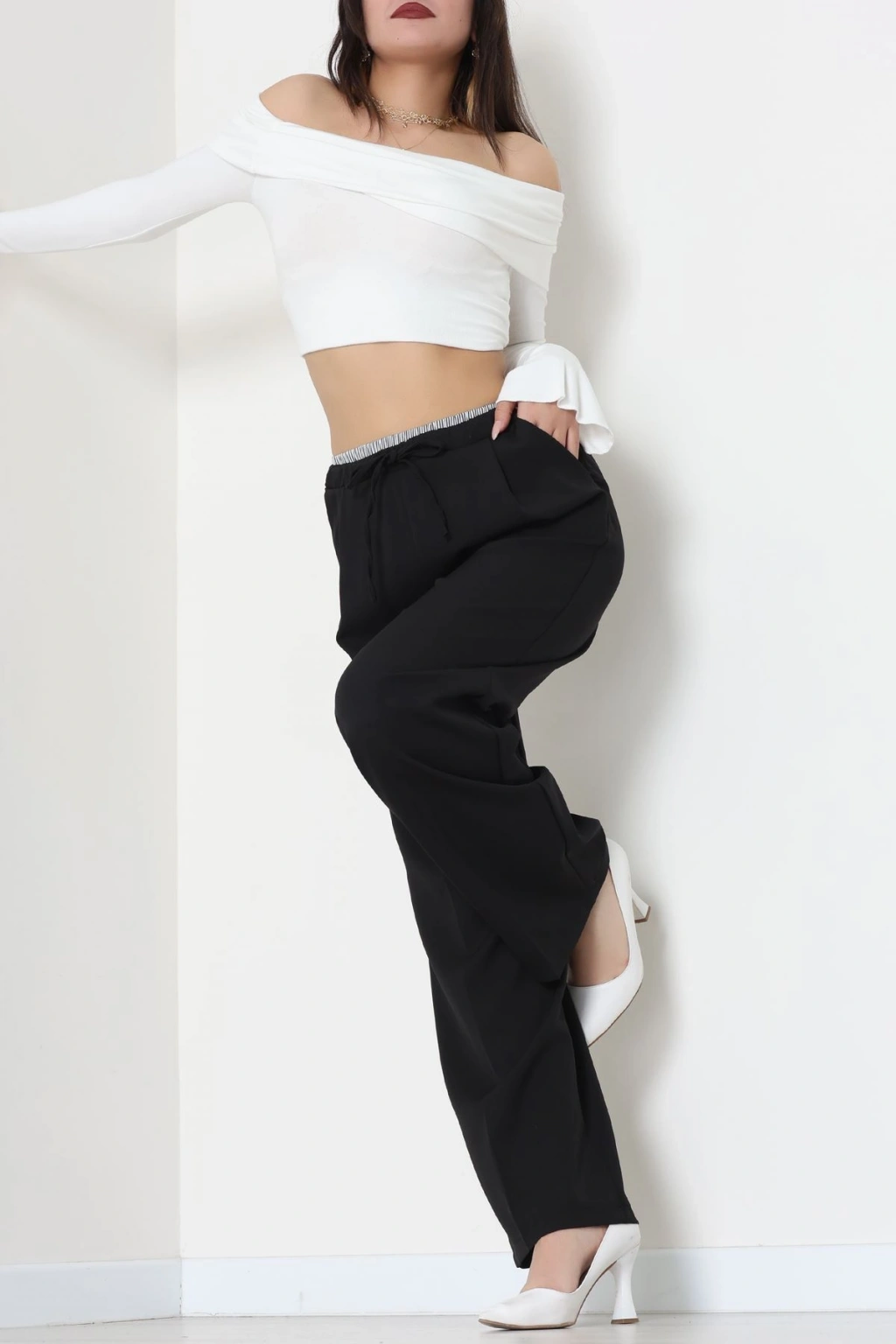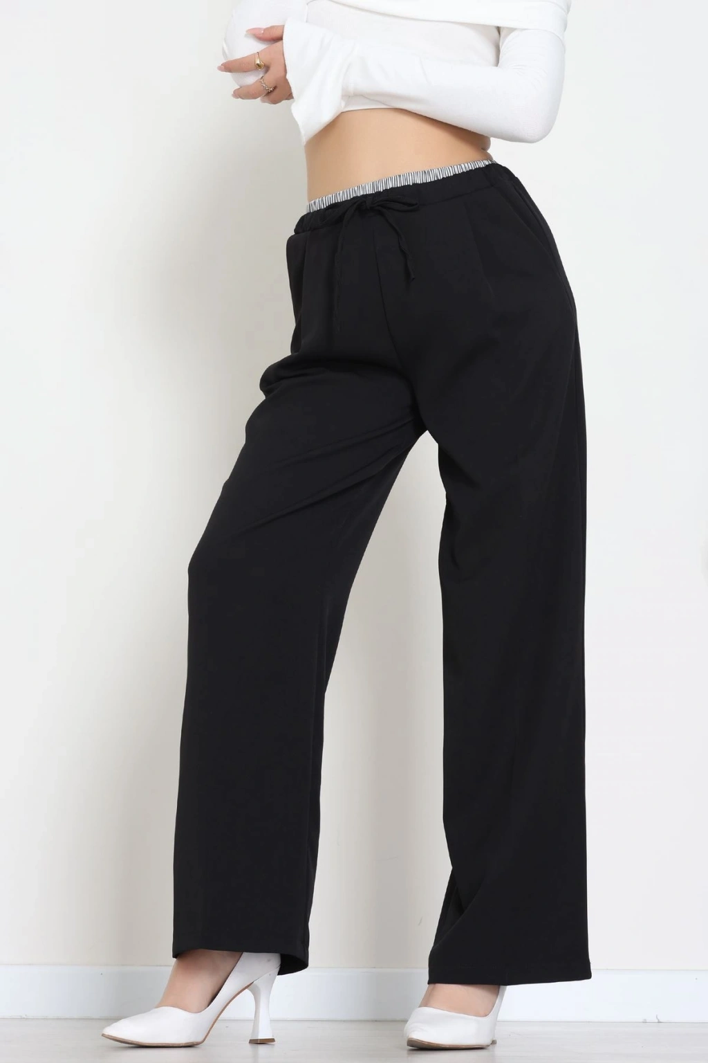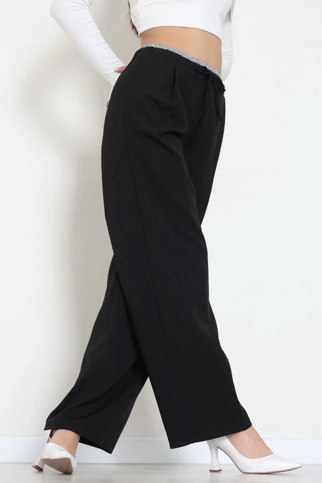 Dabıl Kumaş Beli Bağcıklı Pantolon Siyah - 51615.683.