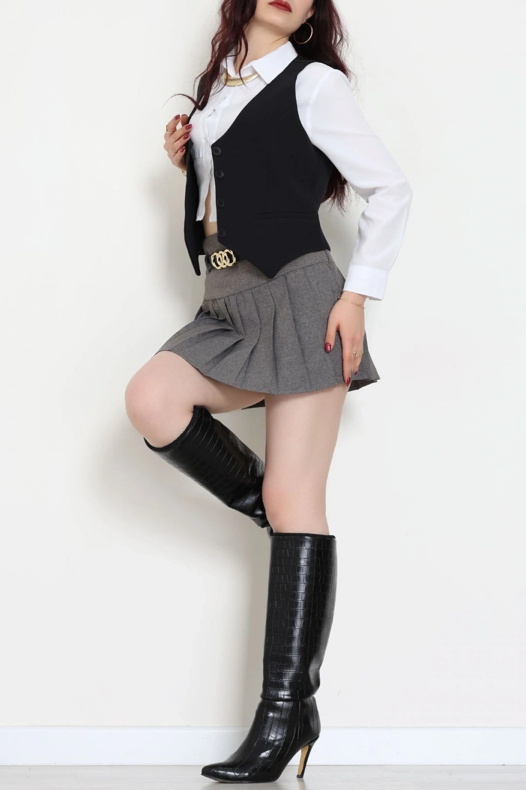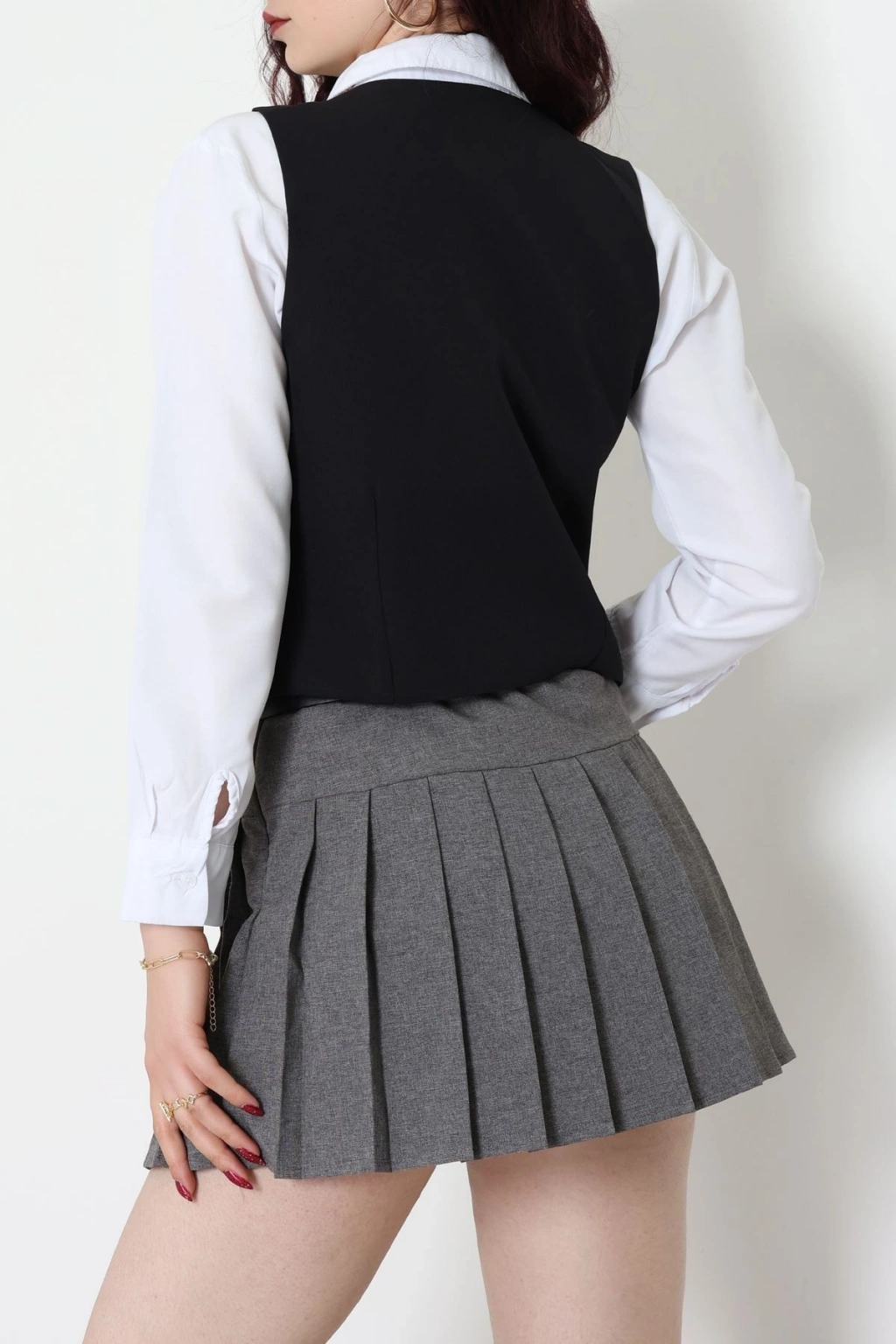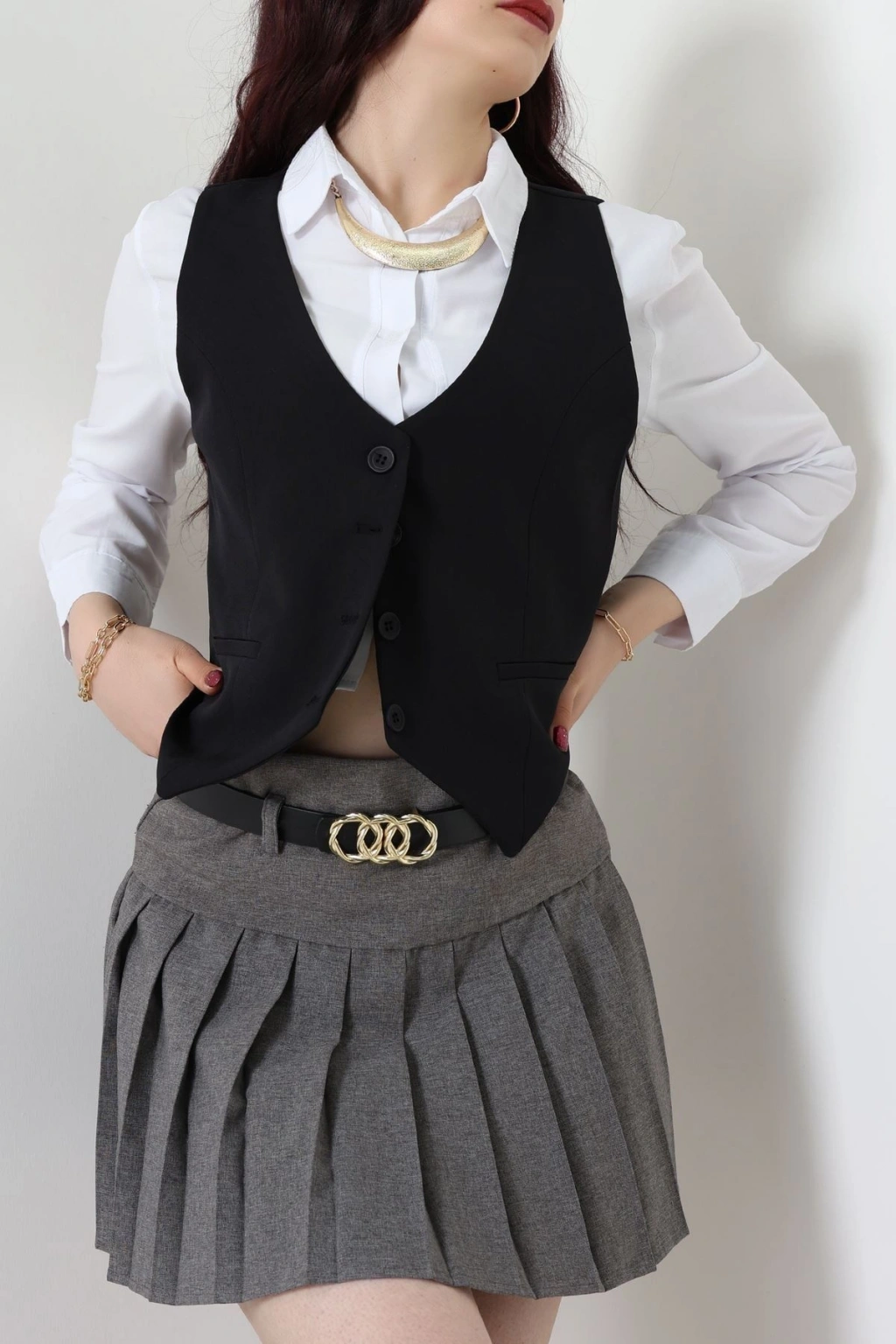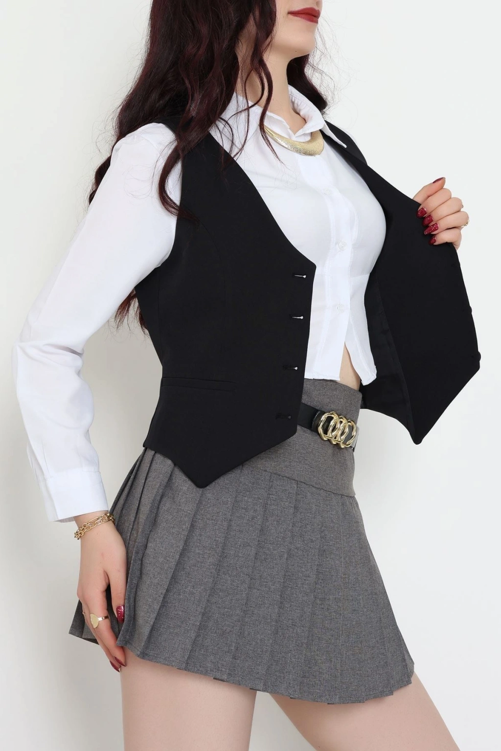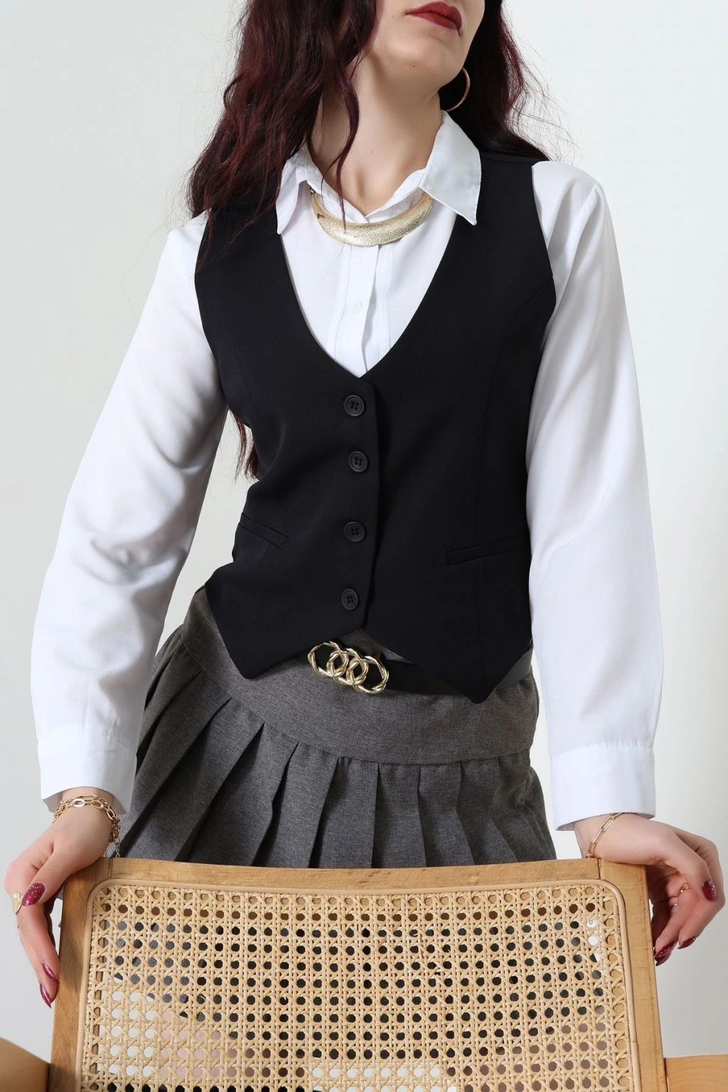 Dabıl Kumaş Düğmeli Fleto Cepli Yelek Siyah - 51230.1991.