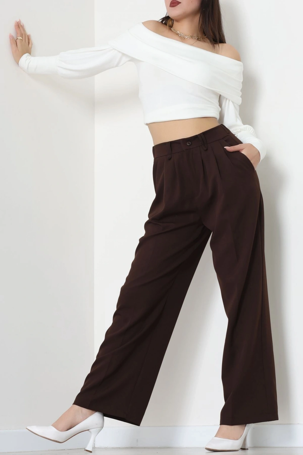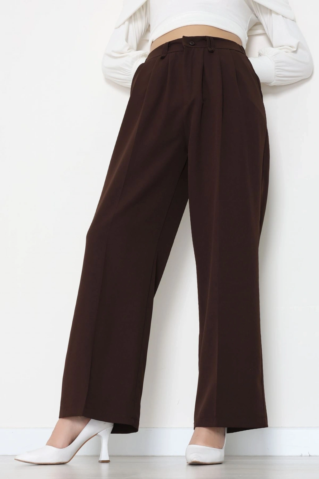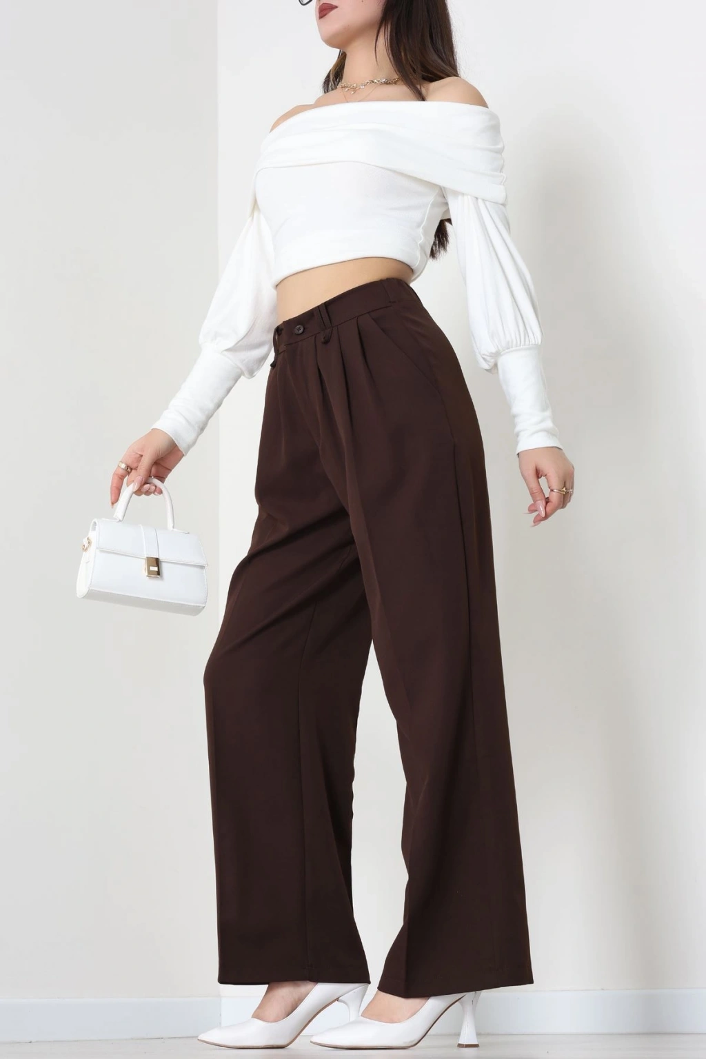 Dabıl Kumaş Beli Bağcıklı Pantolon Kahve - 51615.683.