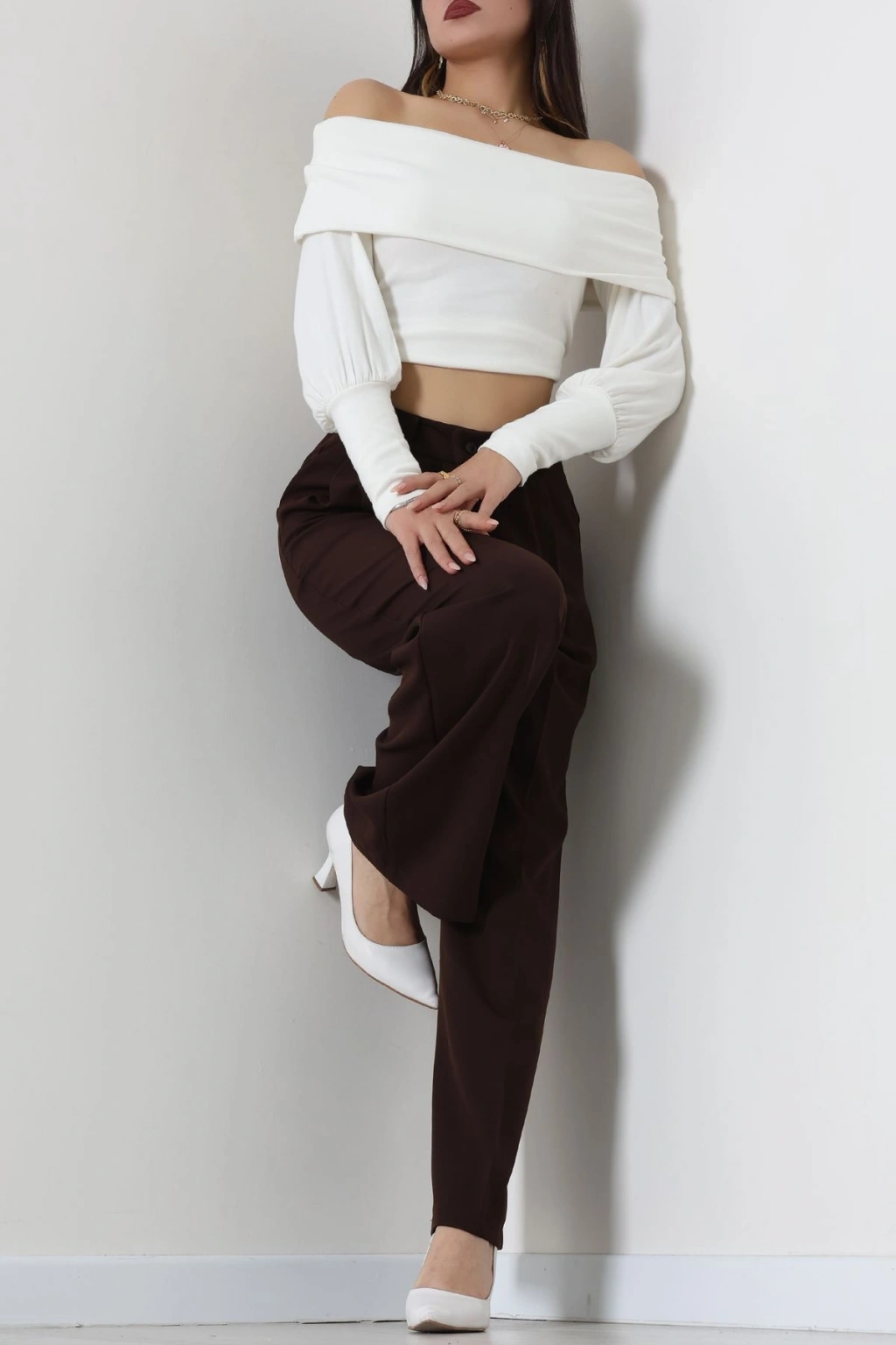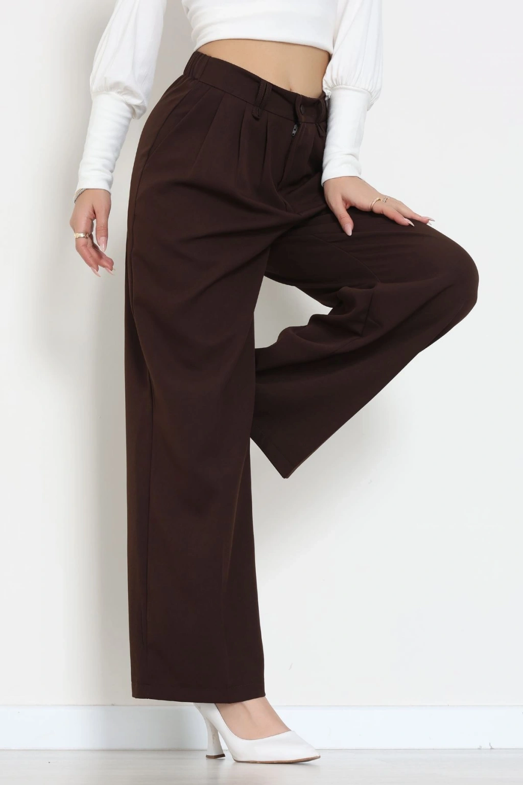 Zra Krep Lastikli Çımalı Pantolon Acıkahve - 51251.1837.