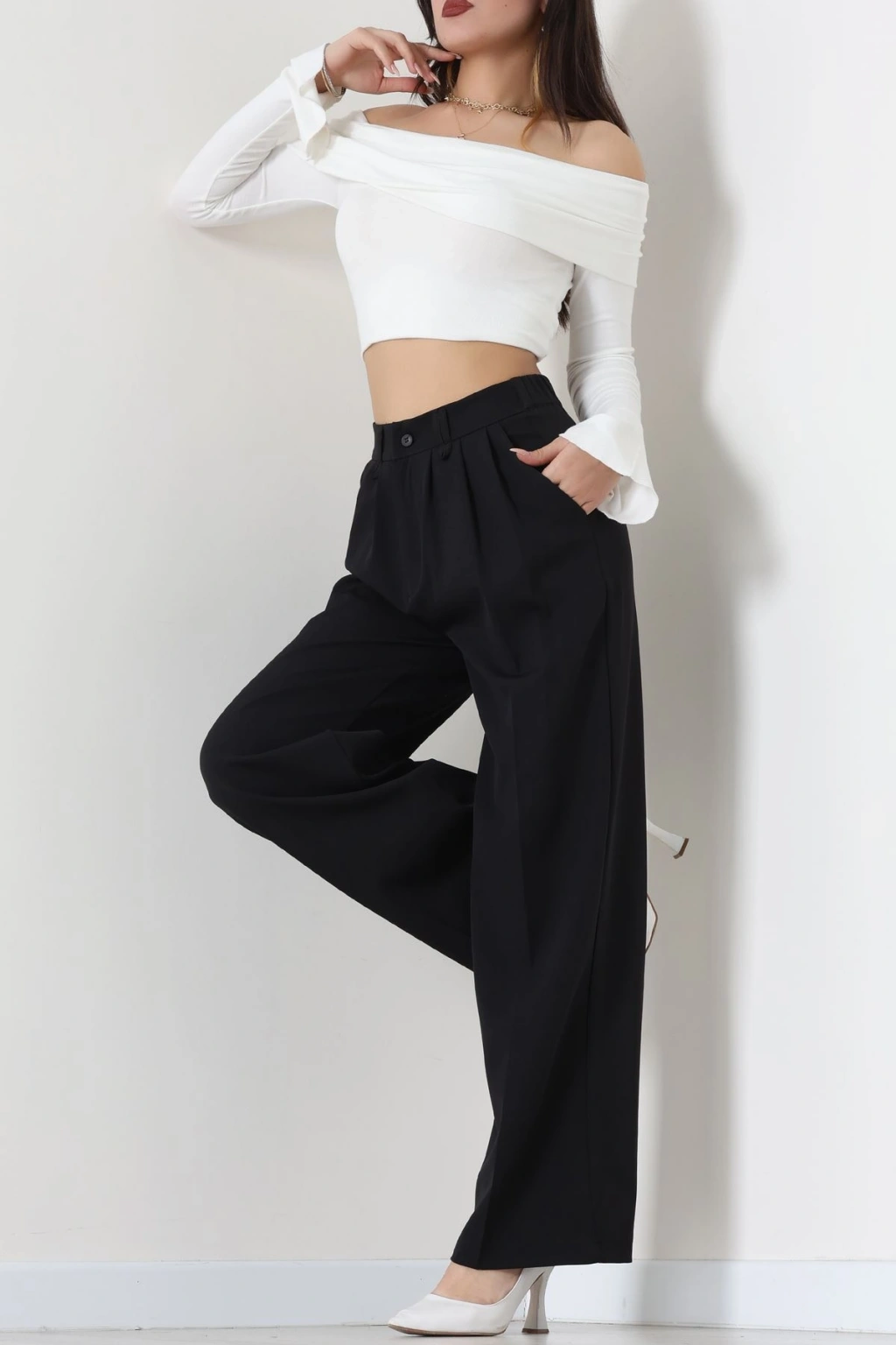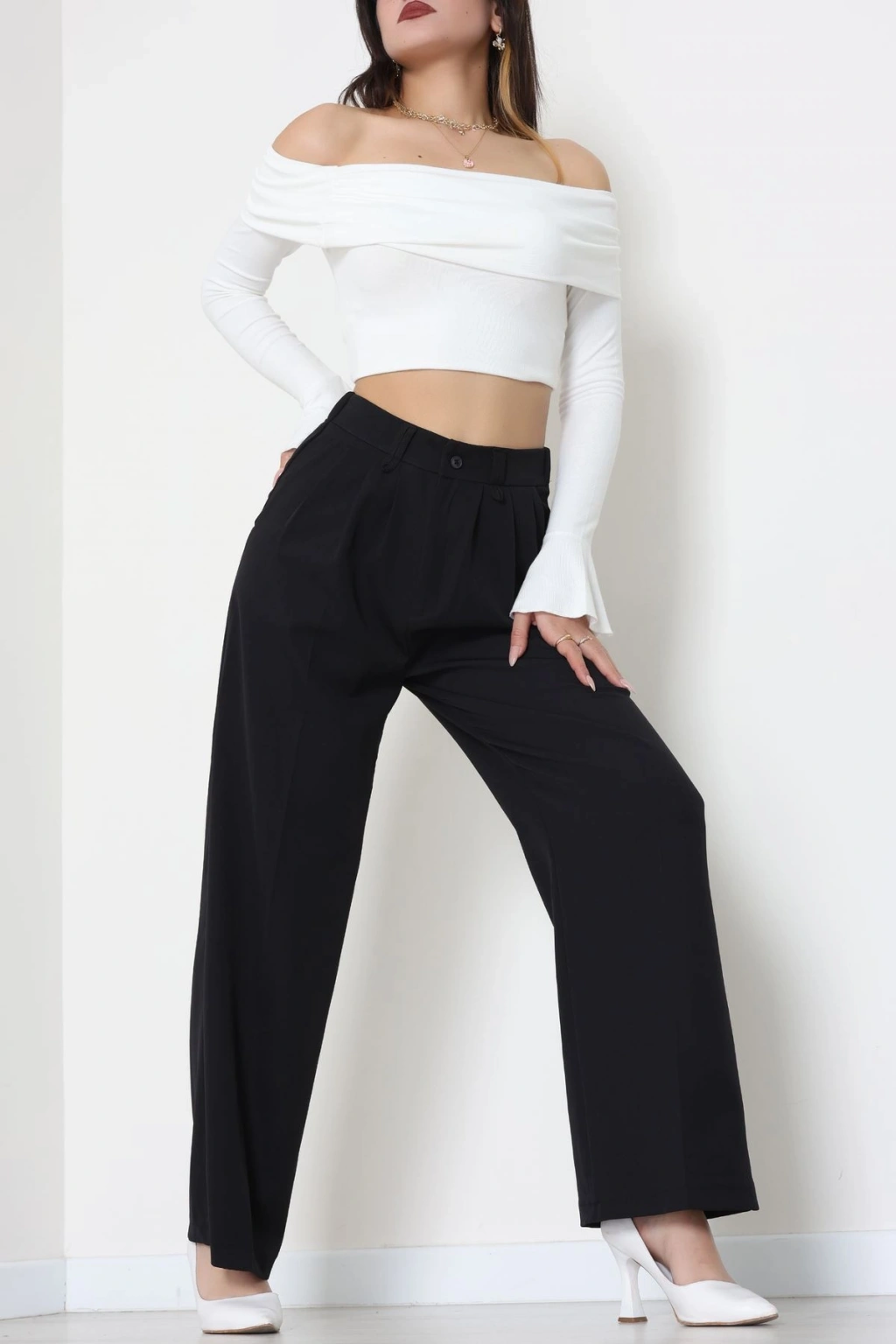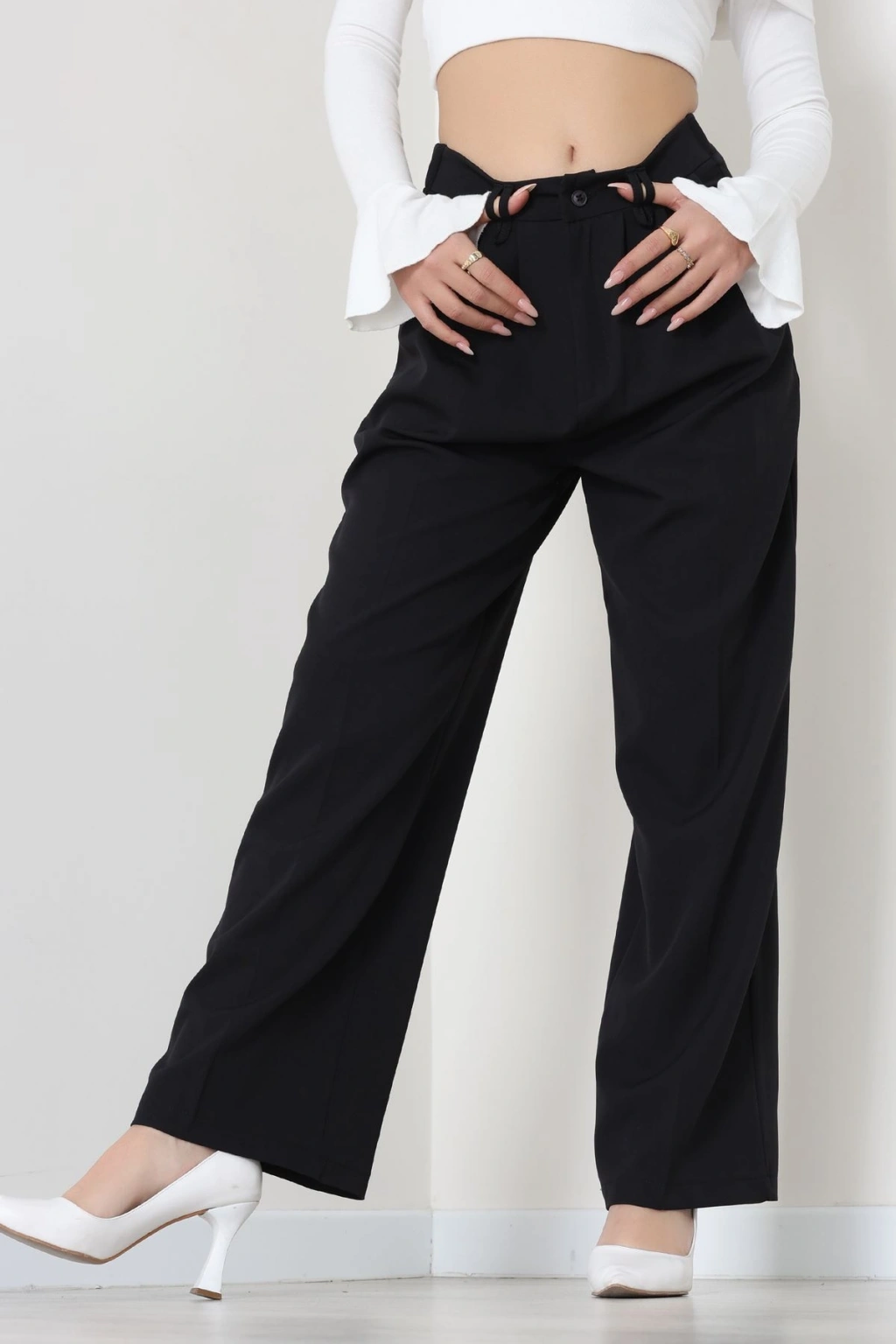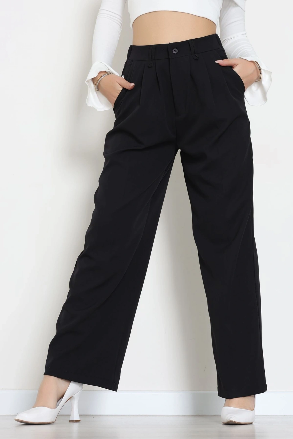 Beli Garnili Poliviskon Palazzo Pantolon Siyah - 51235.1920.