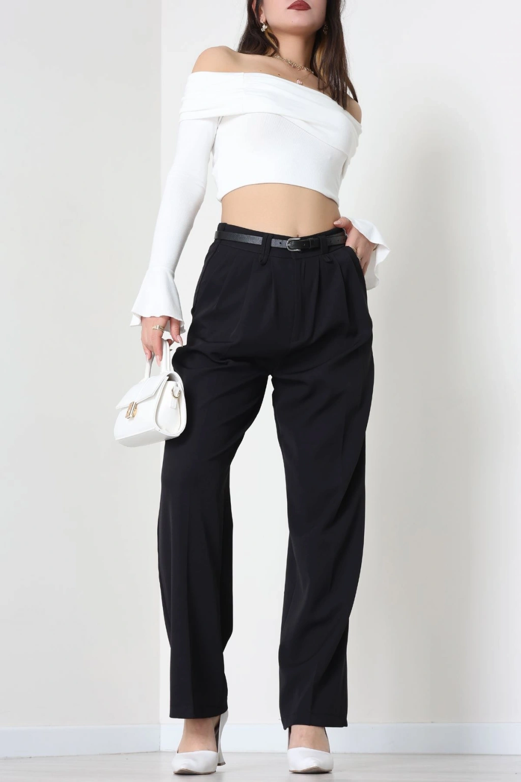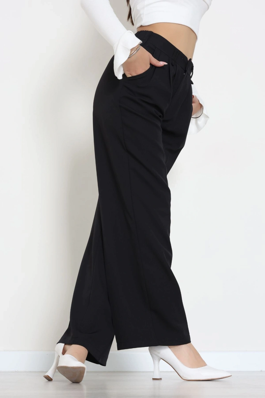 Dabıl Kumaş Beli Bağcıklı Pantolon Siyah - 51615.683.