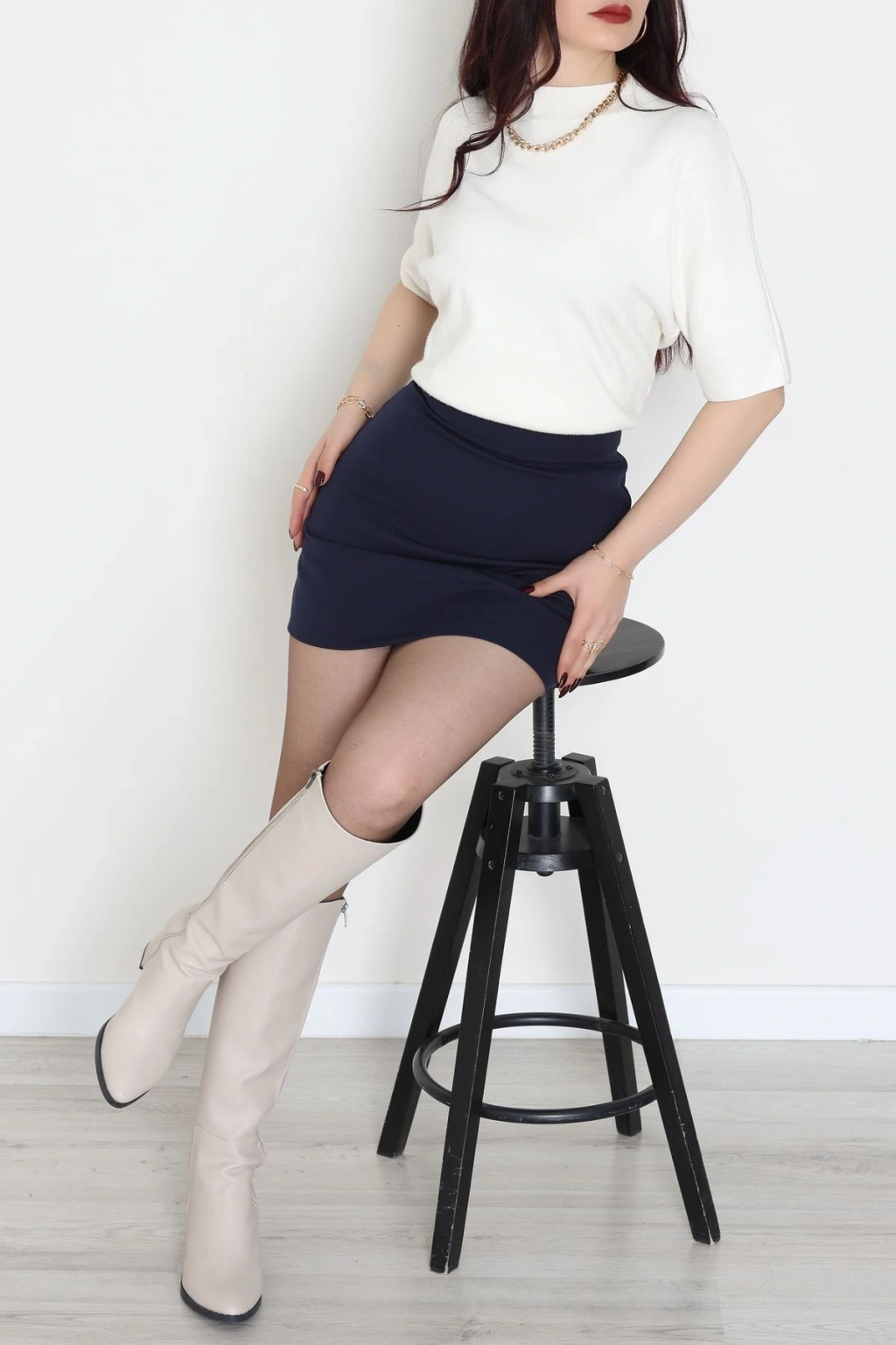 Dabıl Kumaş Mini Etek Lacivert - 51259.1991.