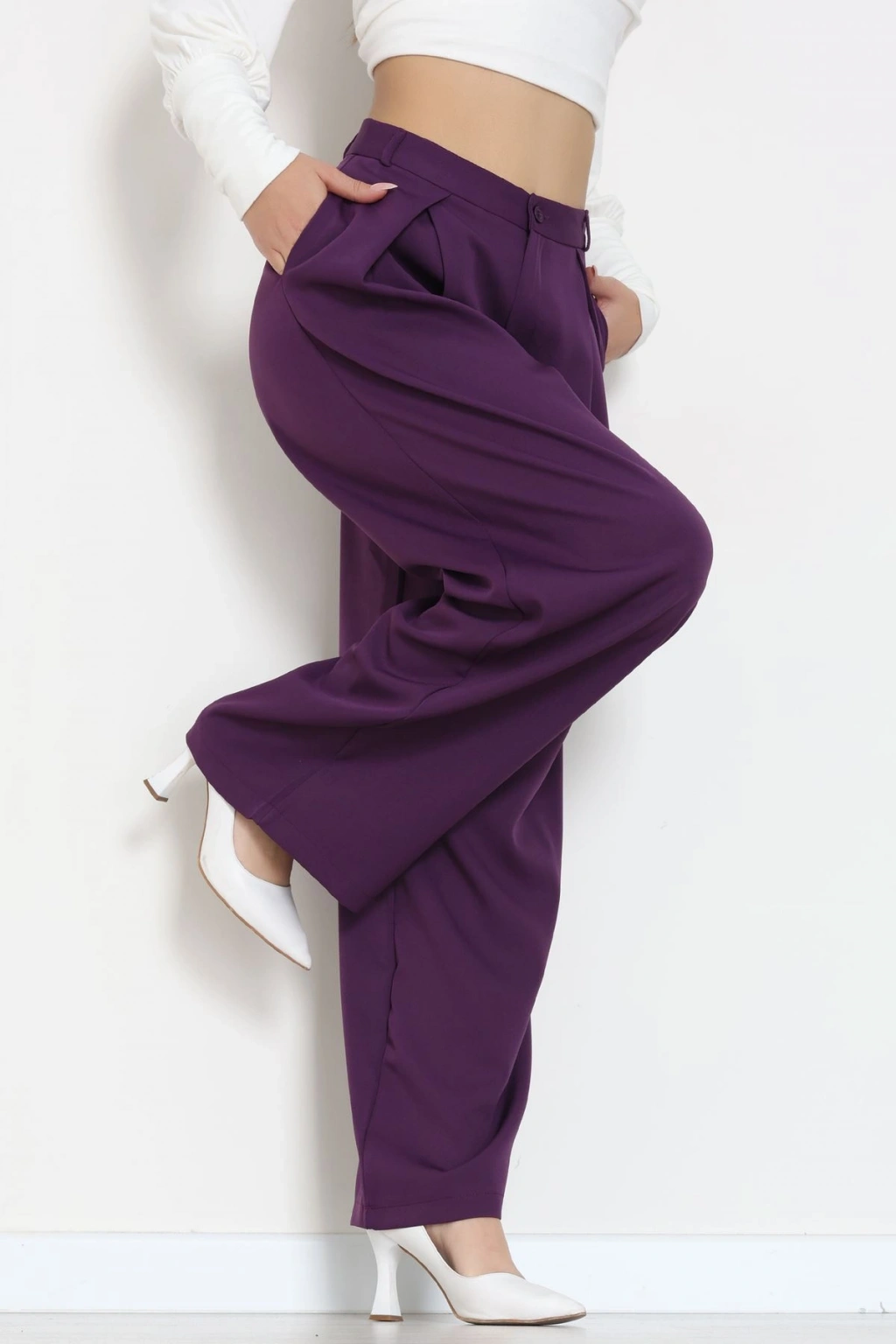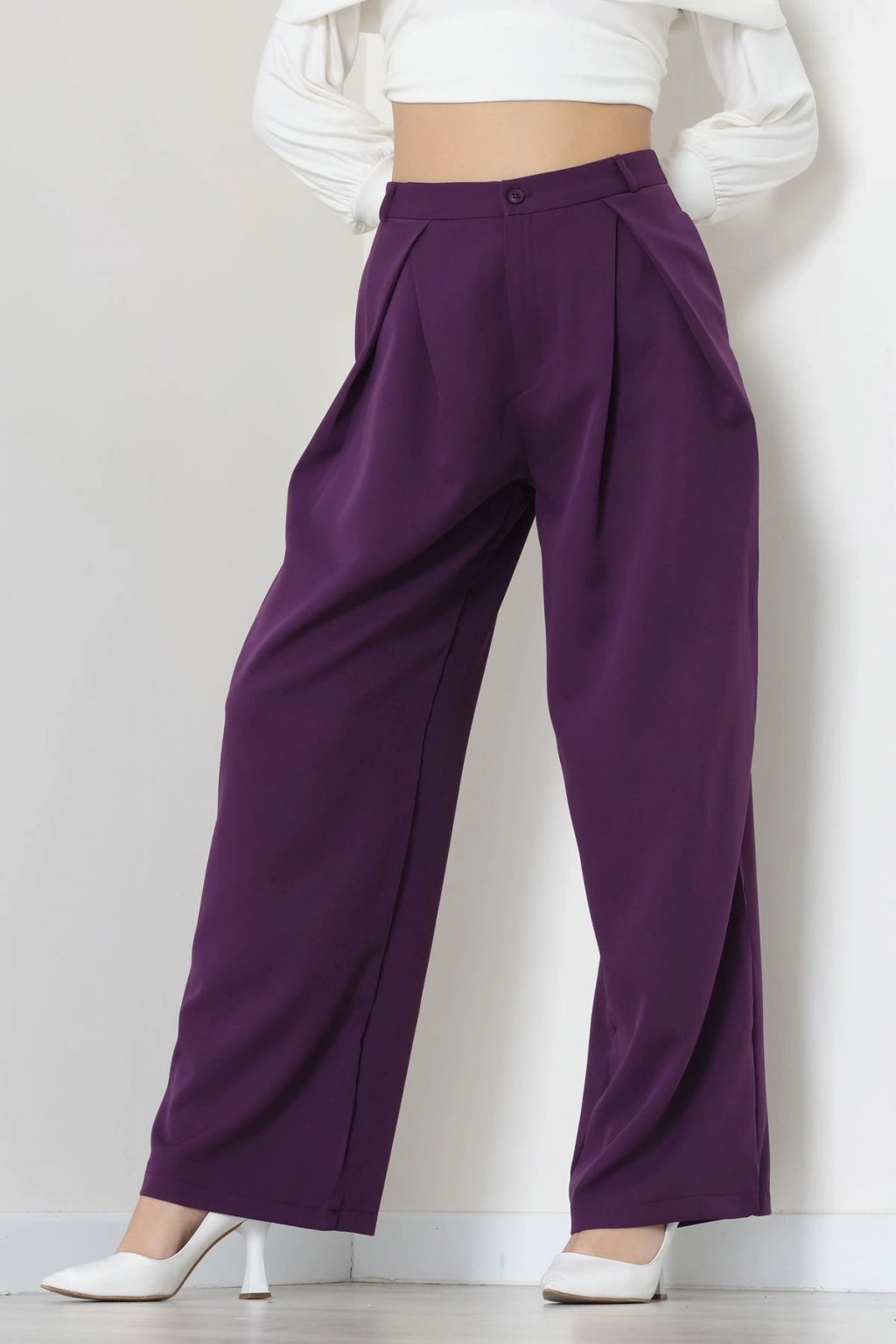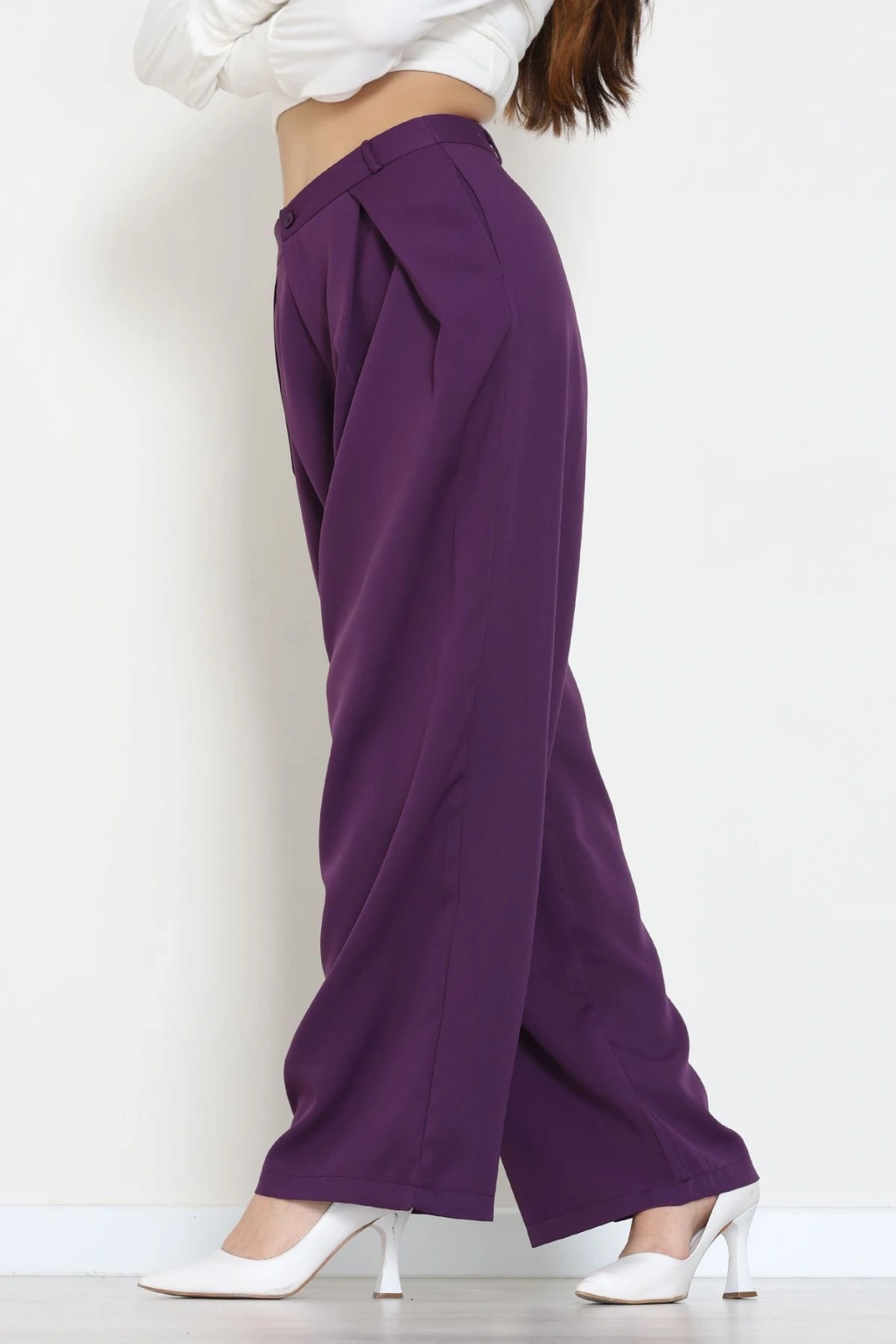 Dabıl Kumaş Pile Detaylı Pantolon Mor - 51610.683.
