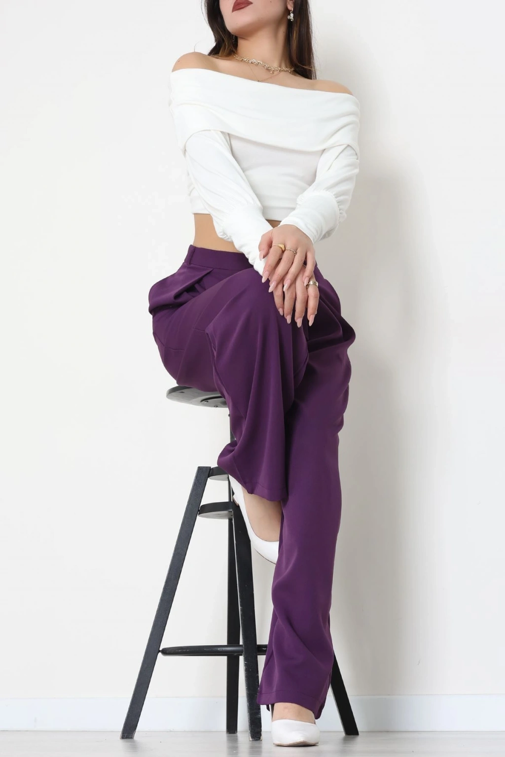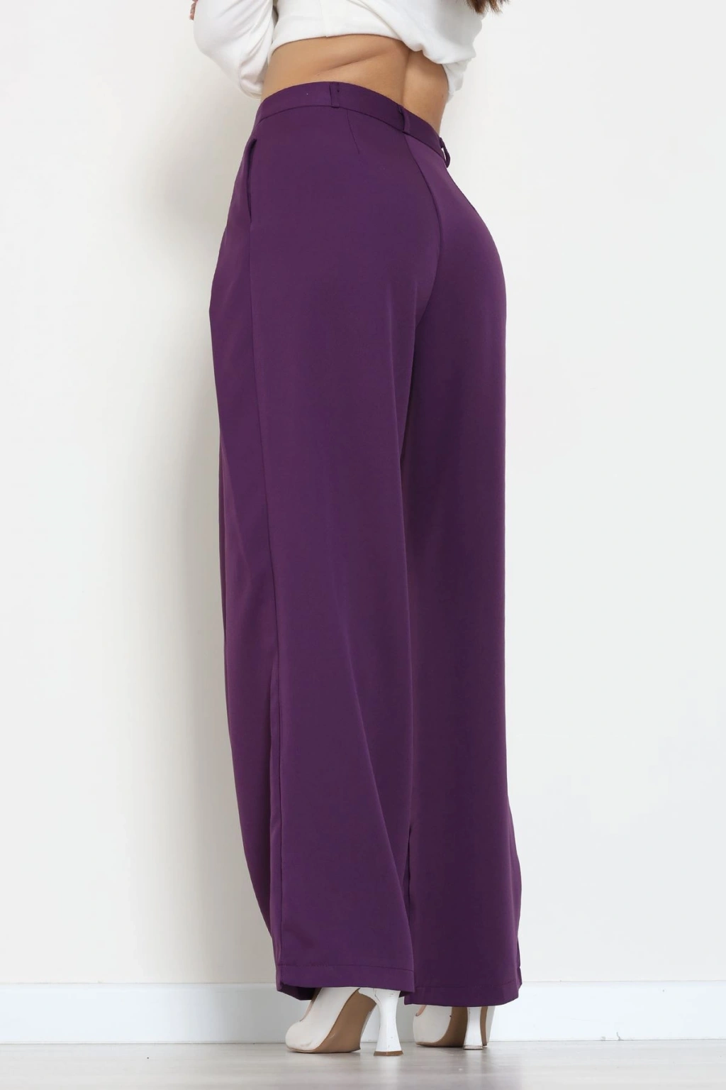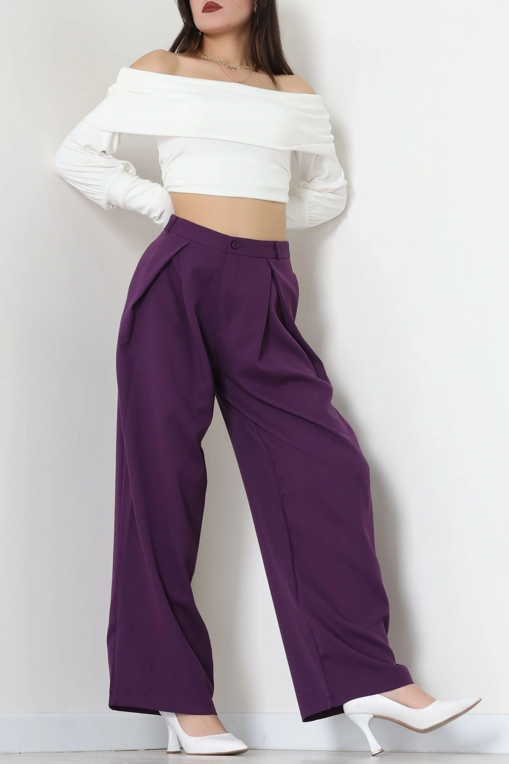 Dabıl Kumaş Pile Detaylı Pantolon Mor - 51610.683.