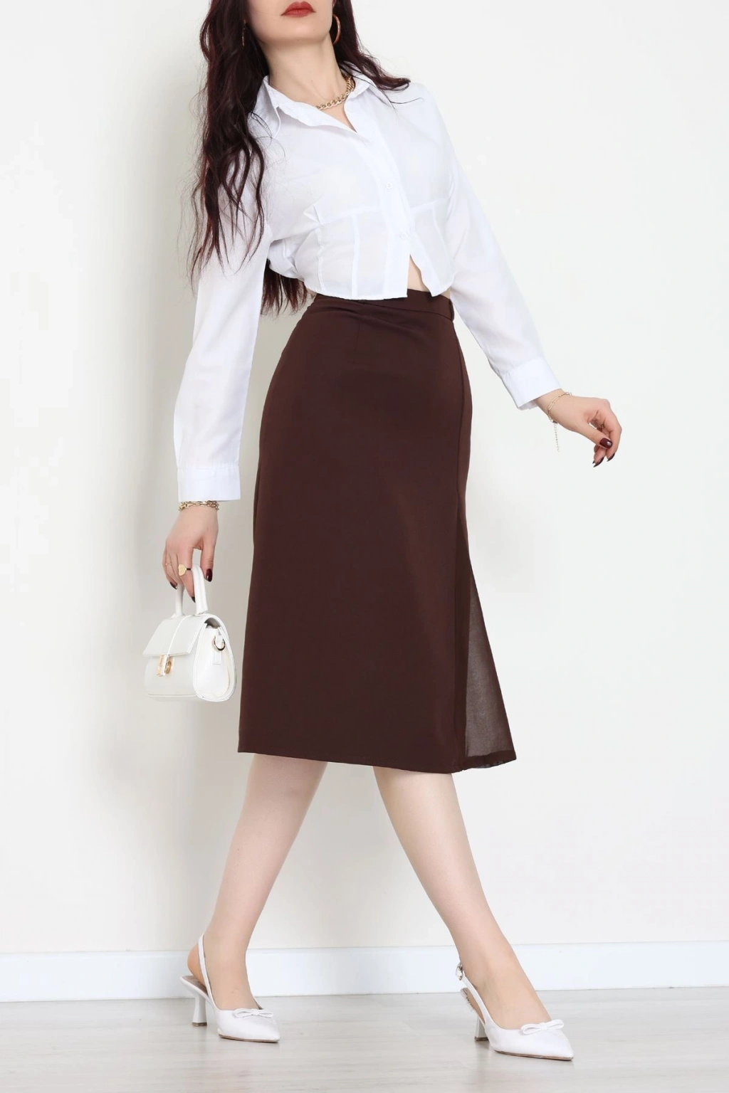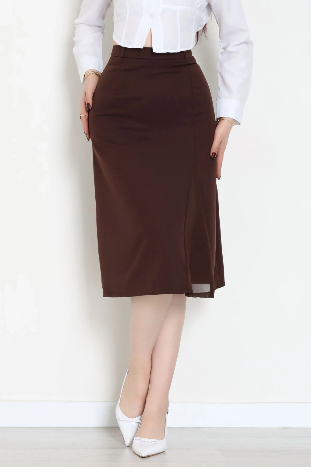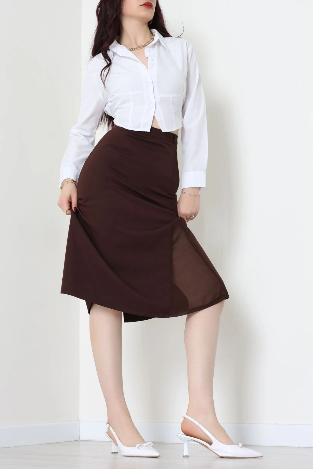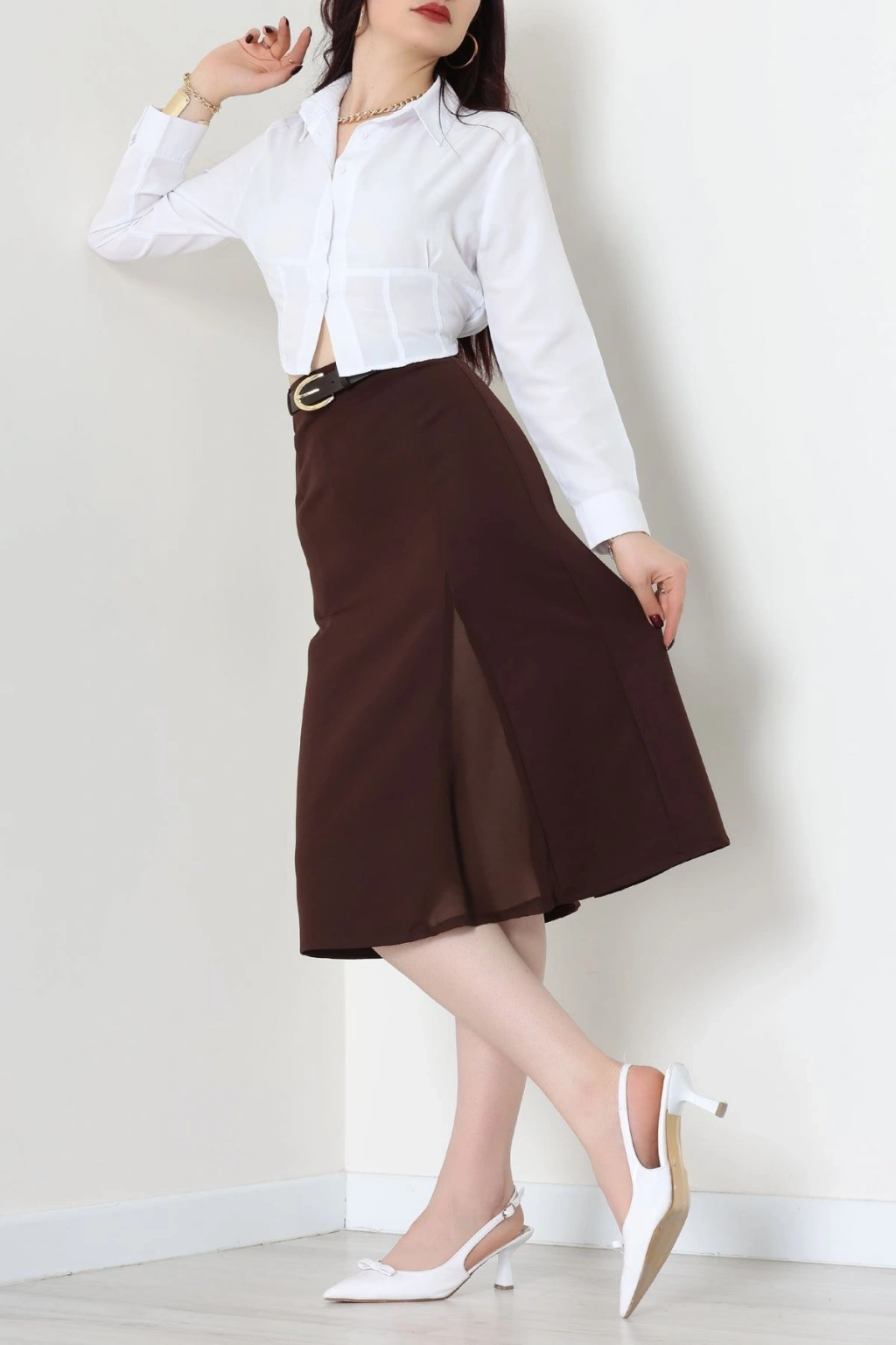 Dabıl Kumaş Tül Yırtmaçlı Etek Kahve - 51260.1991.