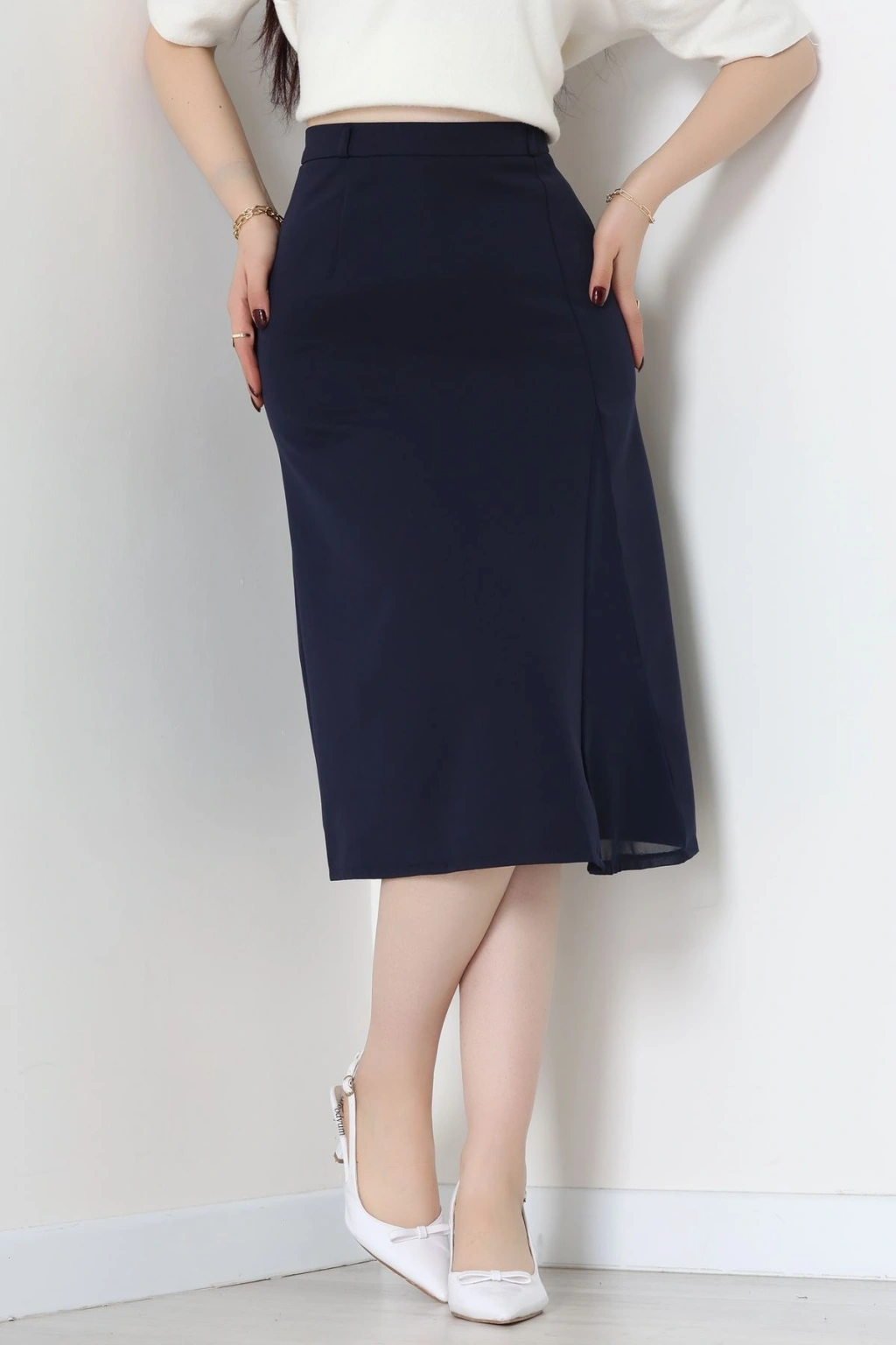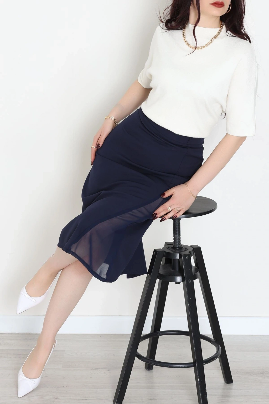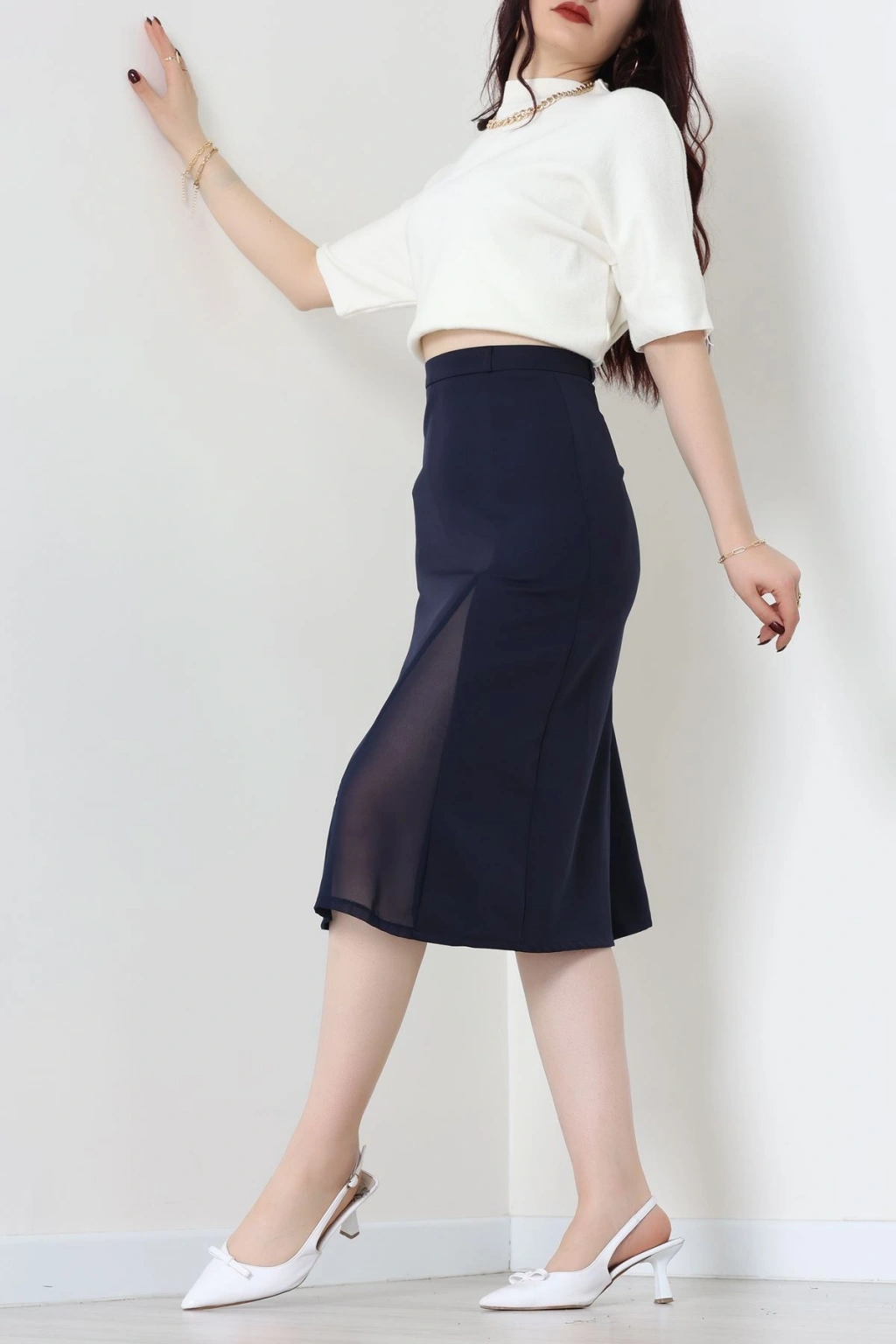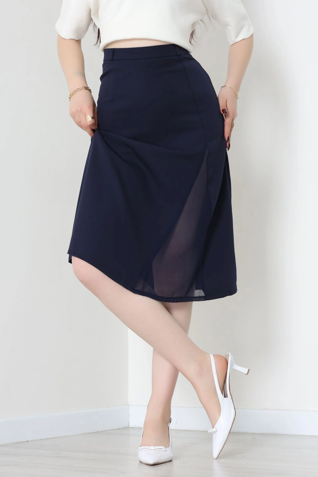 Dabıl Kumaş Tül Yırtmaçlı Etek Lacivert - 51260.1991.