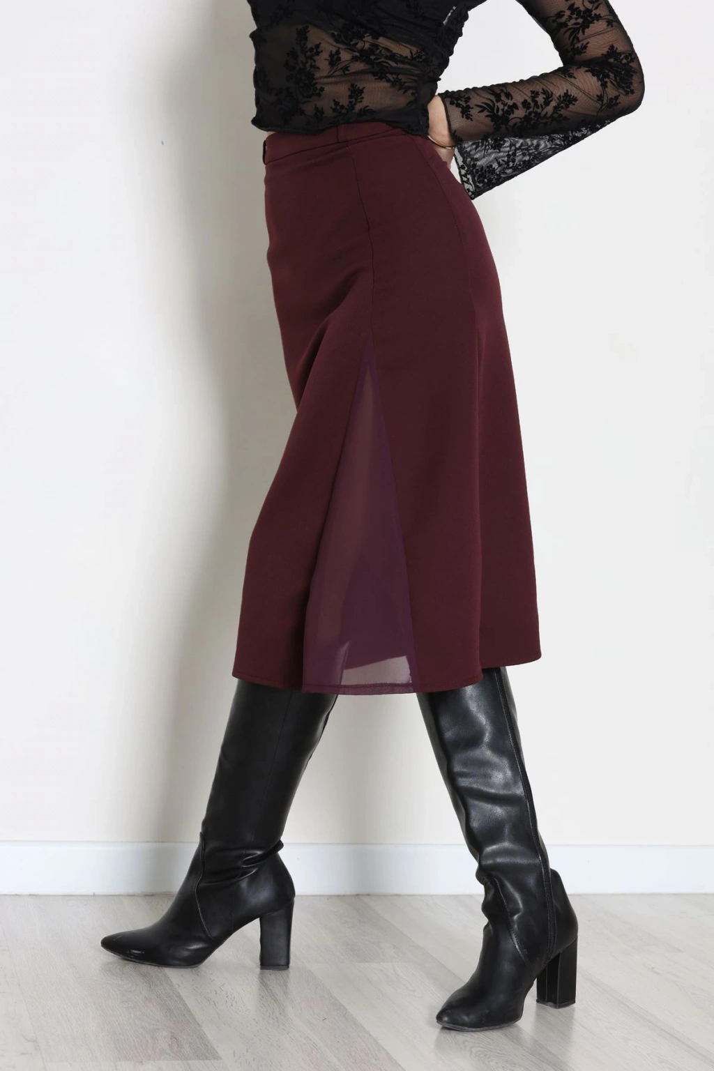 Dabıl Kumaş Tül Yırtmaçlı Etek Mürdüm - 51260.1991.