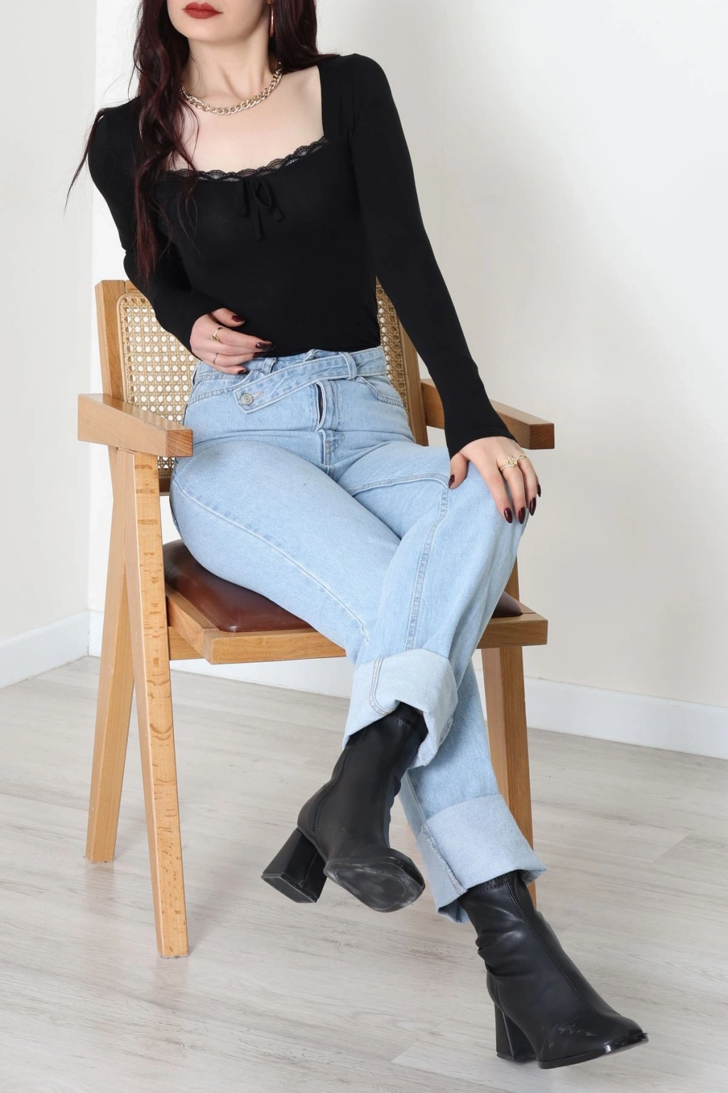 Dantel Detaylı Madonna Yaka Viskon Body Bordo - 5506.599.