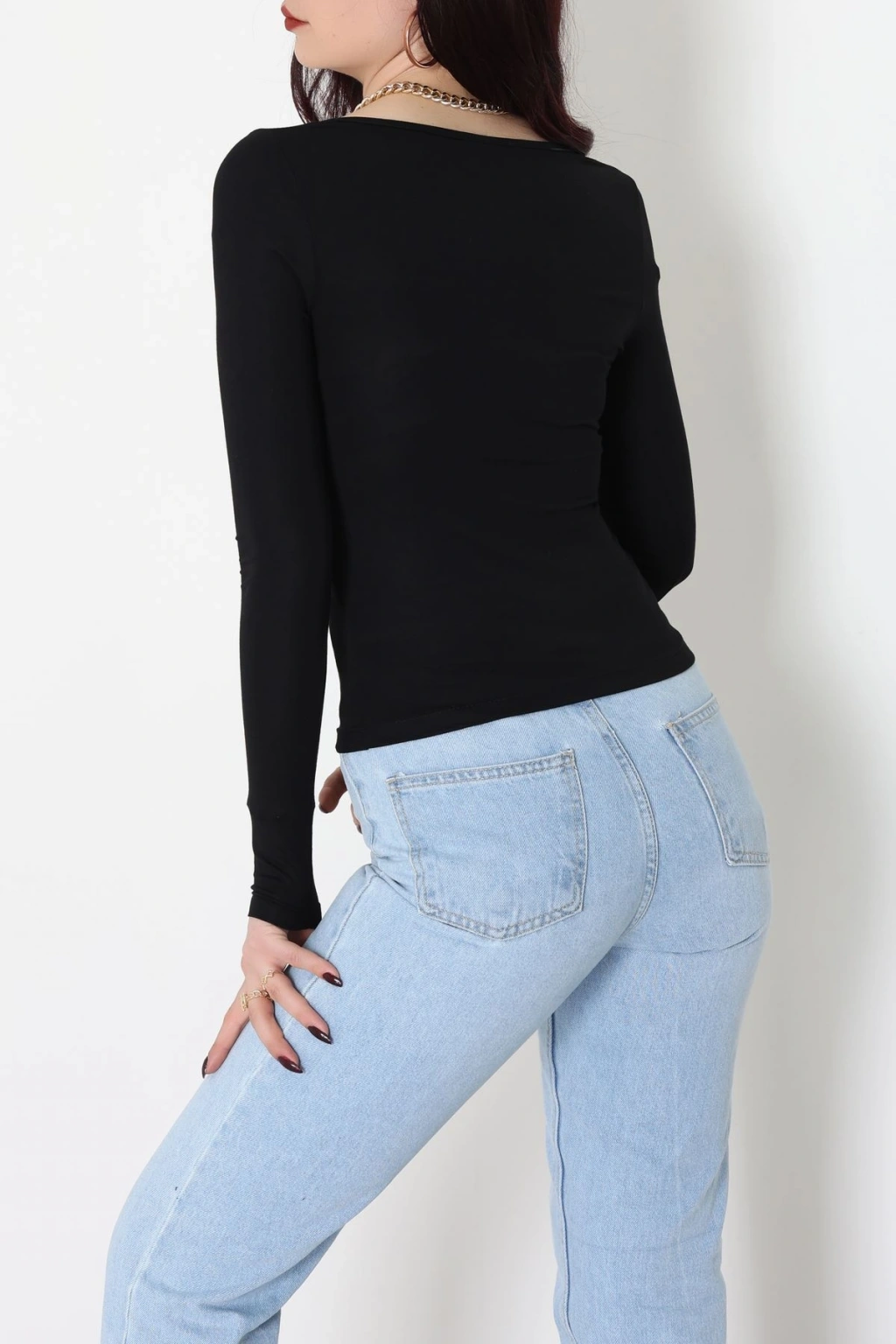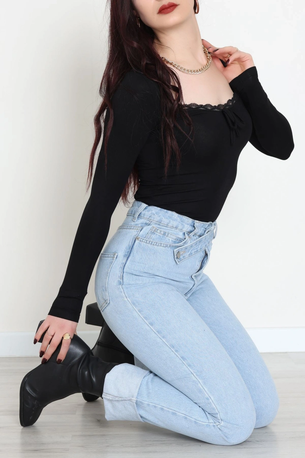 Dantel Detaylı Madonna Yaka Viskon Body Siyah - 5506.599.