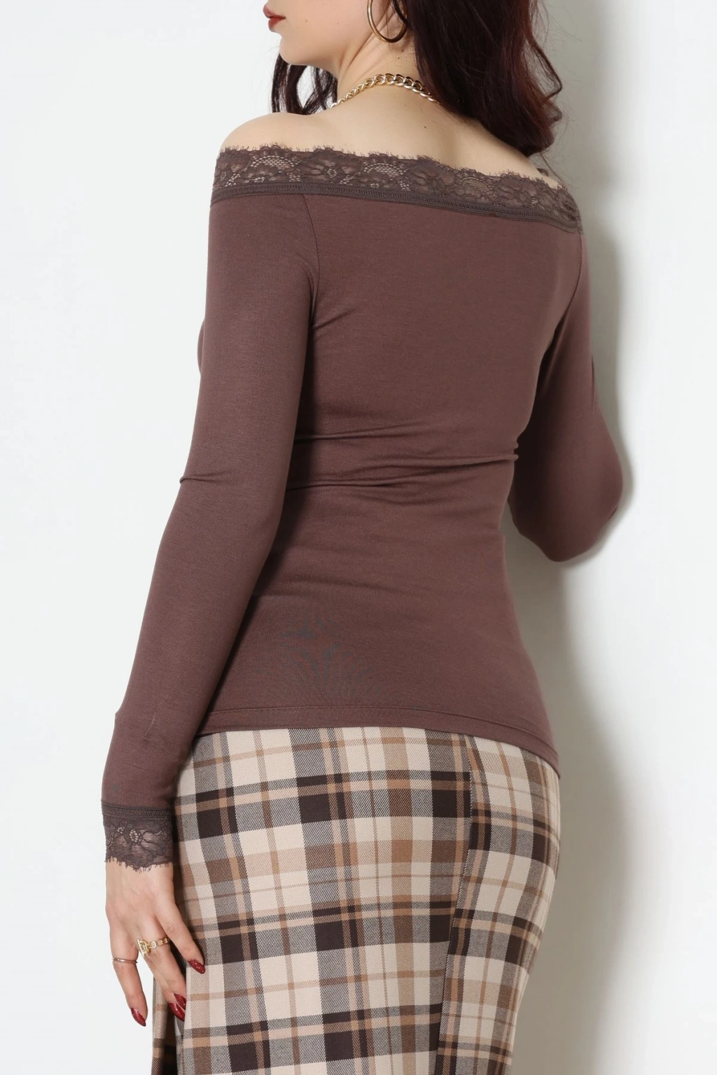 Dantel Detaylı Madonna Yaka Viskon Body Kahve - 5506.599.
