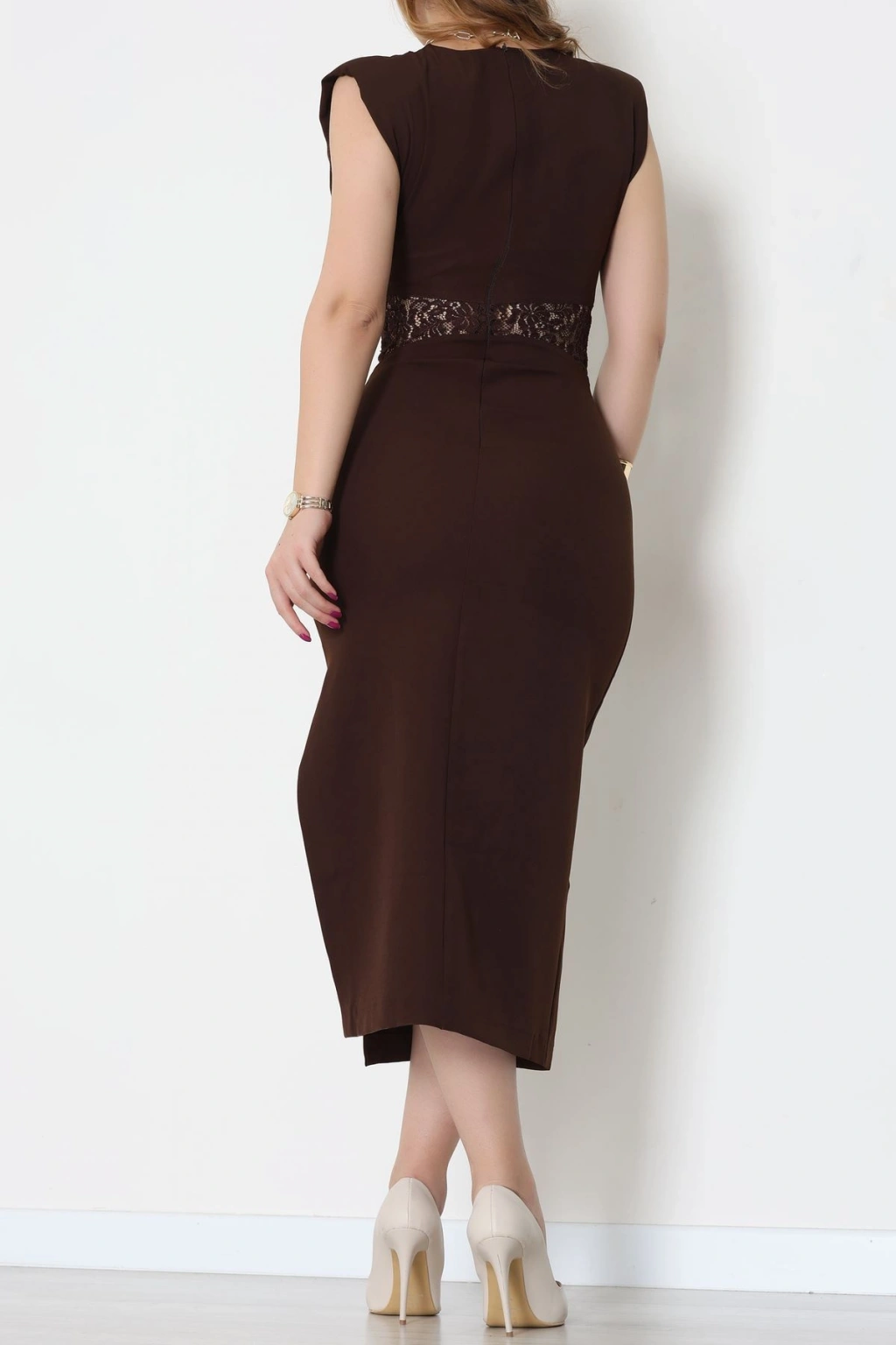 Dantel Detaylı Vatkalı Double Elbise Kahve - 51253.1347.