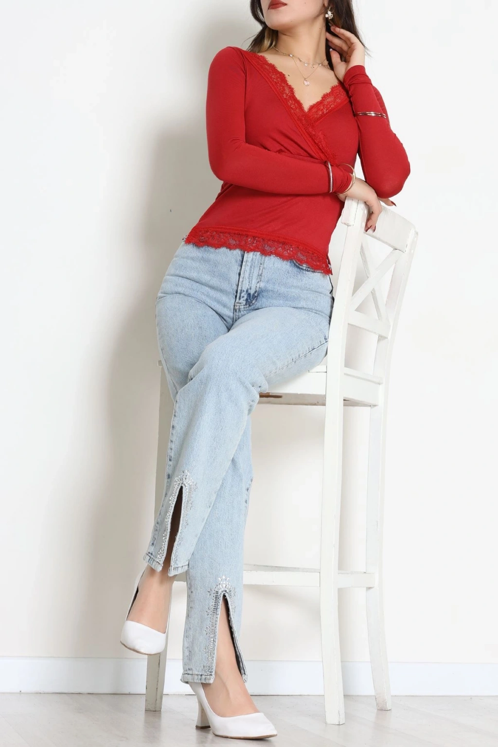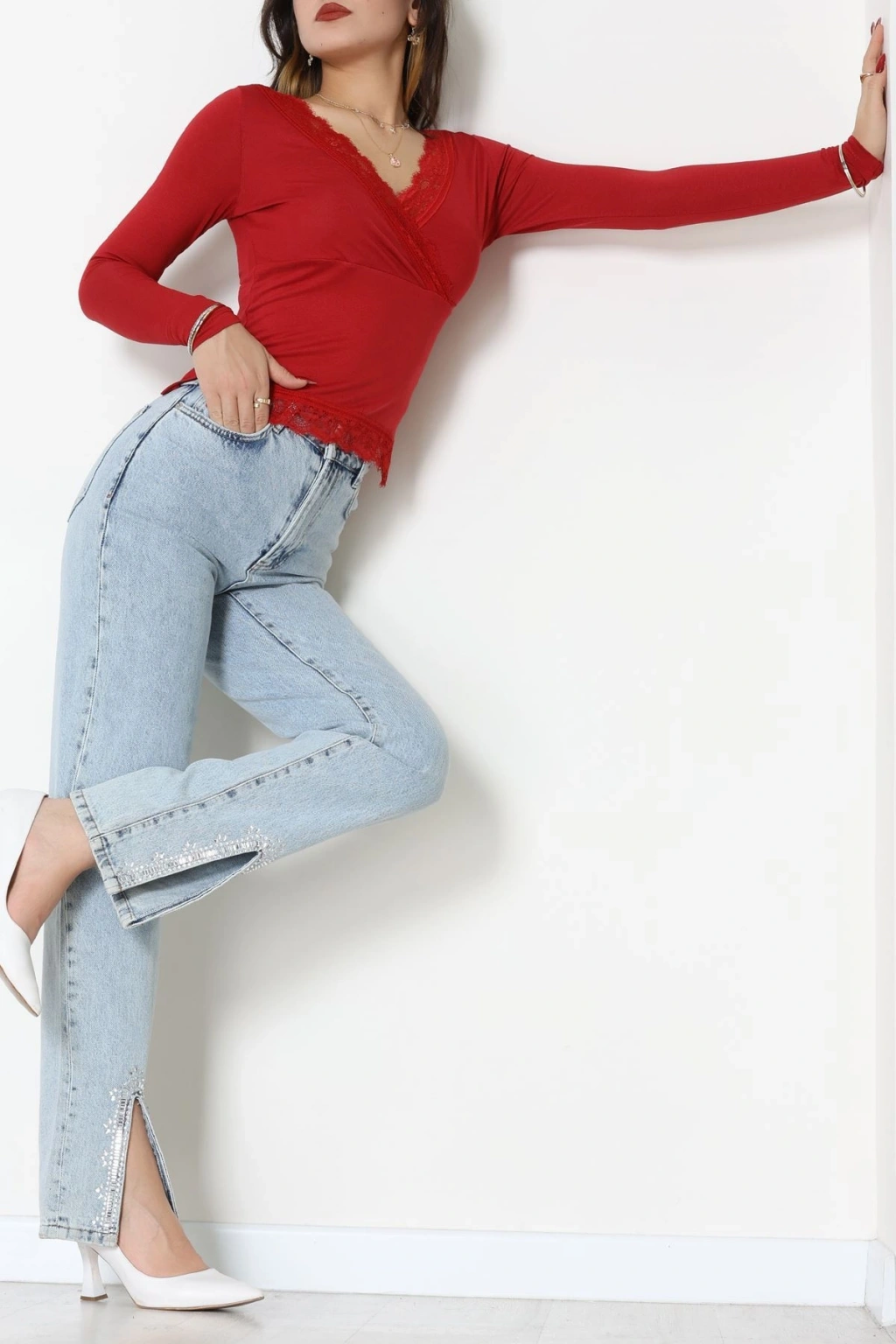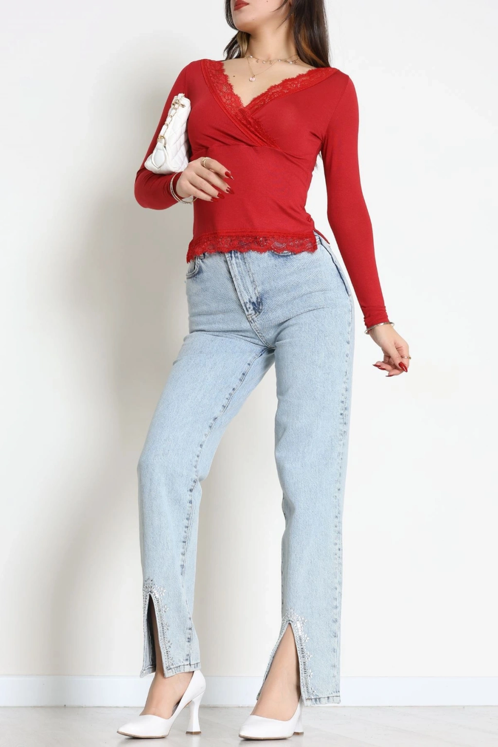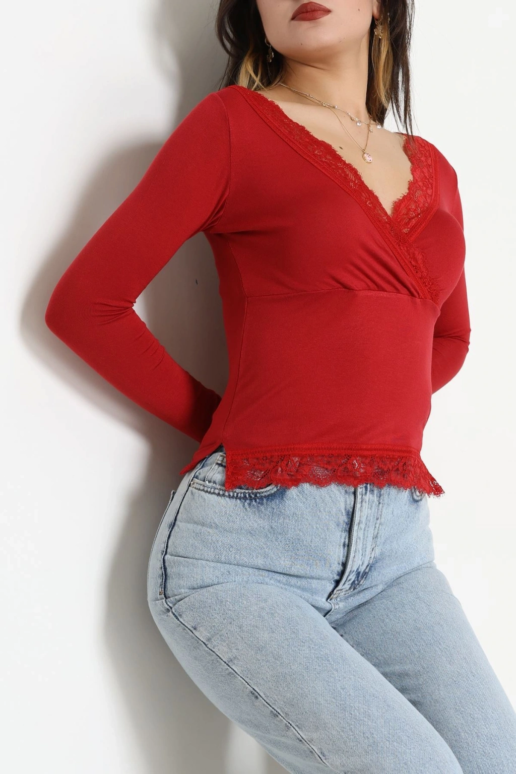Dantel V Yaka Viskon Body Bordo - 5507.599.