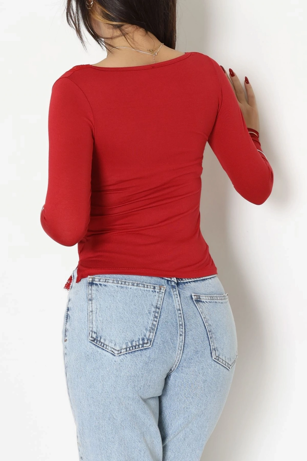 Dantel Detaylı Madonna Yaka Viskon Body Bordo - 5506.599.