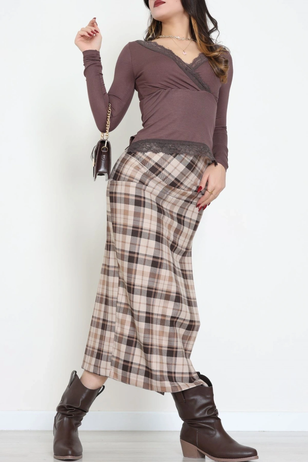 Dantel V Yaka Viskon Body Kahve - 5507.599.