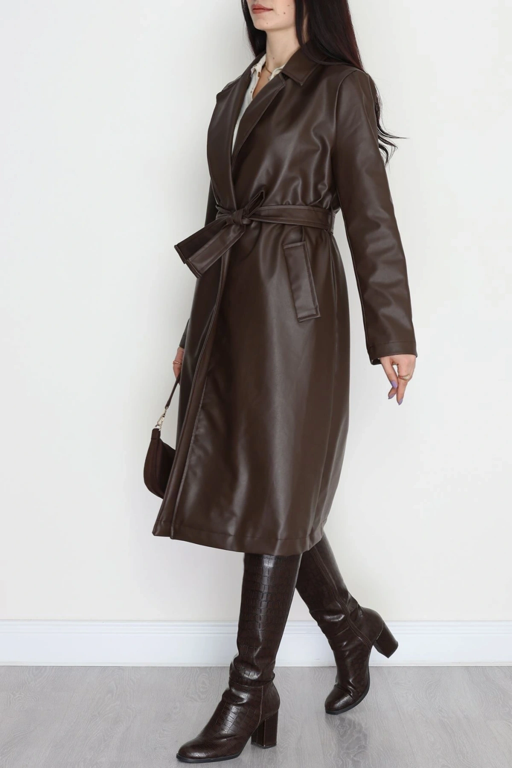 Deri Uzun Trençkot Acıkahve - 51025.1779.