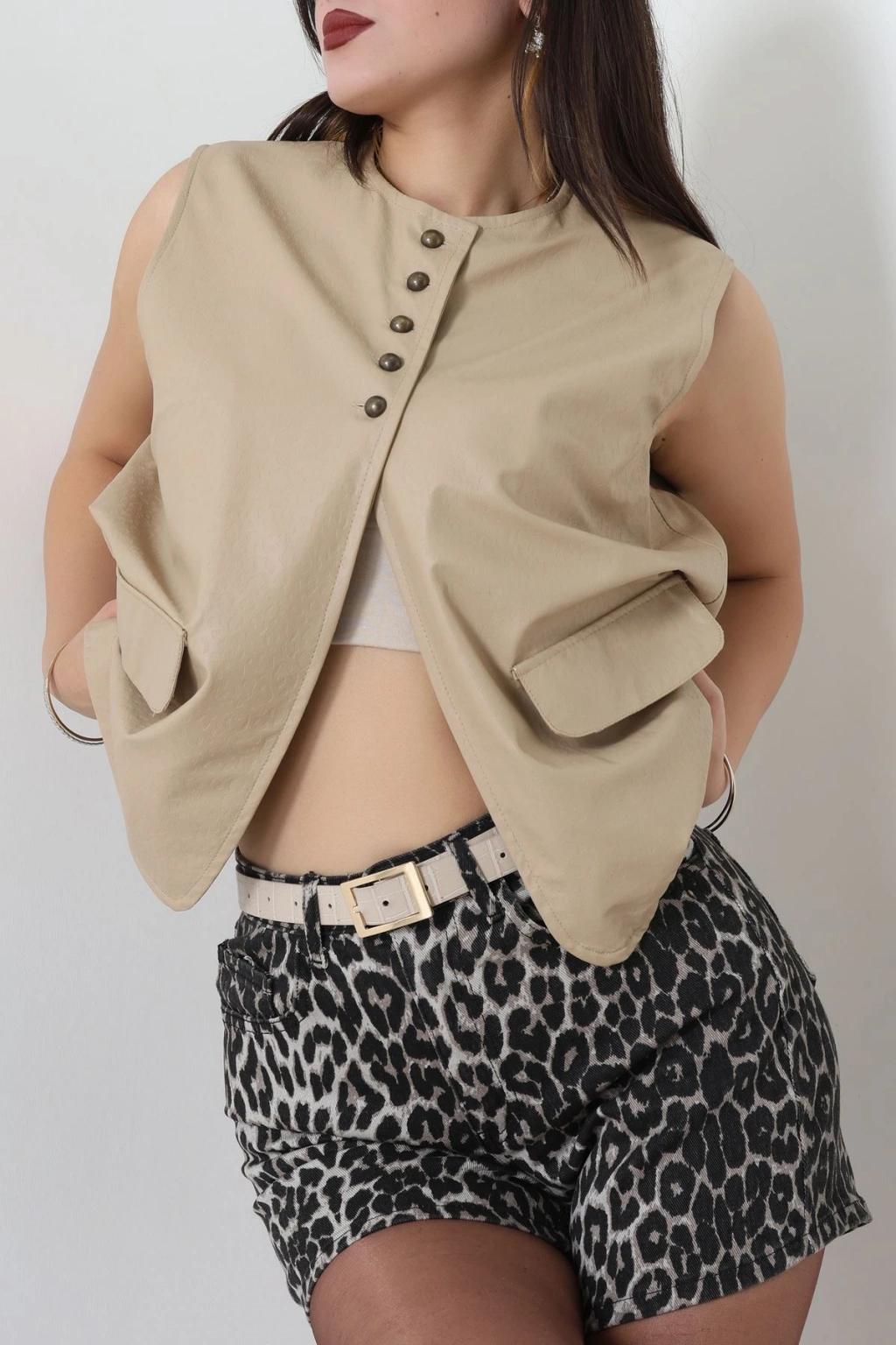 Kemerli Kürklü Yelek Bej - 8785.179.