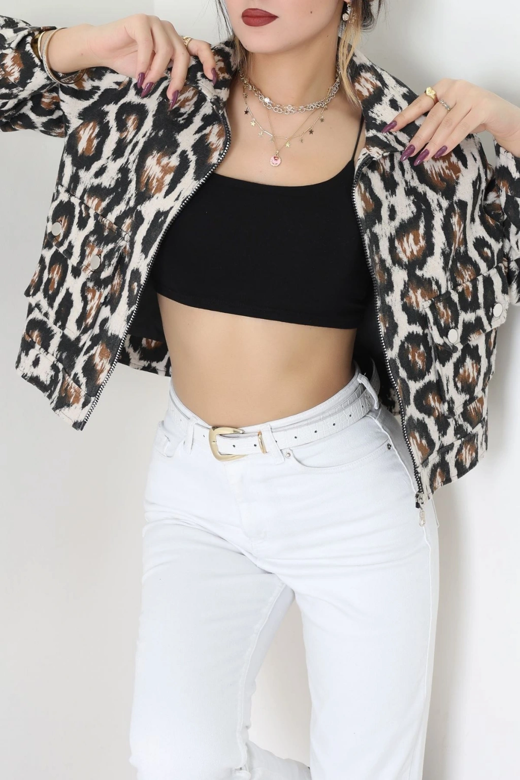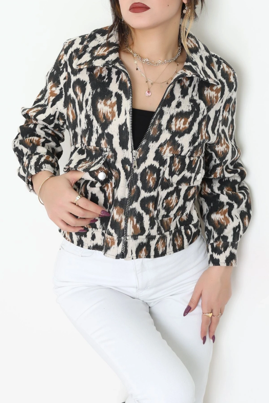 Desenli Fermuarlı Ceket Beyazleo - 8769.179.