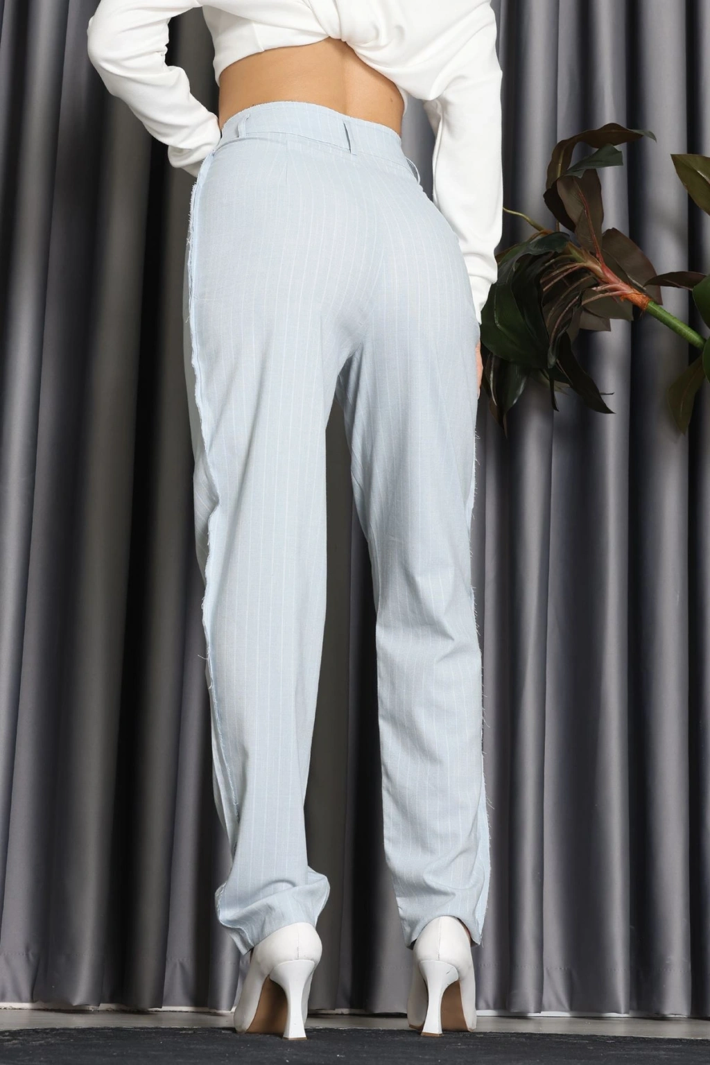 Dikiş Detay Çizgili Pantolon Mavi - 31156.444.