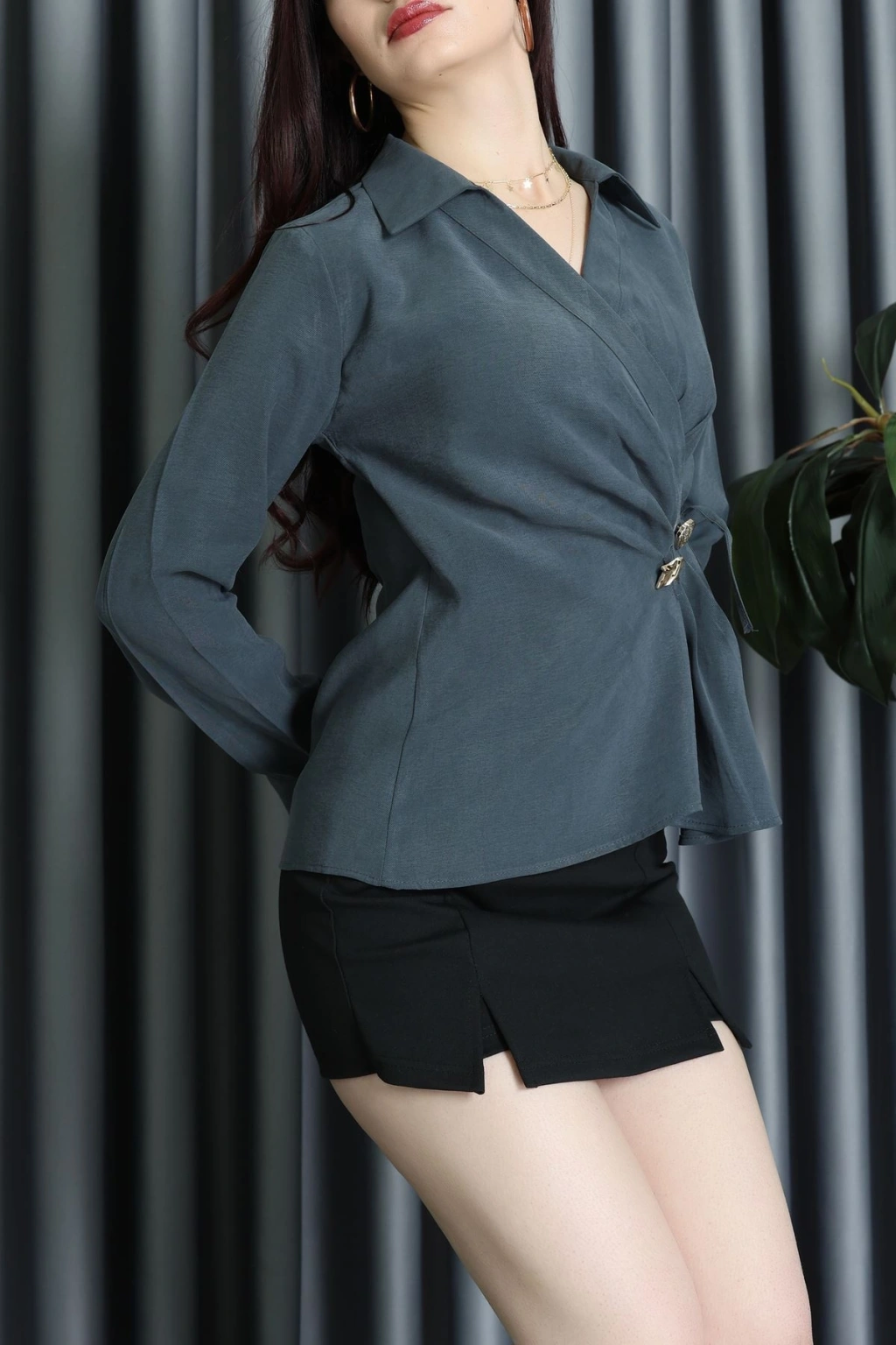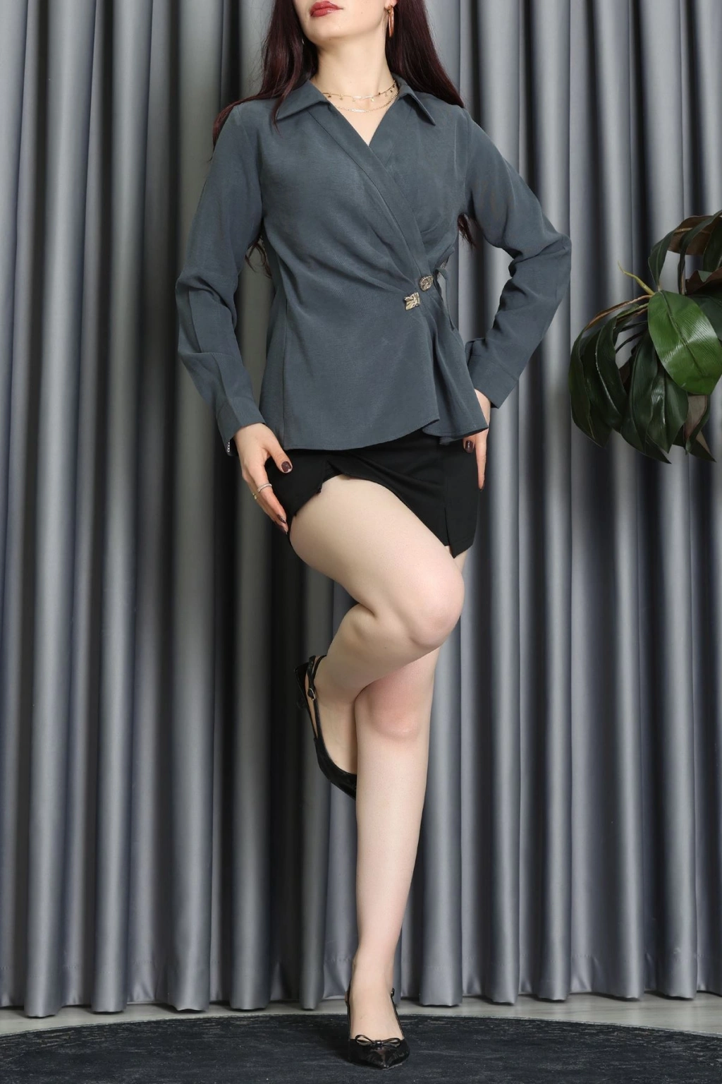 Diogenal Tensel Asimetrik Bağlamalı Bluz Antrasit - 70996.1934.