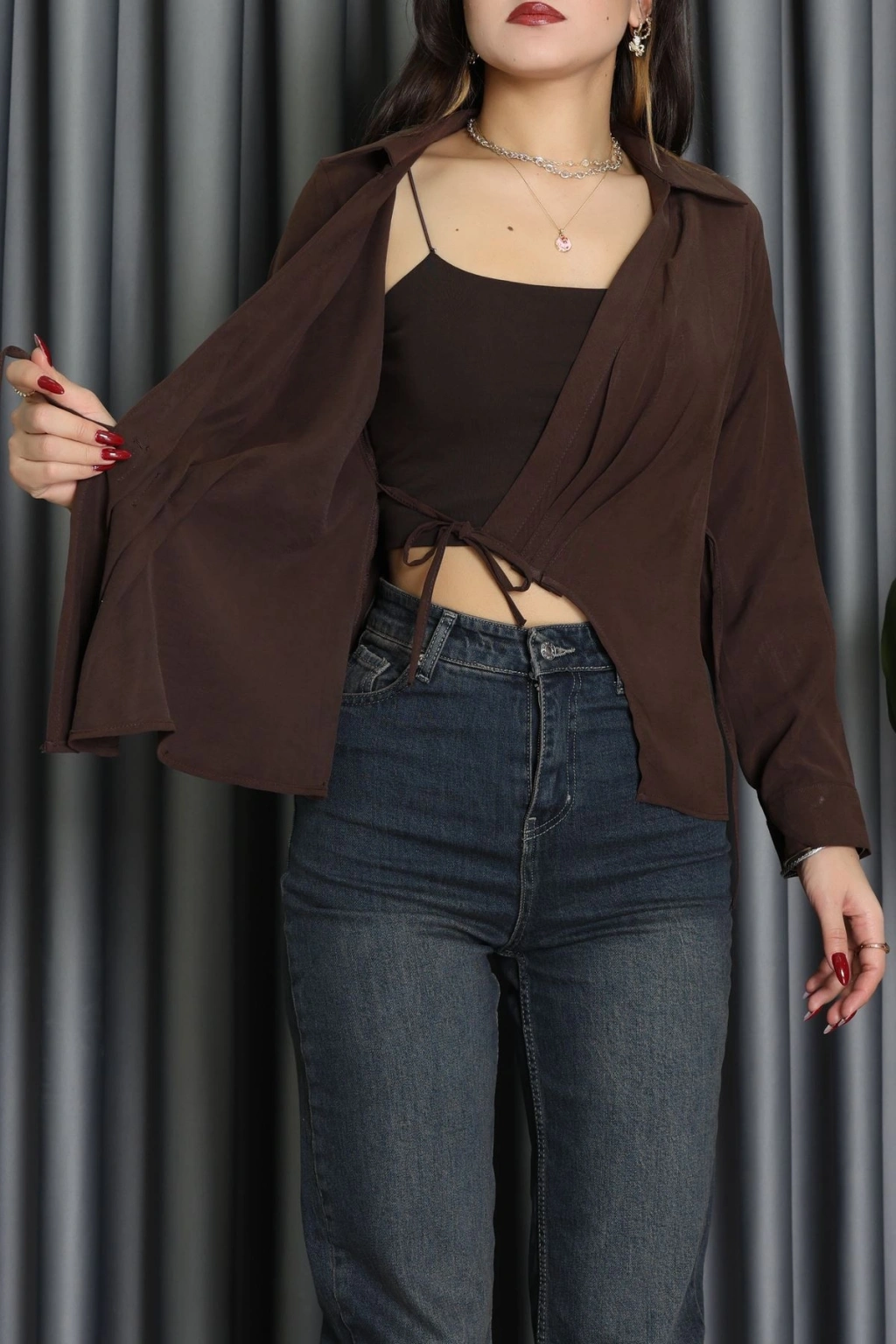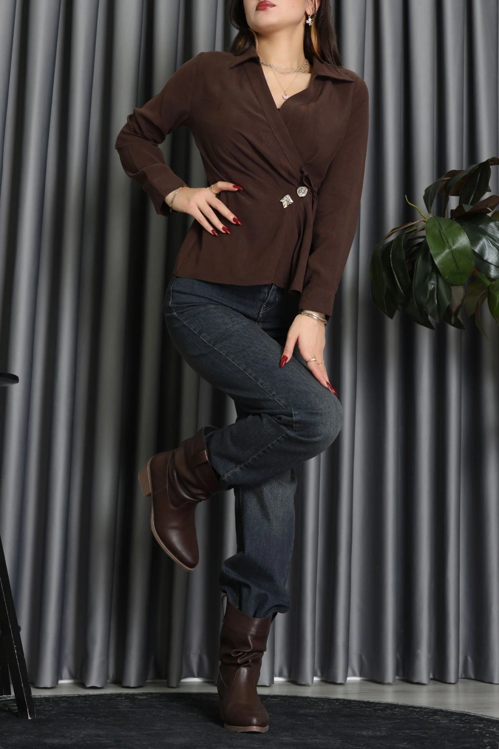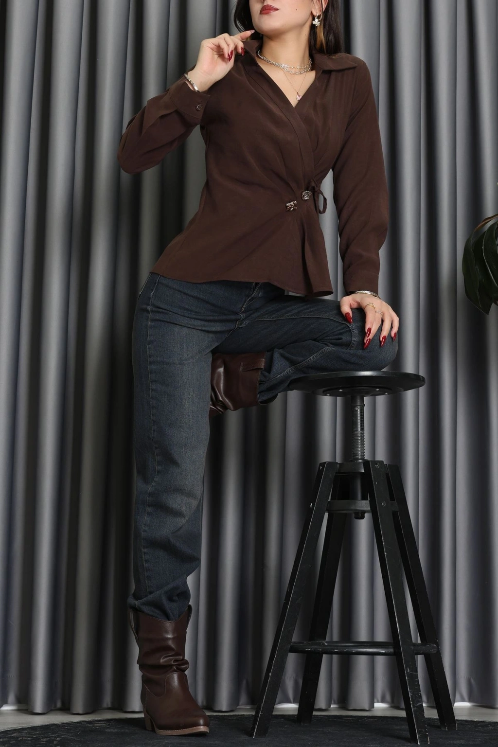 Diogenal Tensel Asimetrik Bağlamalı Bluz Kahve - 70996.1934.