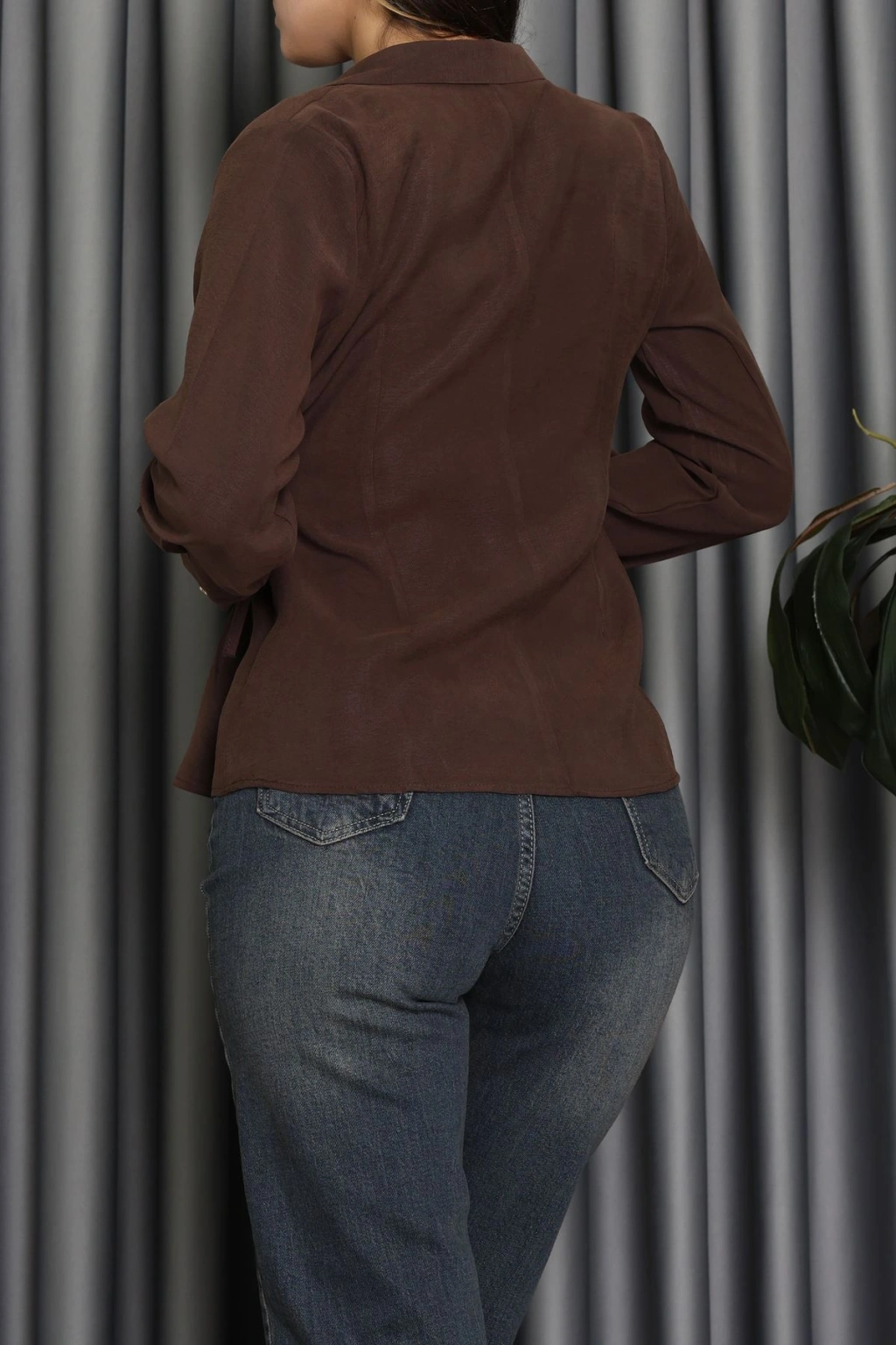 Armürlü Müslin Oversize Gömlek Kahve - 70994.1934.