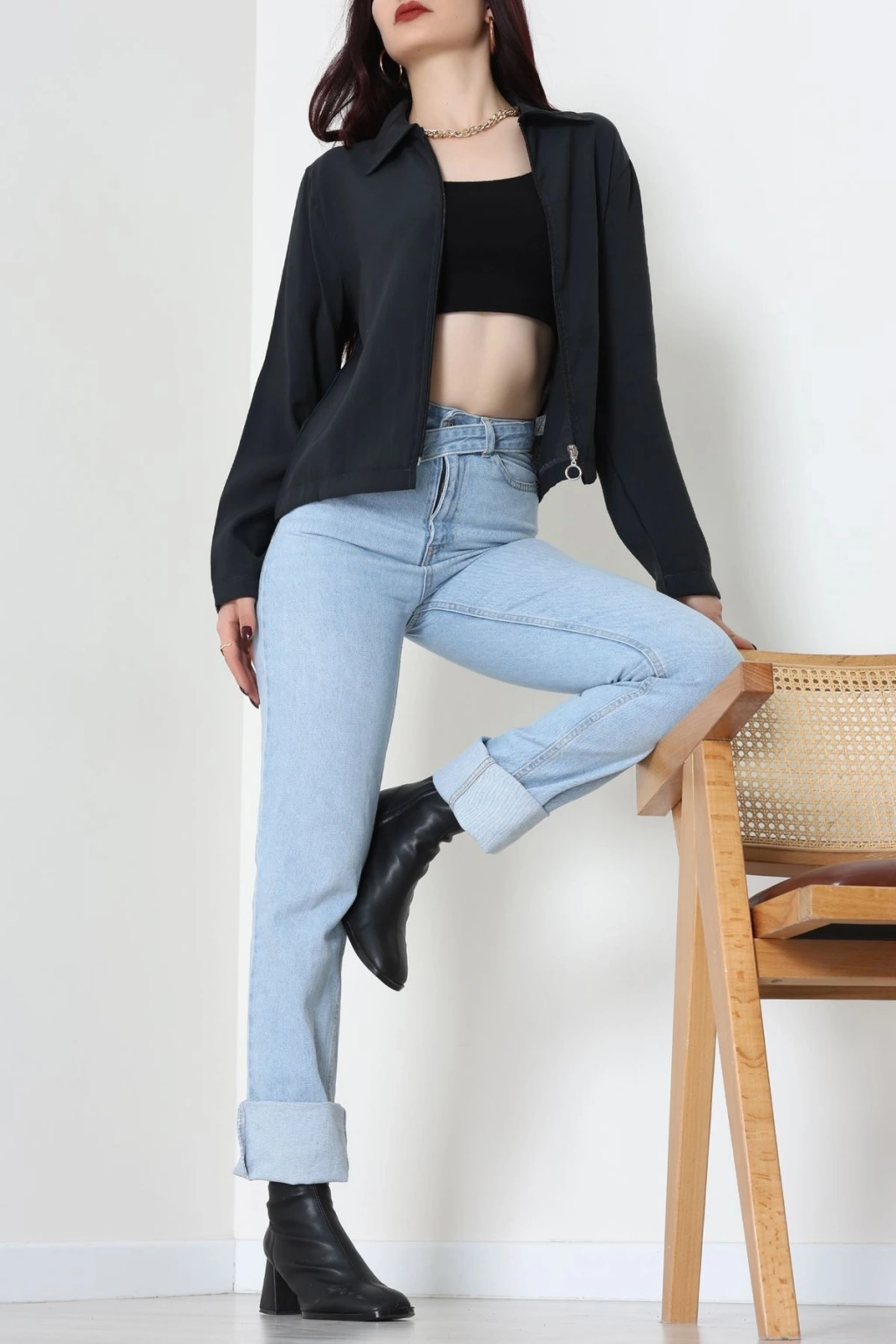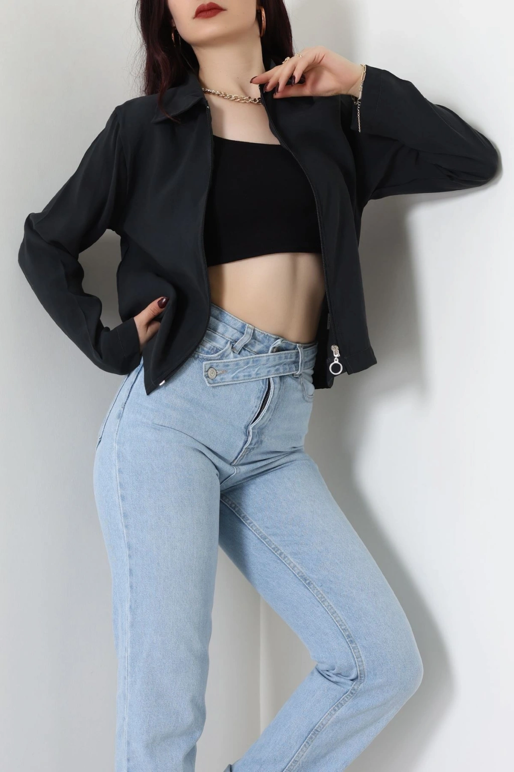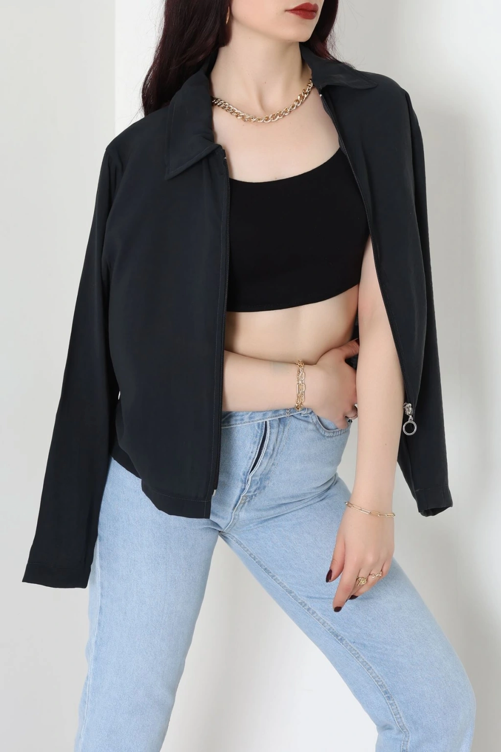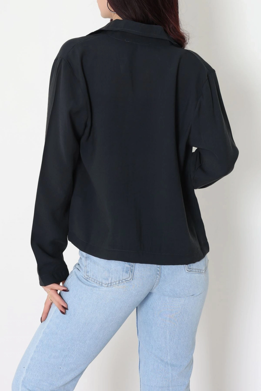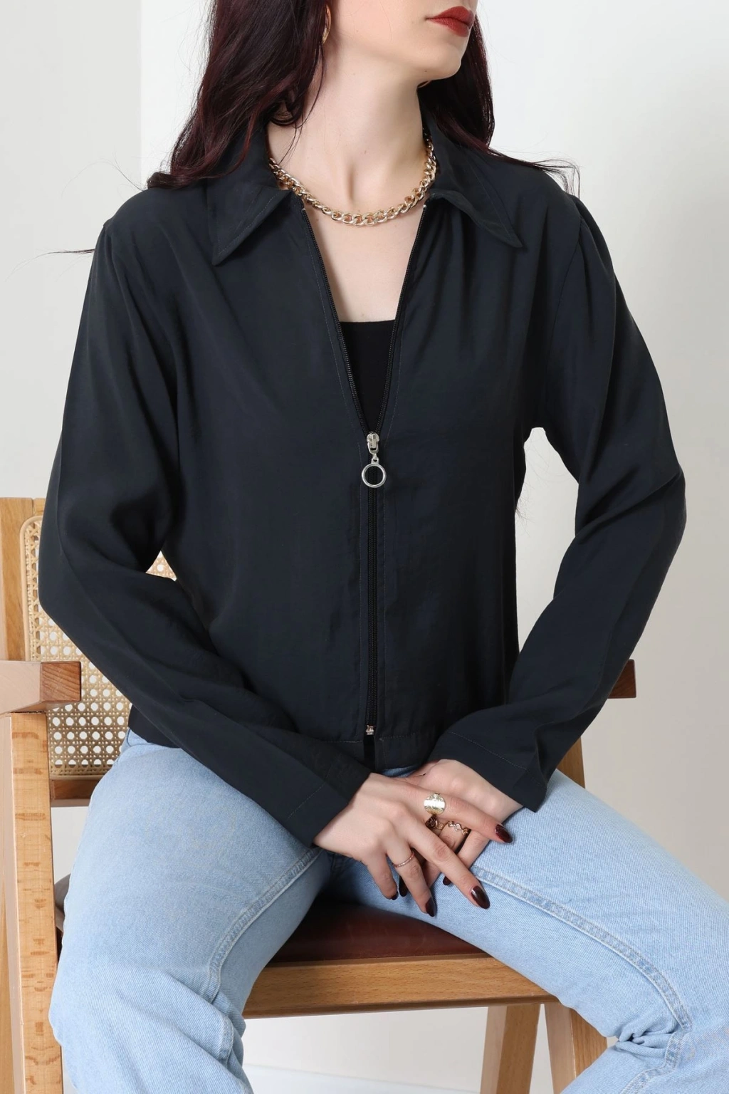 Dokuma Modal Fermuarlı Polo Yaka Ceket Gömlek Siyah - 51237.1837.