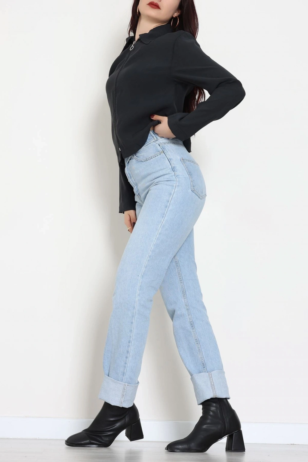 Deri Düğmeli Gömlek Siyah - 51076.Pu.