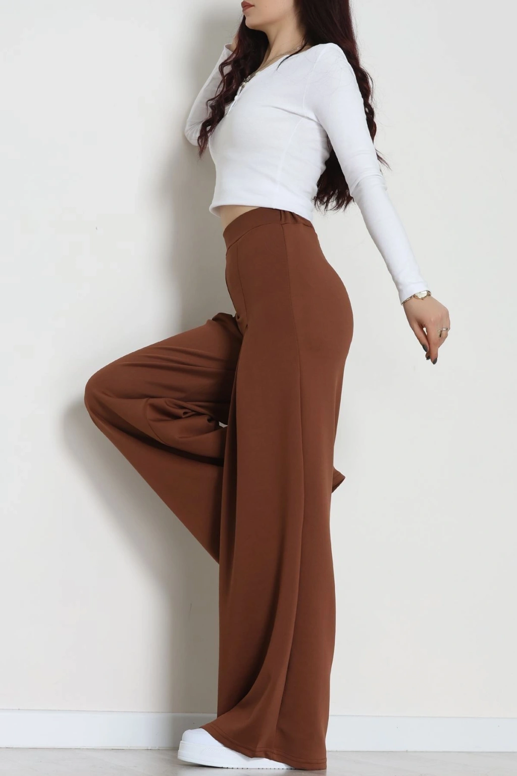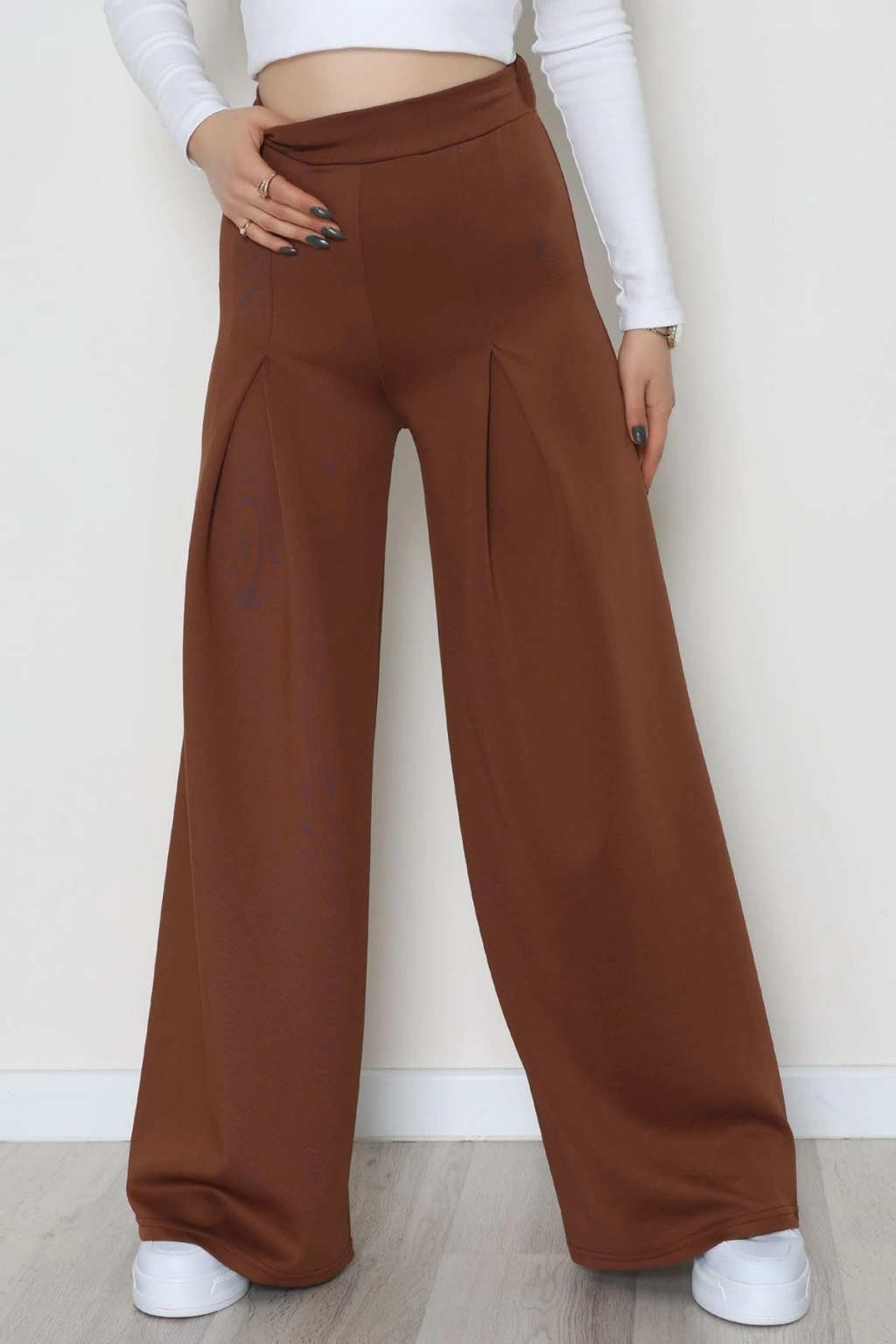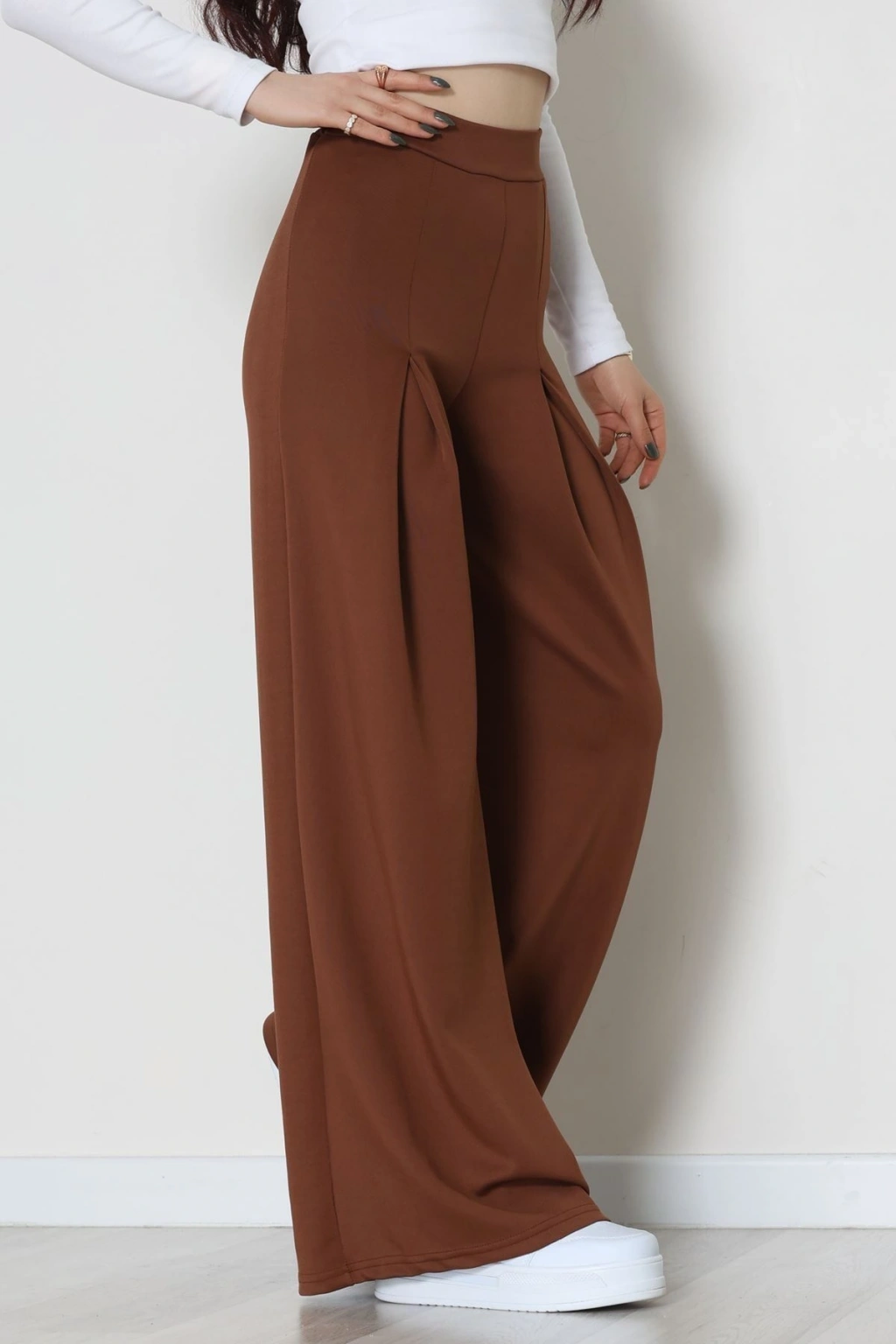 Double Krep Kumaş Önden Pileli Pantolon Acıkahve - 42784.1567.