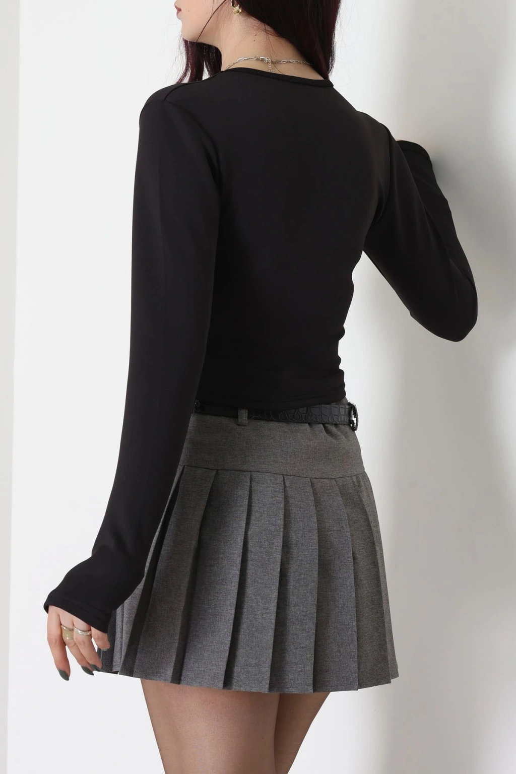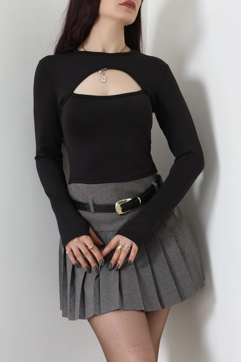 Double Krep Kumaş Parmak Geçmeli Bluz Siyah - 42796.1567.