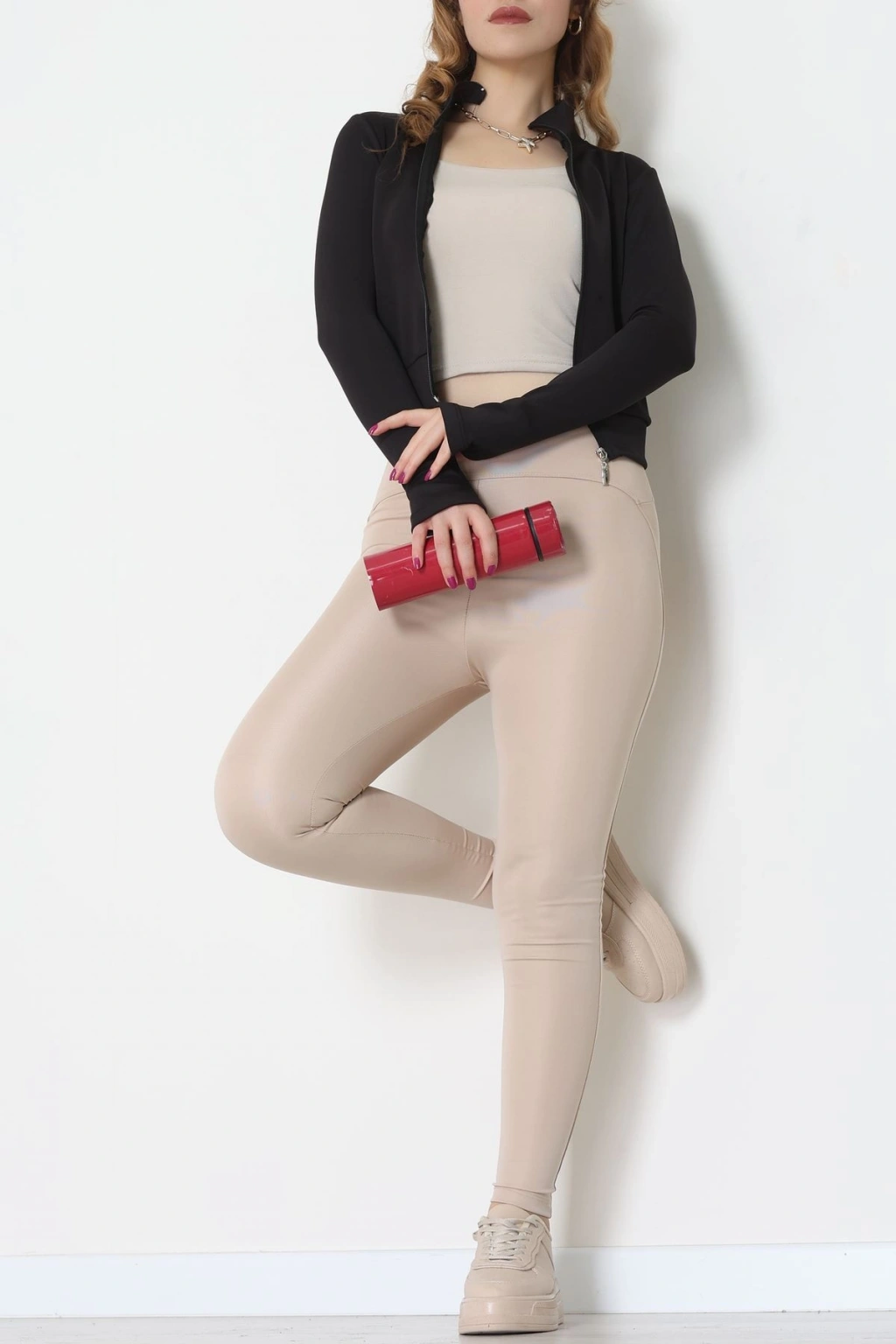 Fermuarlı Kürklü Ceket Krem - 8780.179.