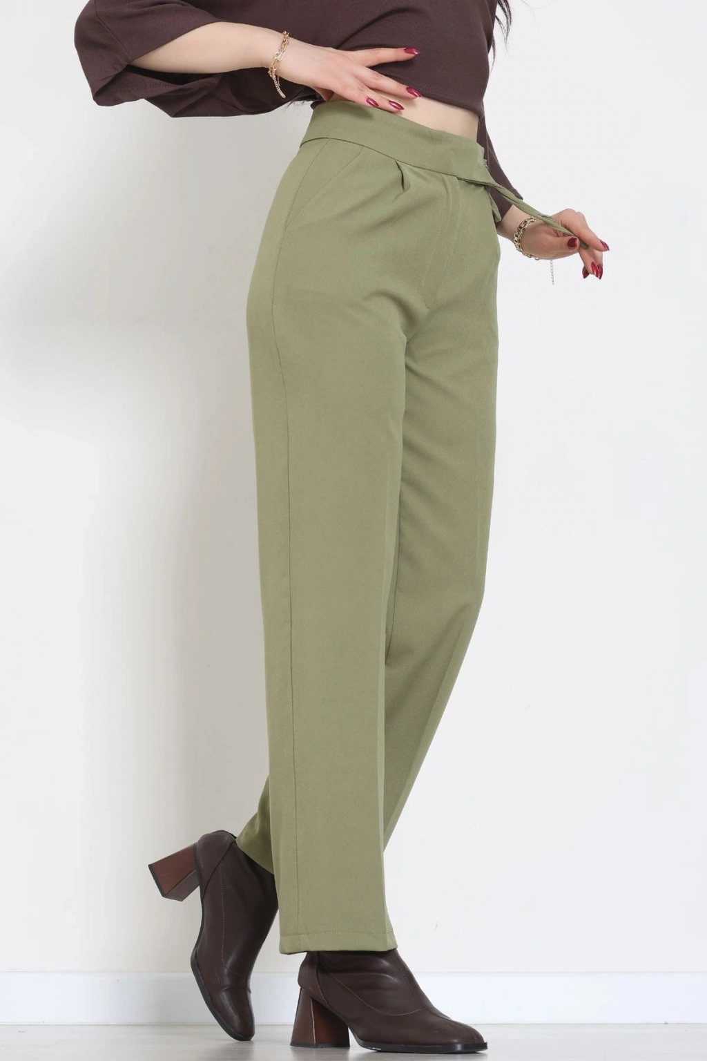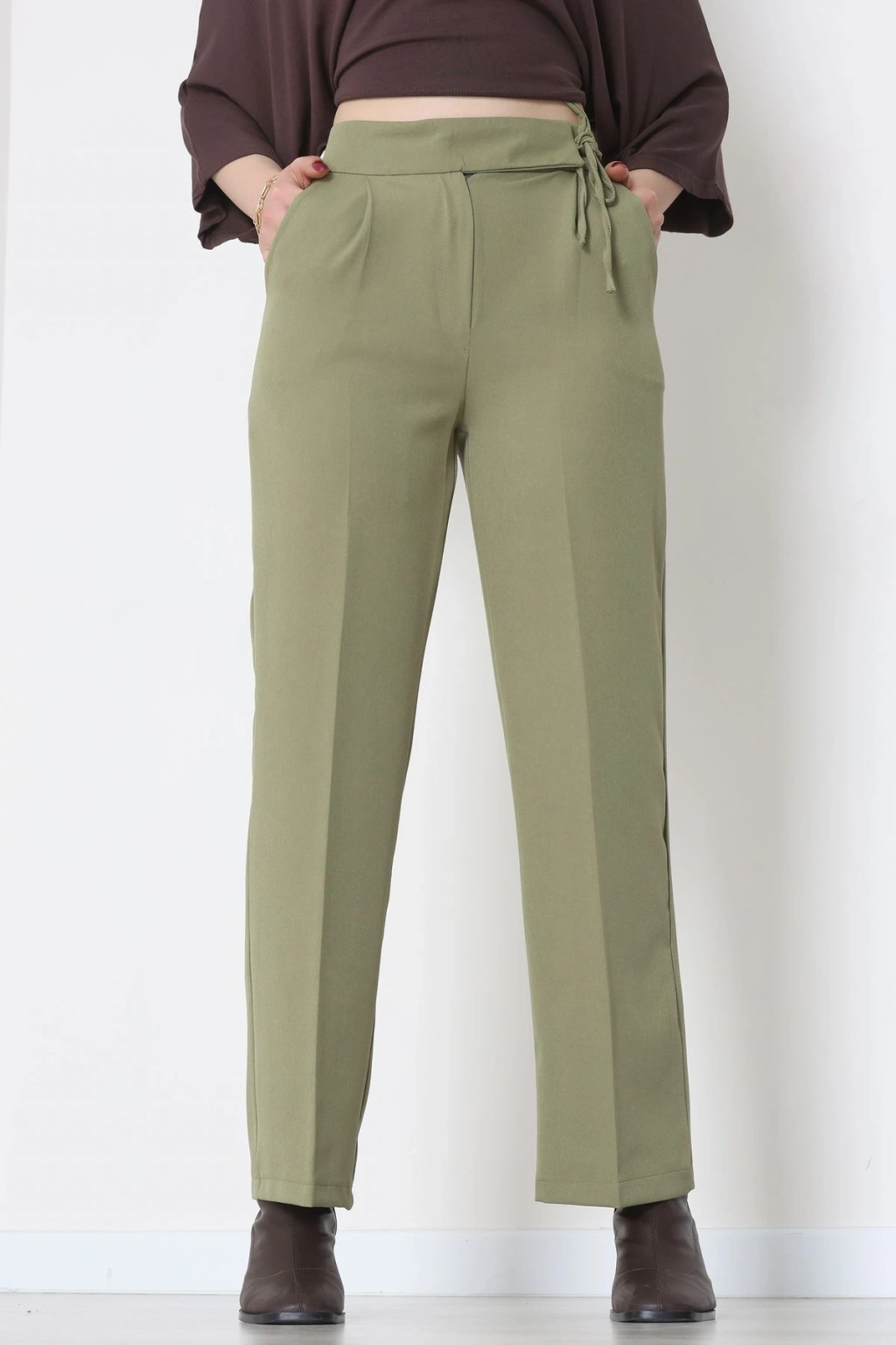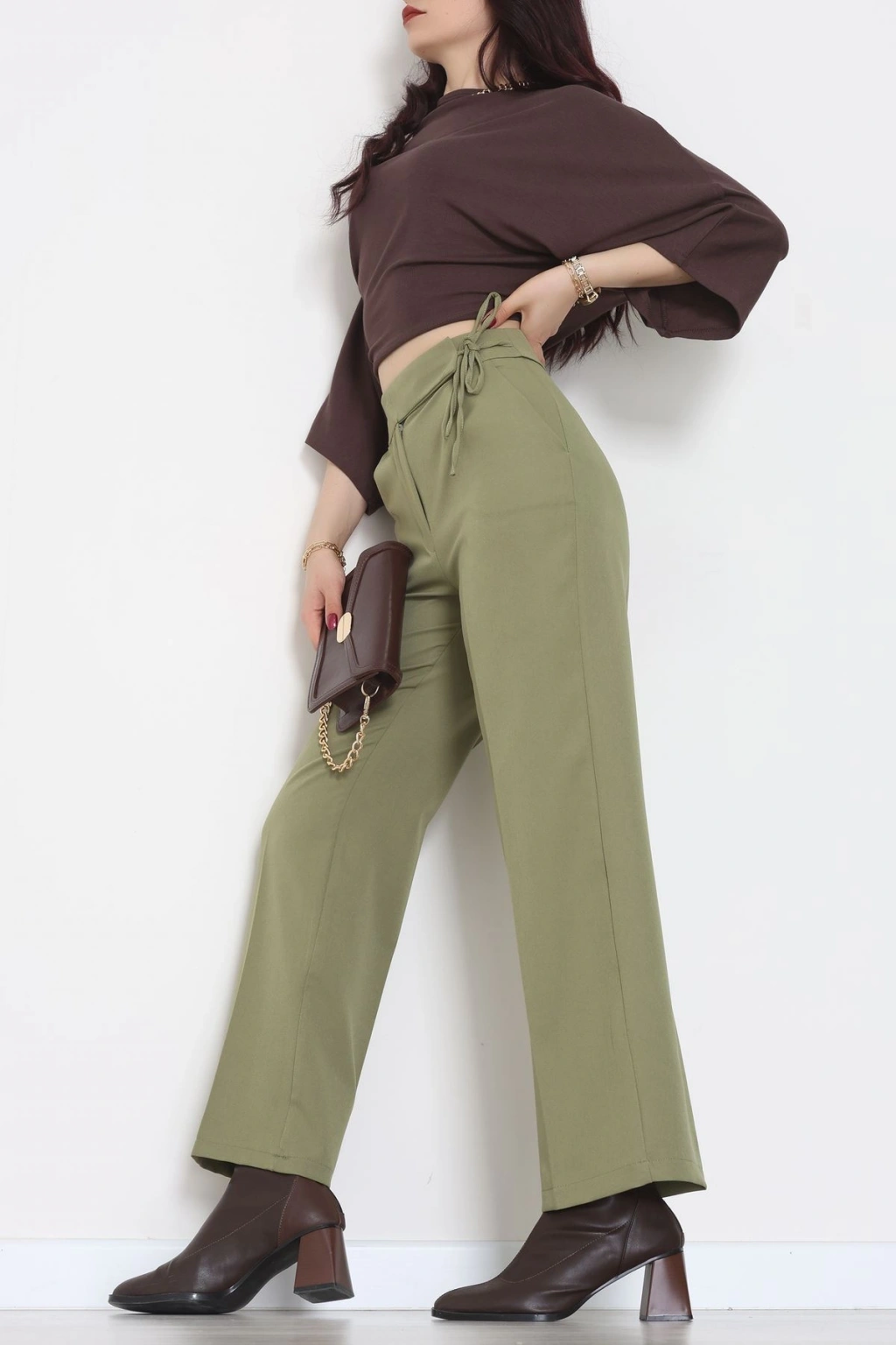Dabıl Kumaş Beli Bağcıklı Pantolon Kahve - 51615.683.