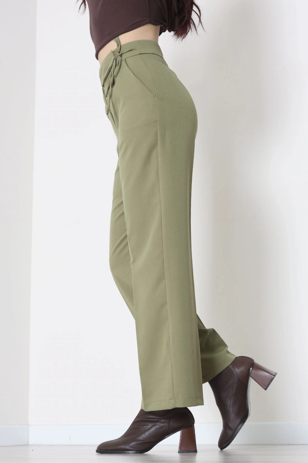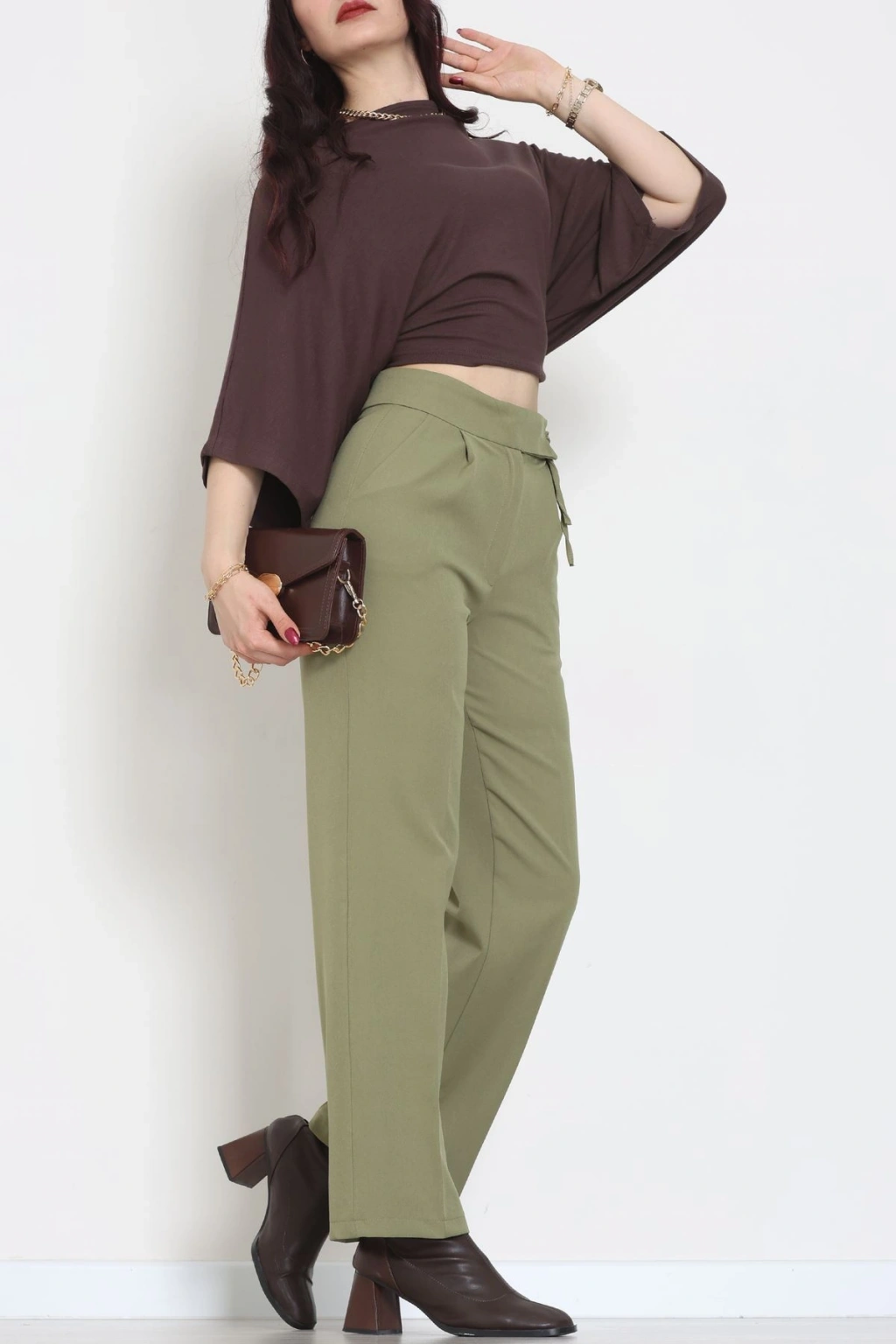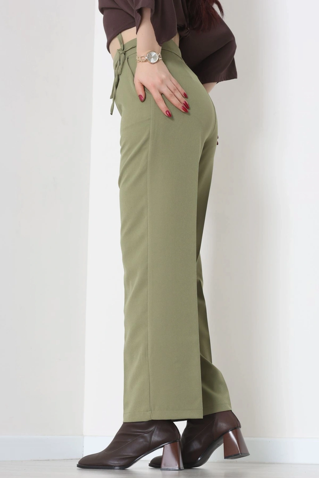 Dabıl Kumaş Beli Bağcıklı Pantolon Kahve - 51615.683.