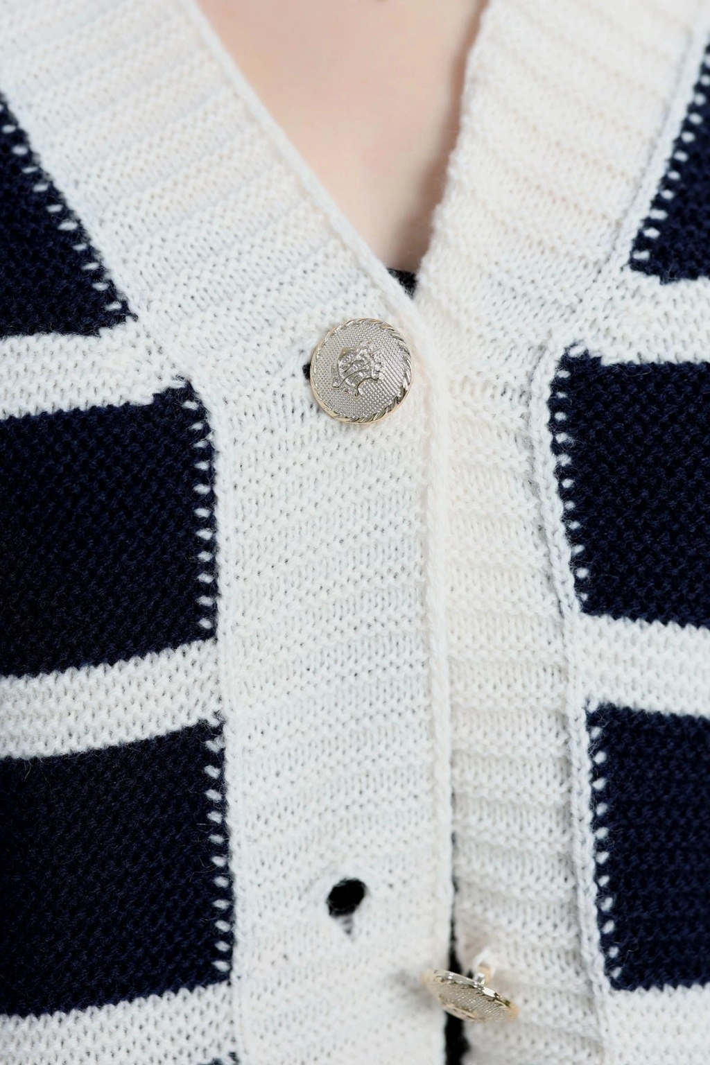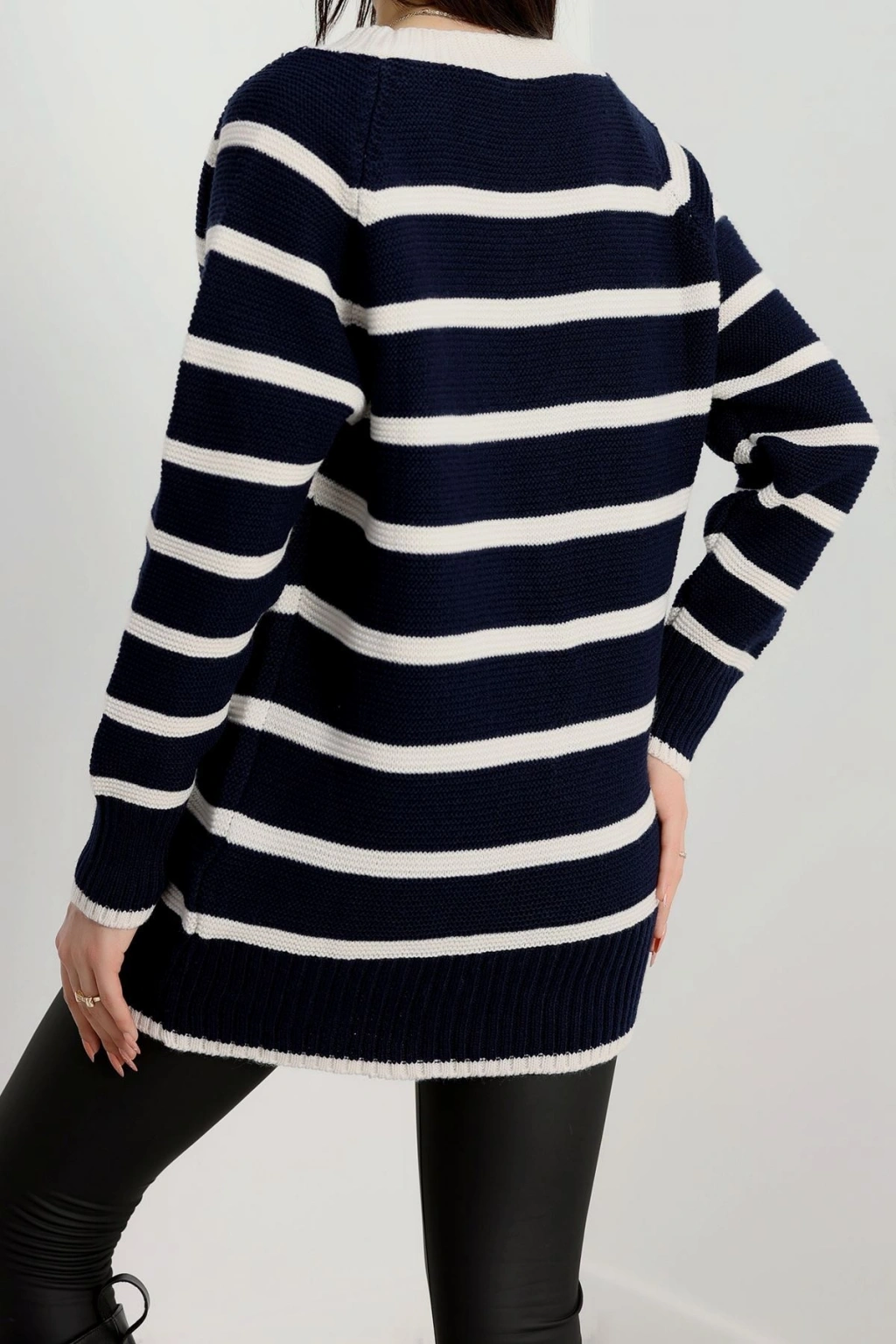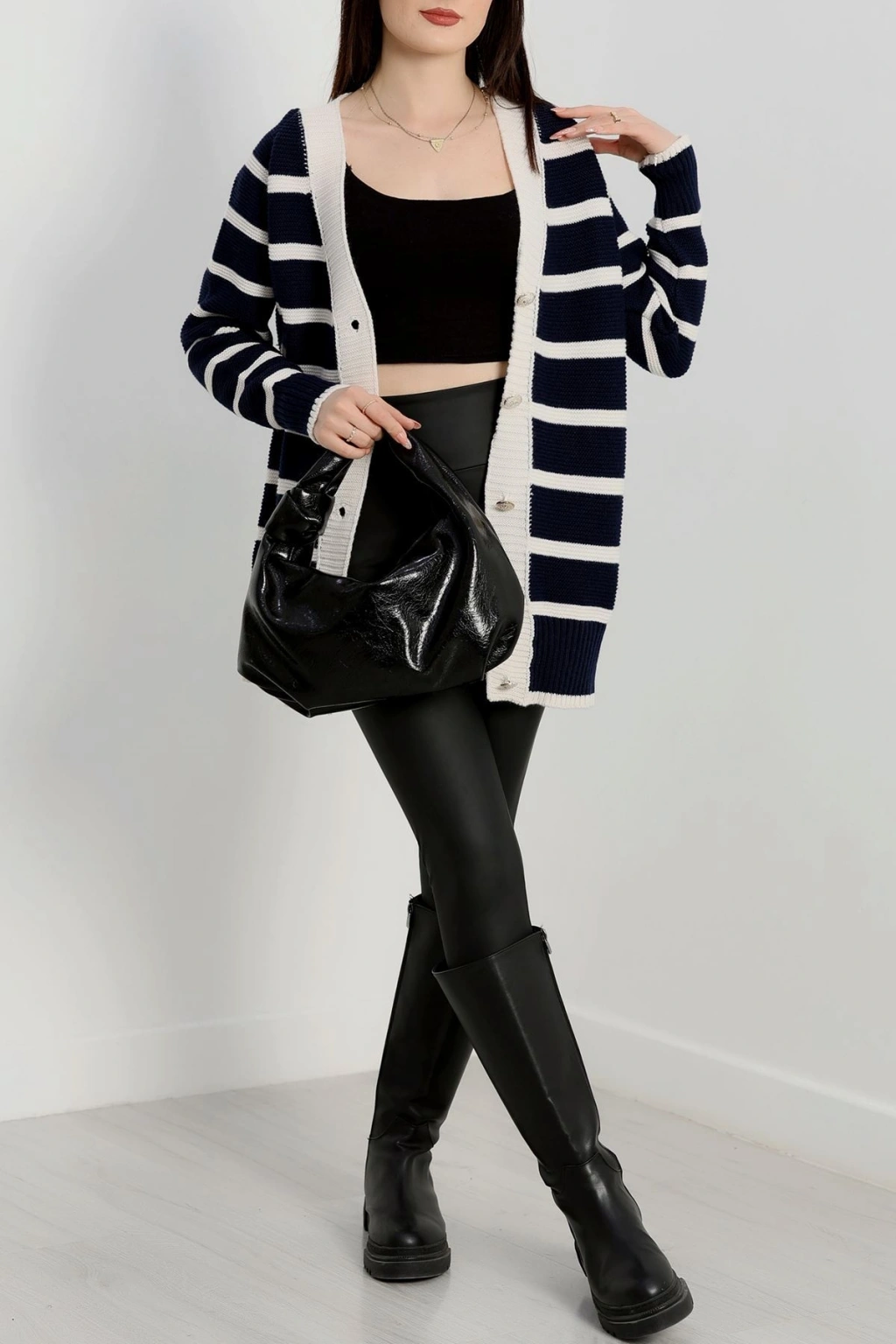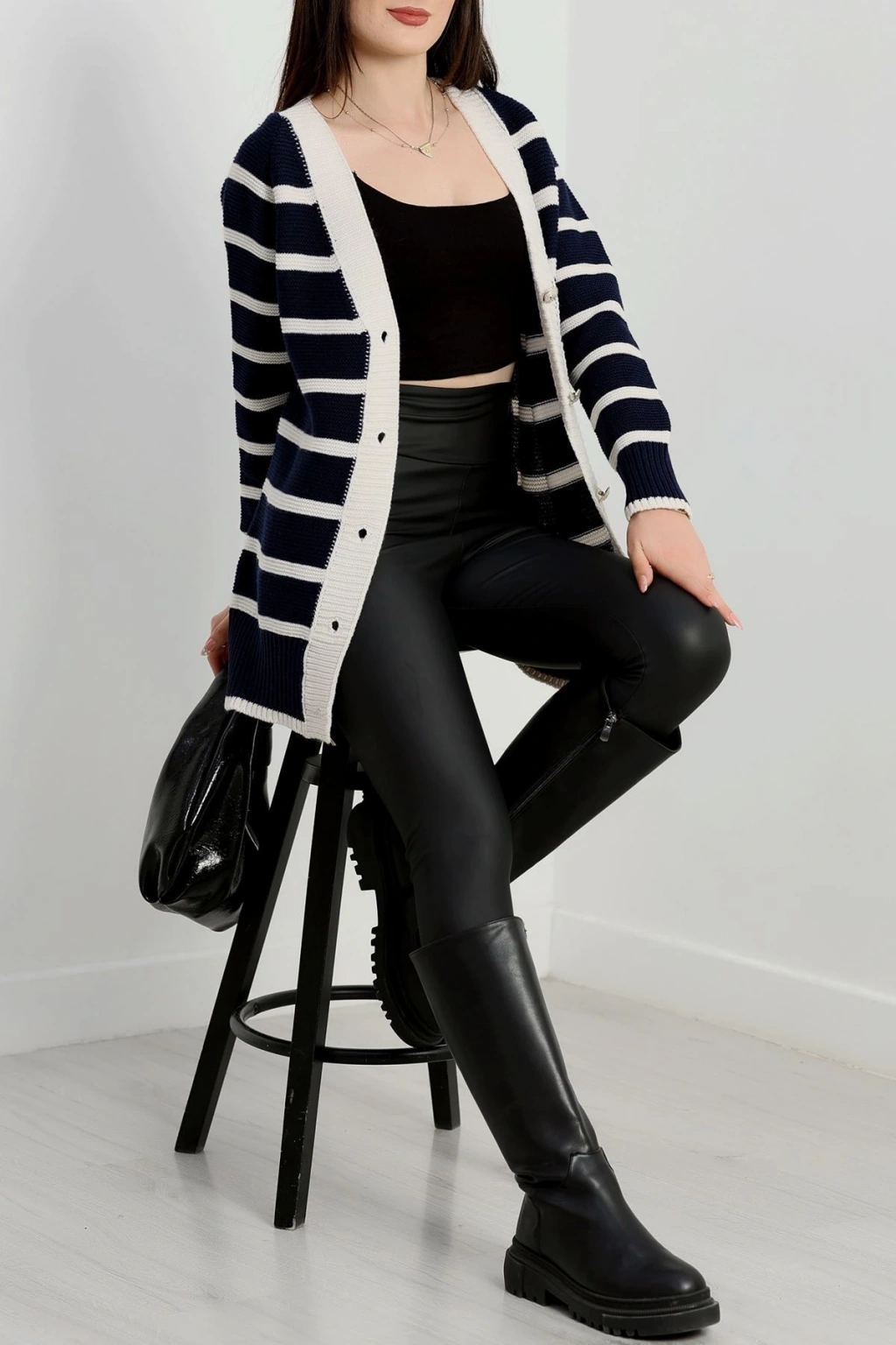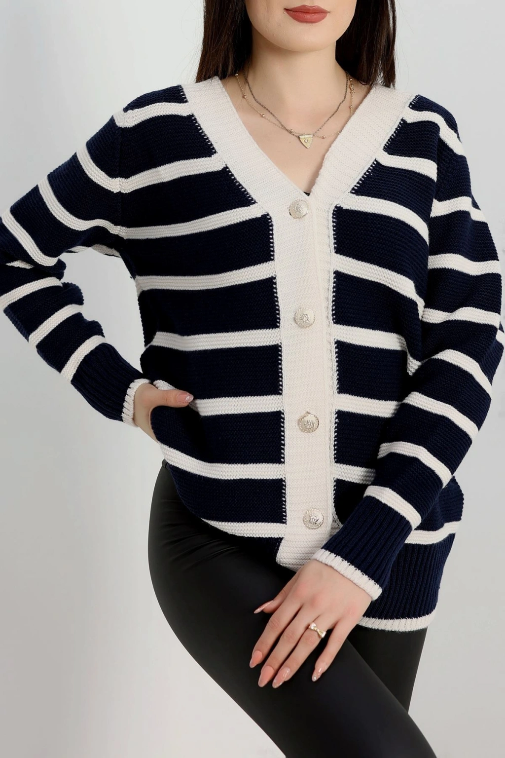 Düğmeli Çizgili Hırka Lacivertlatte - 4035.1577.