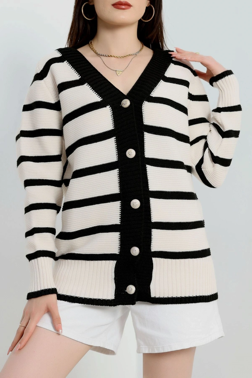 Düğmeli Hırka Beyazsiyah - 31835.2131.