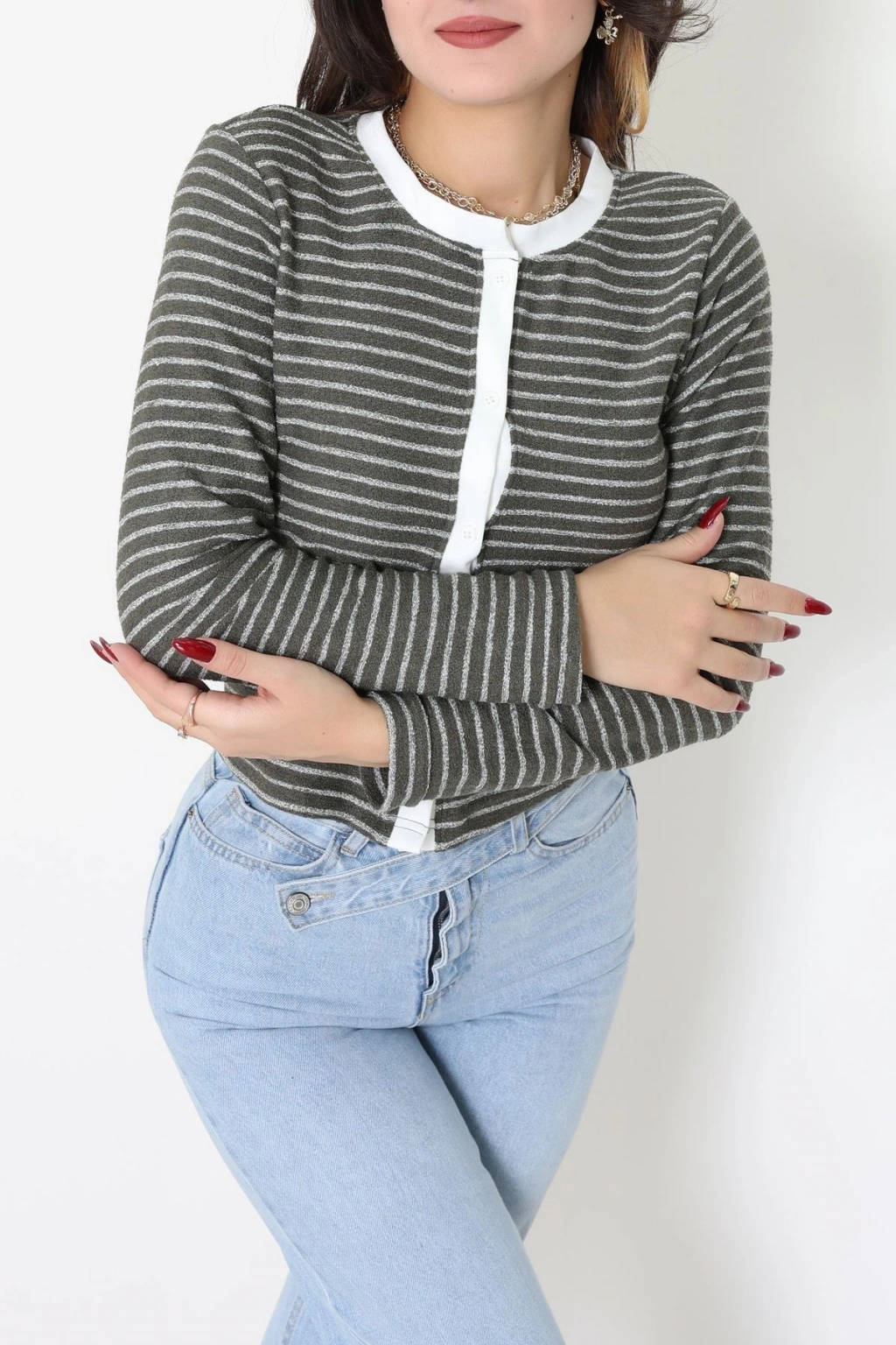 Düğmeli Hırka Siyahbeyaz - 31835.2131.