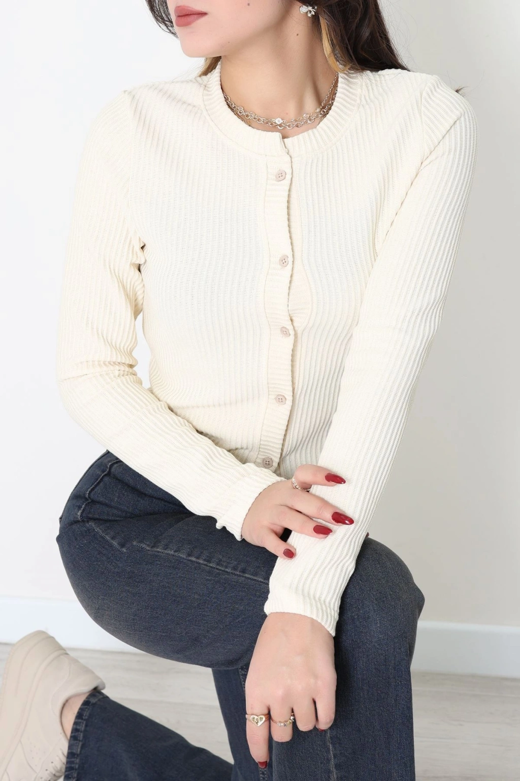 Düğmeli Hırka Krem - 31835.2131.