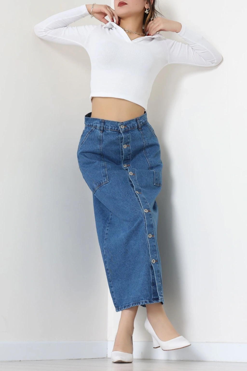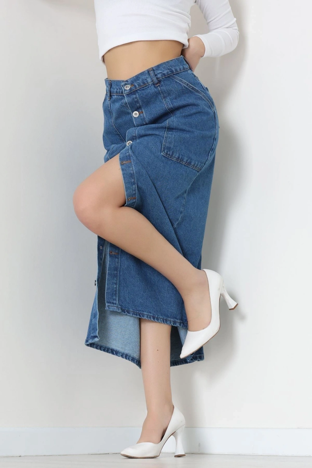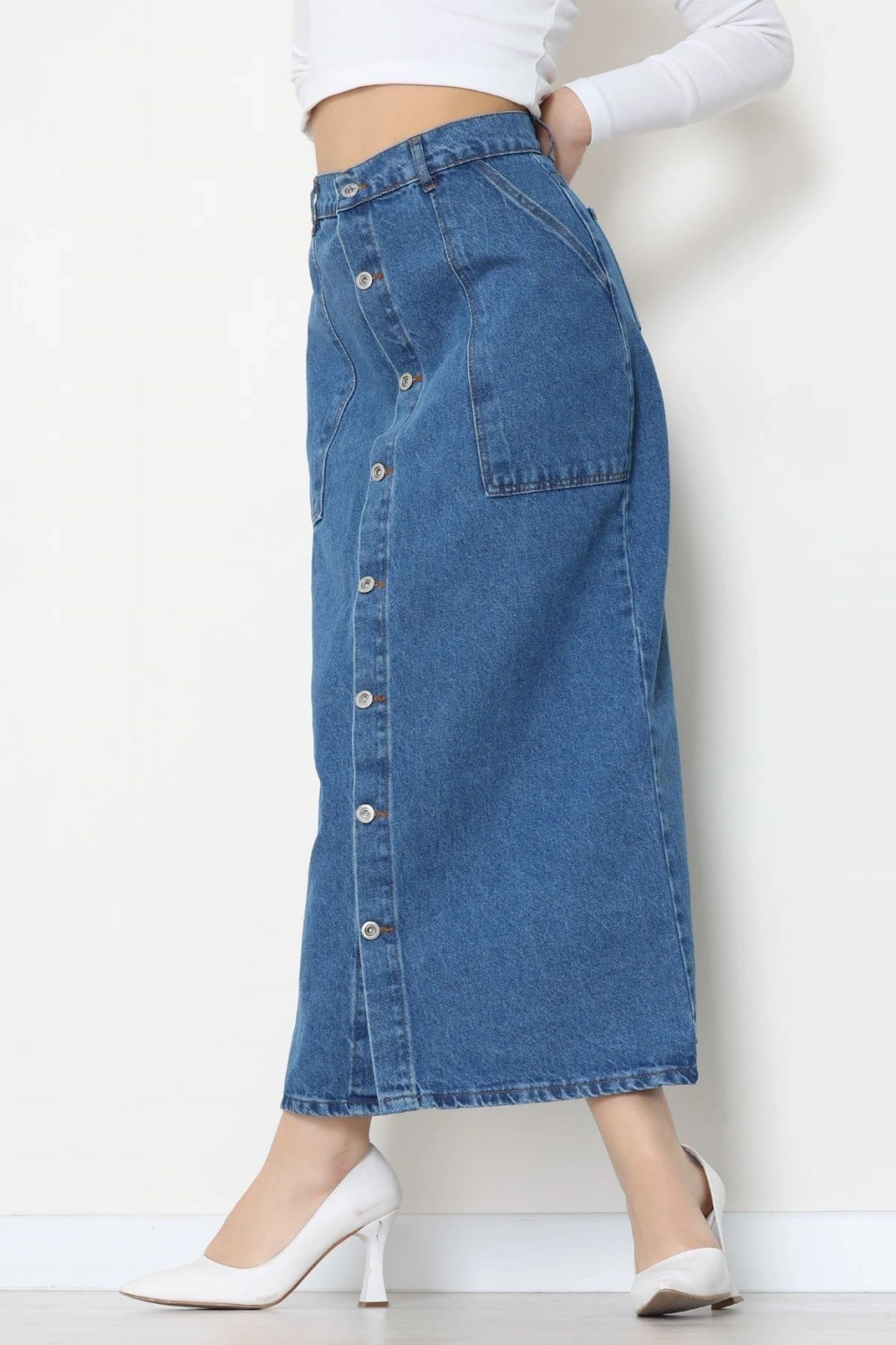 Düğmeli Kot Etek Mavi - 31555.2088.