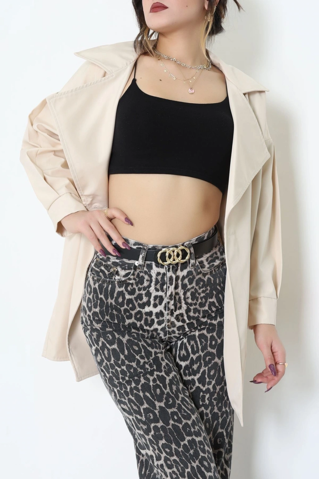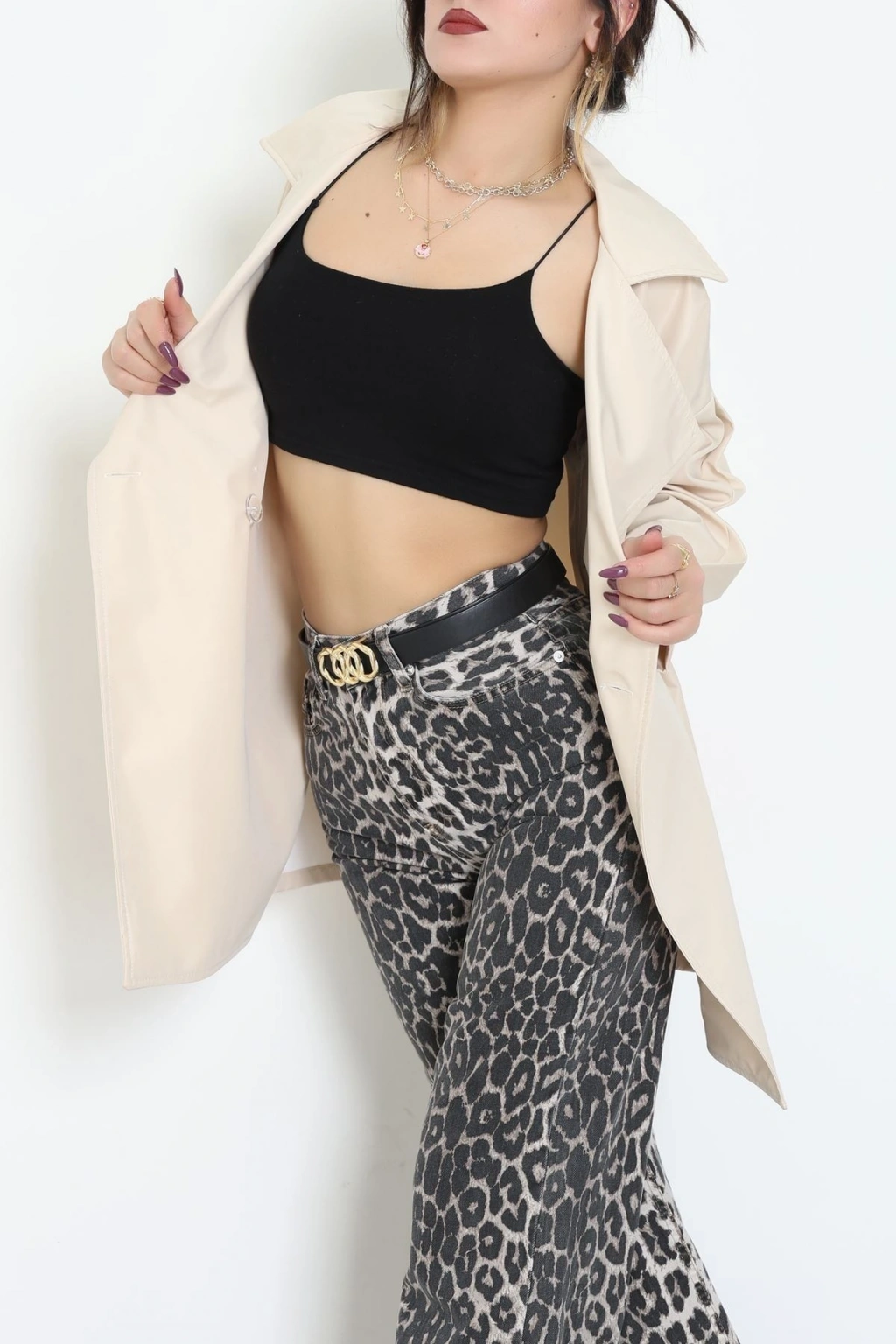 Düğmeli Trençkot Bej - 7578.179.