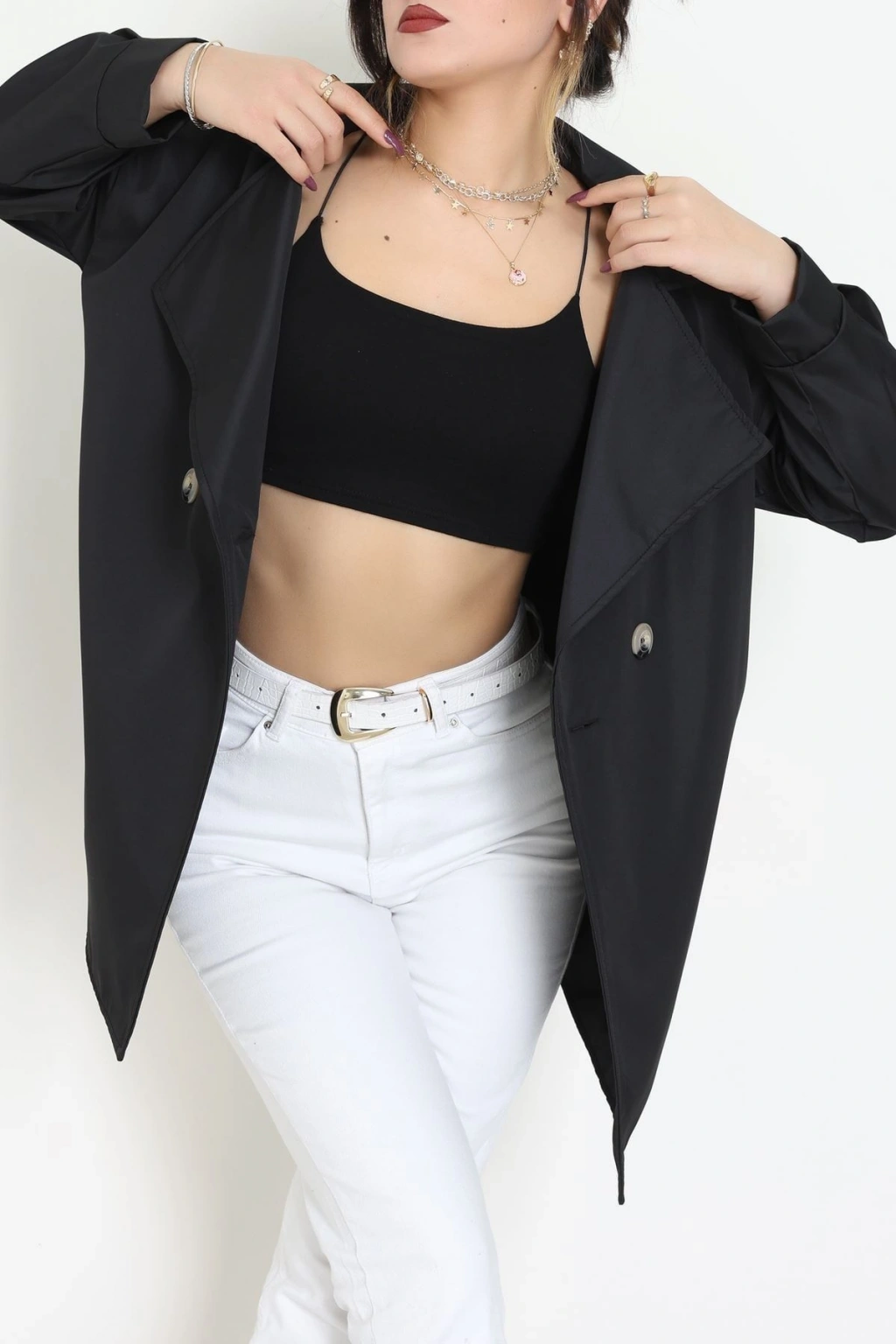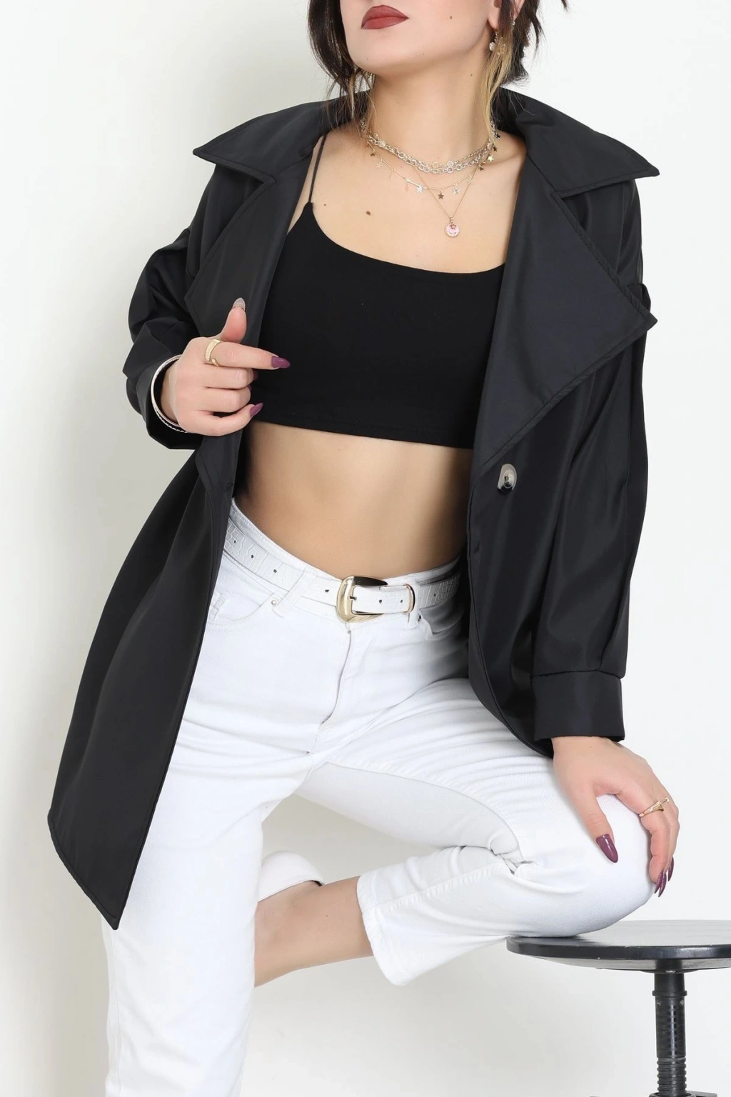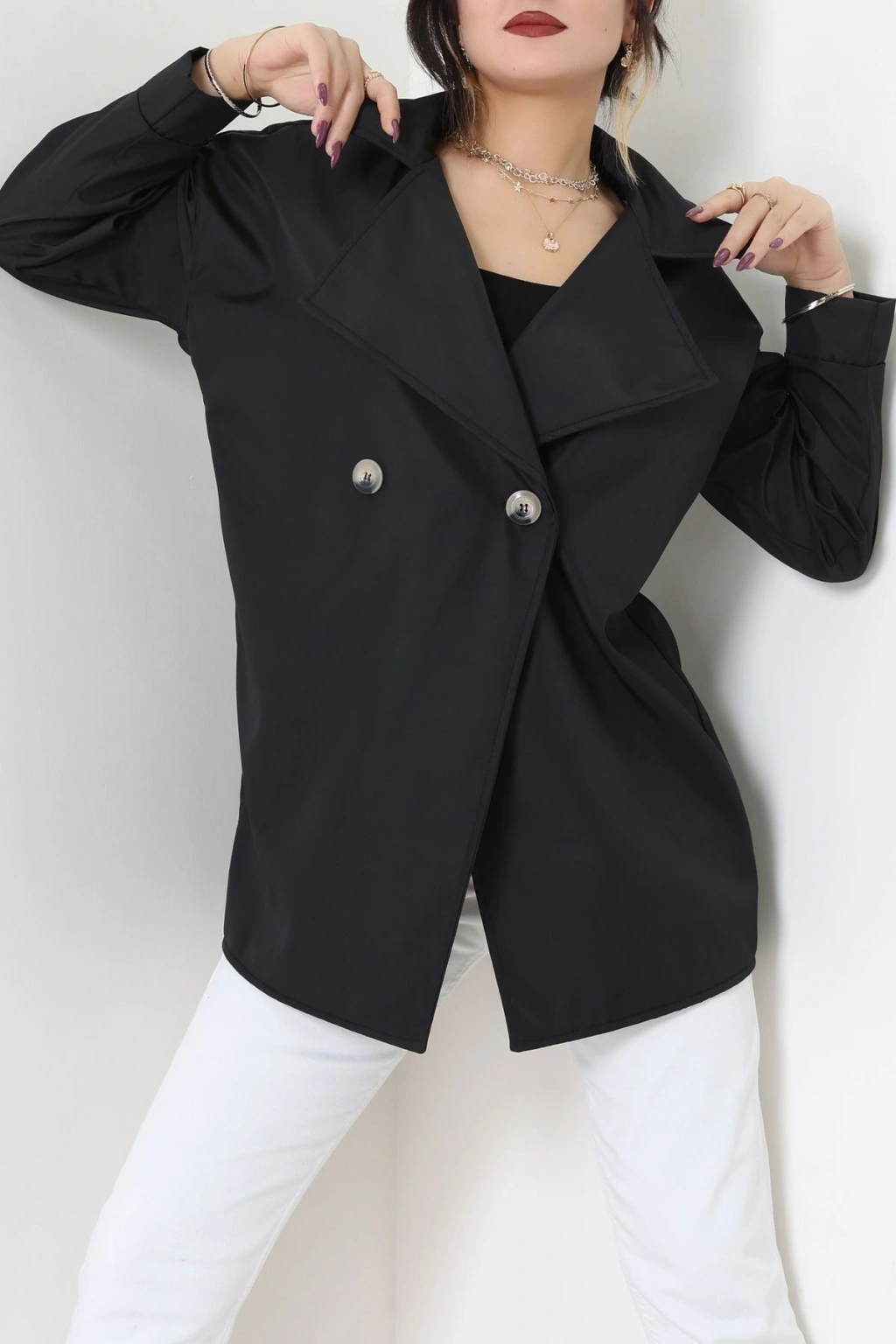 Düğmeli Trençkot Siyah - 7578.179.