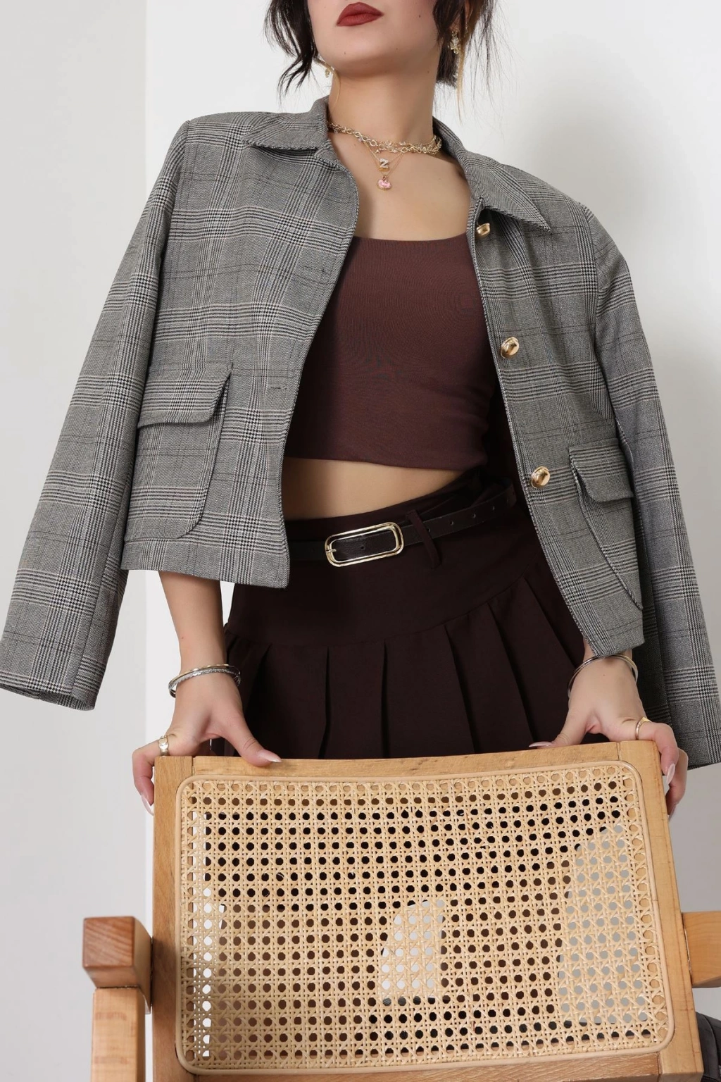 Ekose Düğme Detay Ceket Bej - 6311.001.
